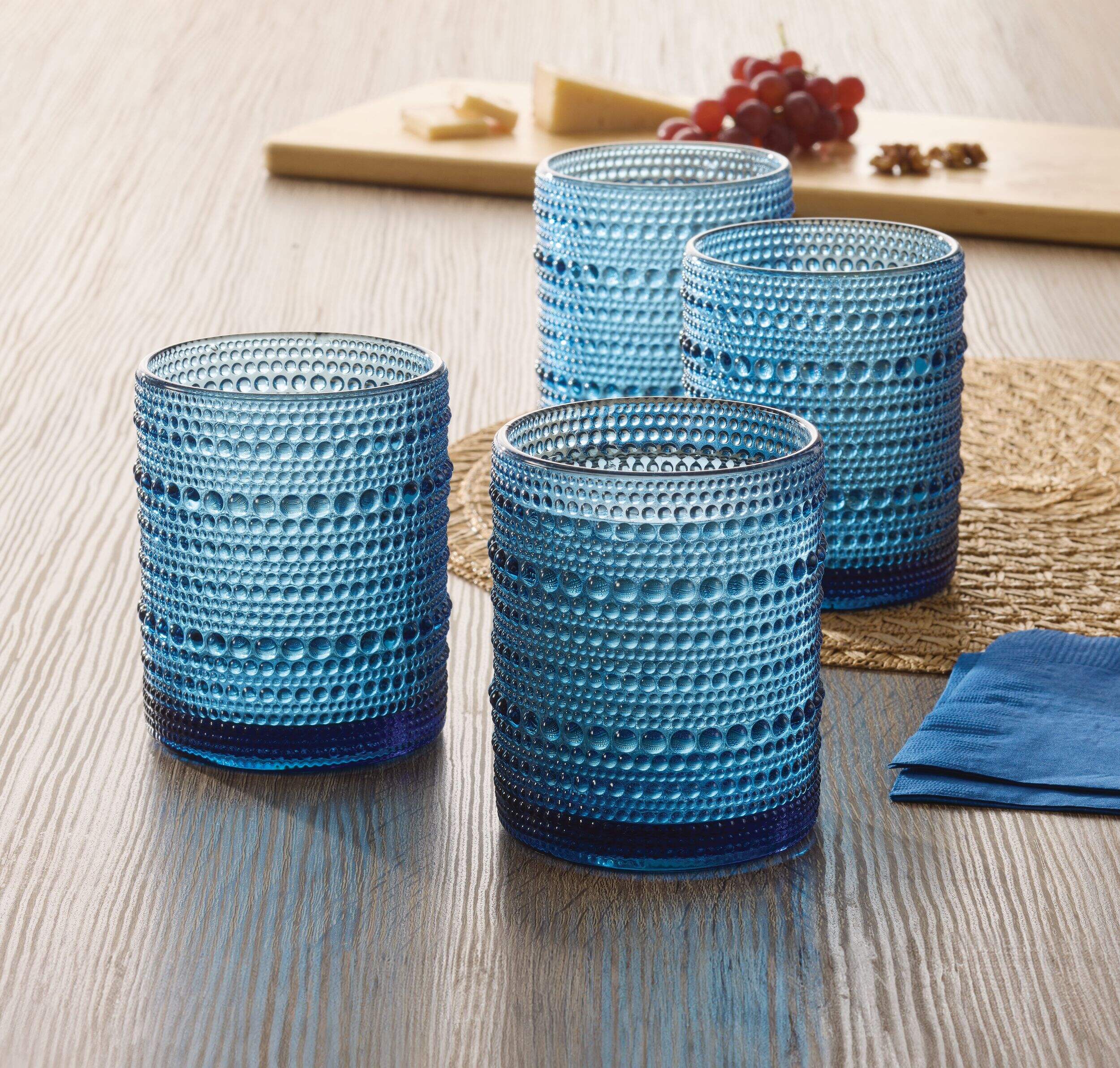 Elevate your dining experience with the CANVAS Blue Hobnail Glasses. Perfect for both special occasions and daily use, these glasses feature a unique embossed texture that adds a touch of elegance to any table setting. The vibrant blue colour and durable construction make them a stylish and practical addition to your glassware collection.