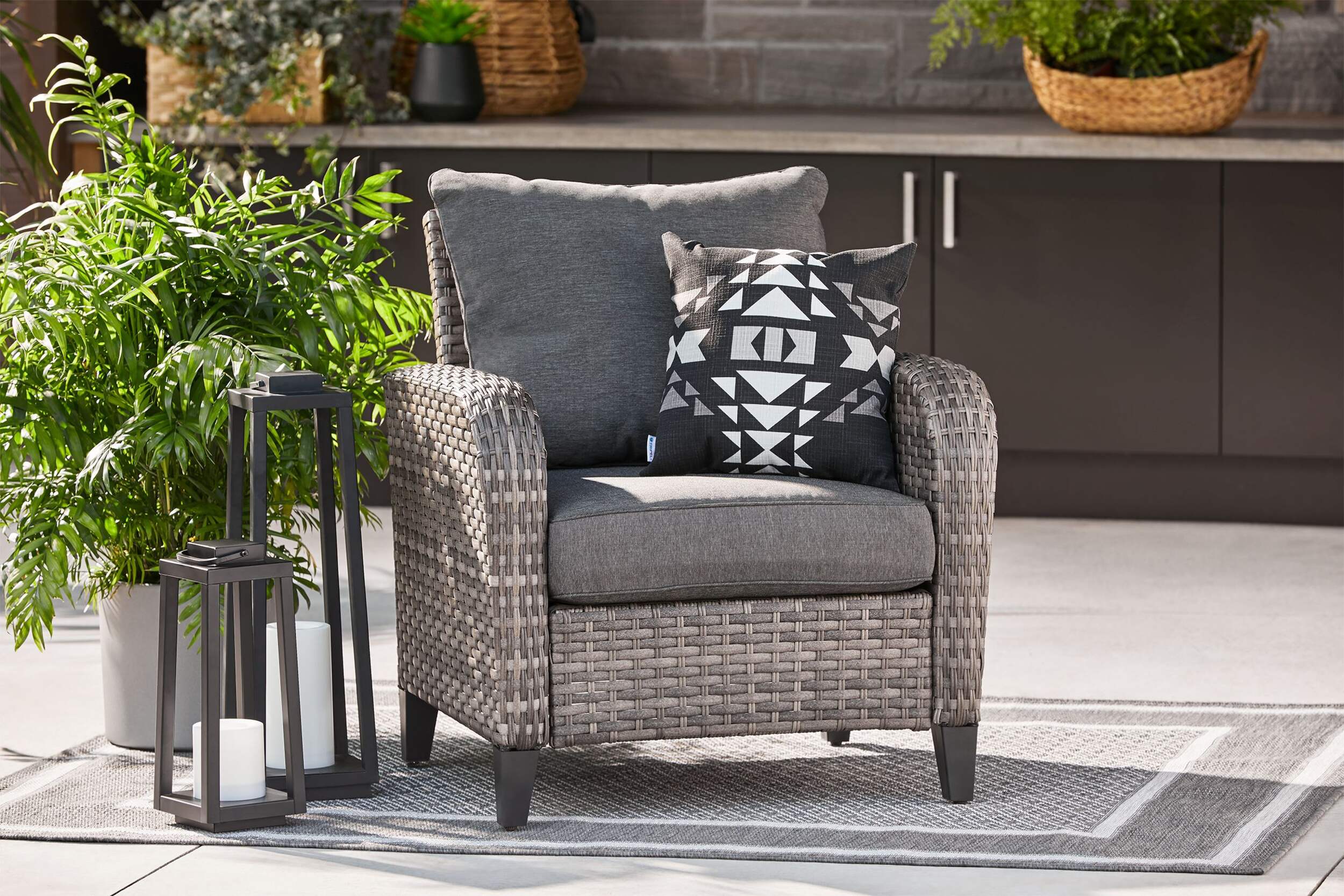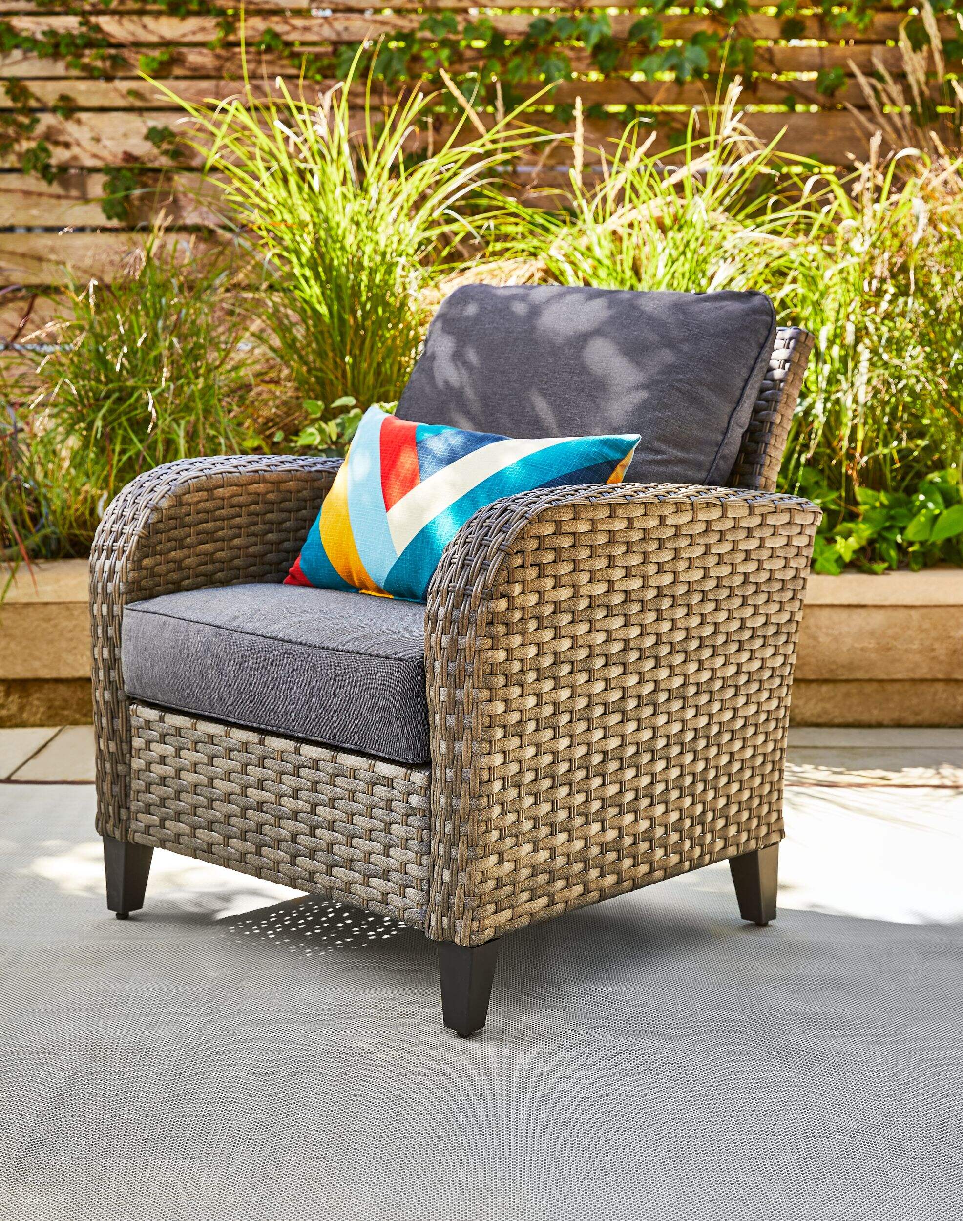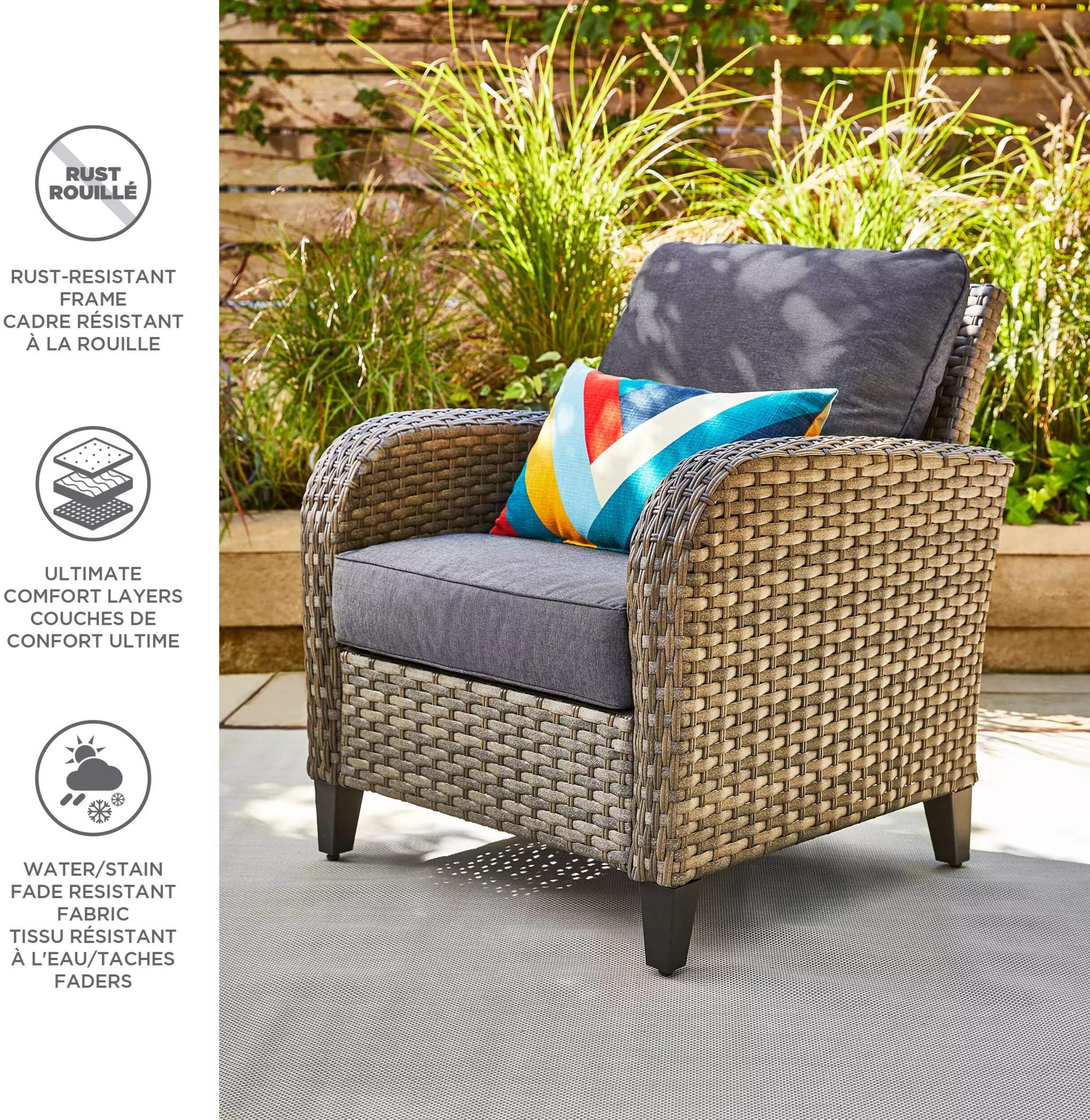 Enhance your outdoor living space with the stylish look of this CANVAS Breton All-Weather Wicker Patio Armchair. Built to last, it features a rust-resistant frame and durable all-weather wicker for year-round use. Layers of soft cushioning and supportive seating offer ultimate comfort, making it perfect for relaxing outdoors. Backed by a 1-year warranty, this armchair is as reliable as it is elegant.