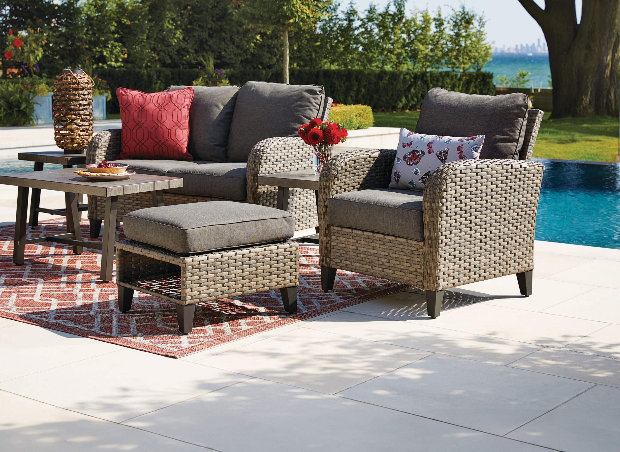 | Material(s) | Aluminum, Fabric, Wicker | Wicker, Metal | Plastic | Steel | |