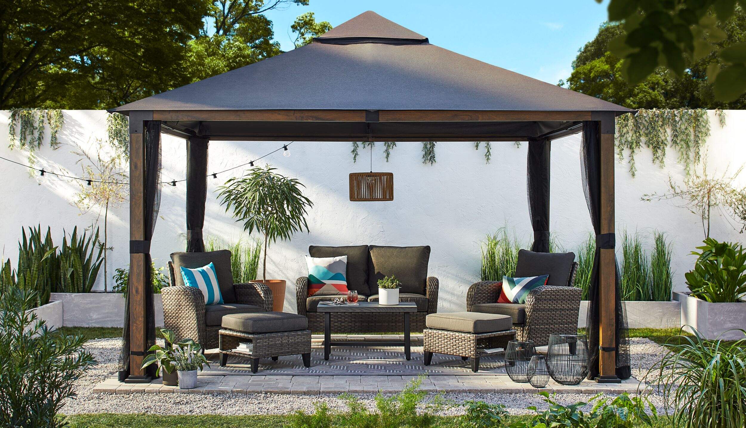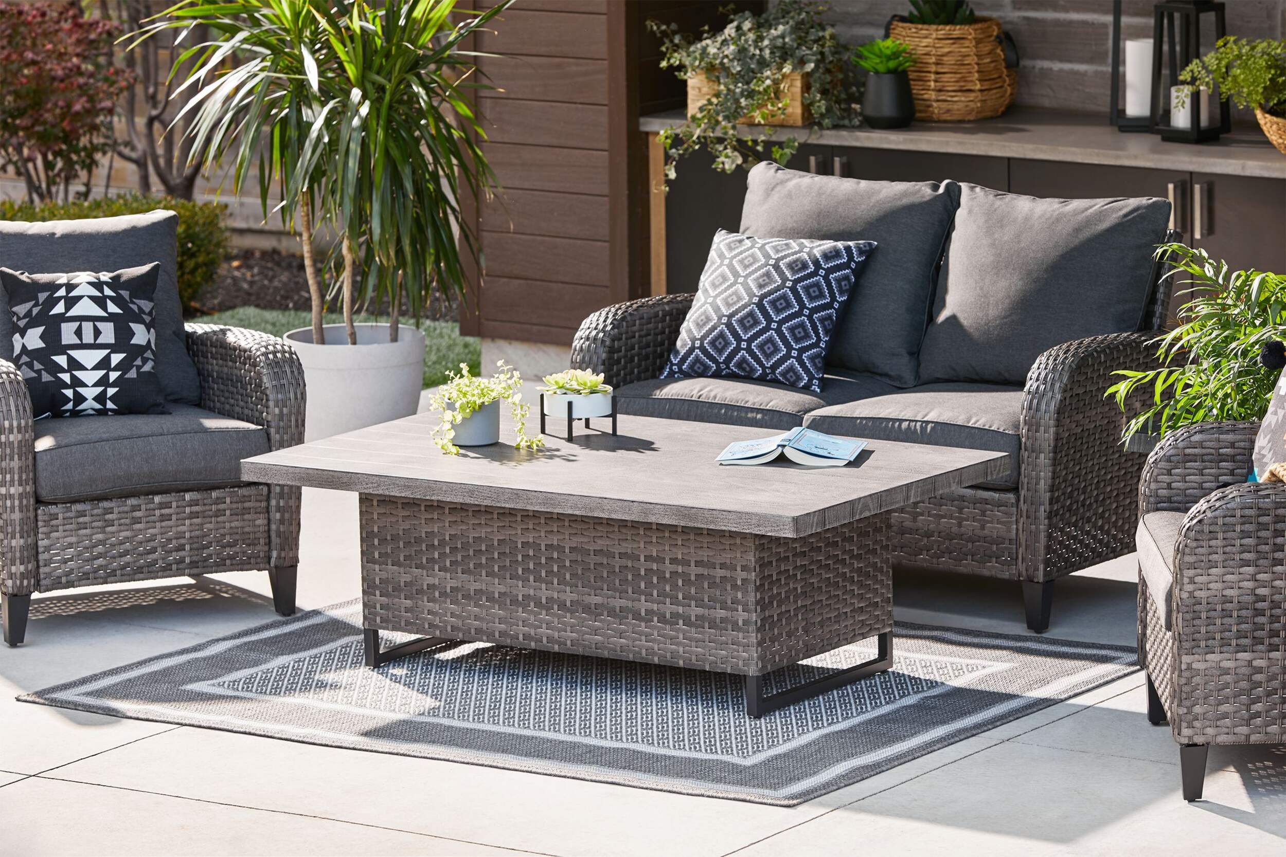 All-weather, hand-woven, mixed-weave wicker