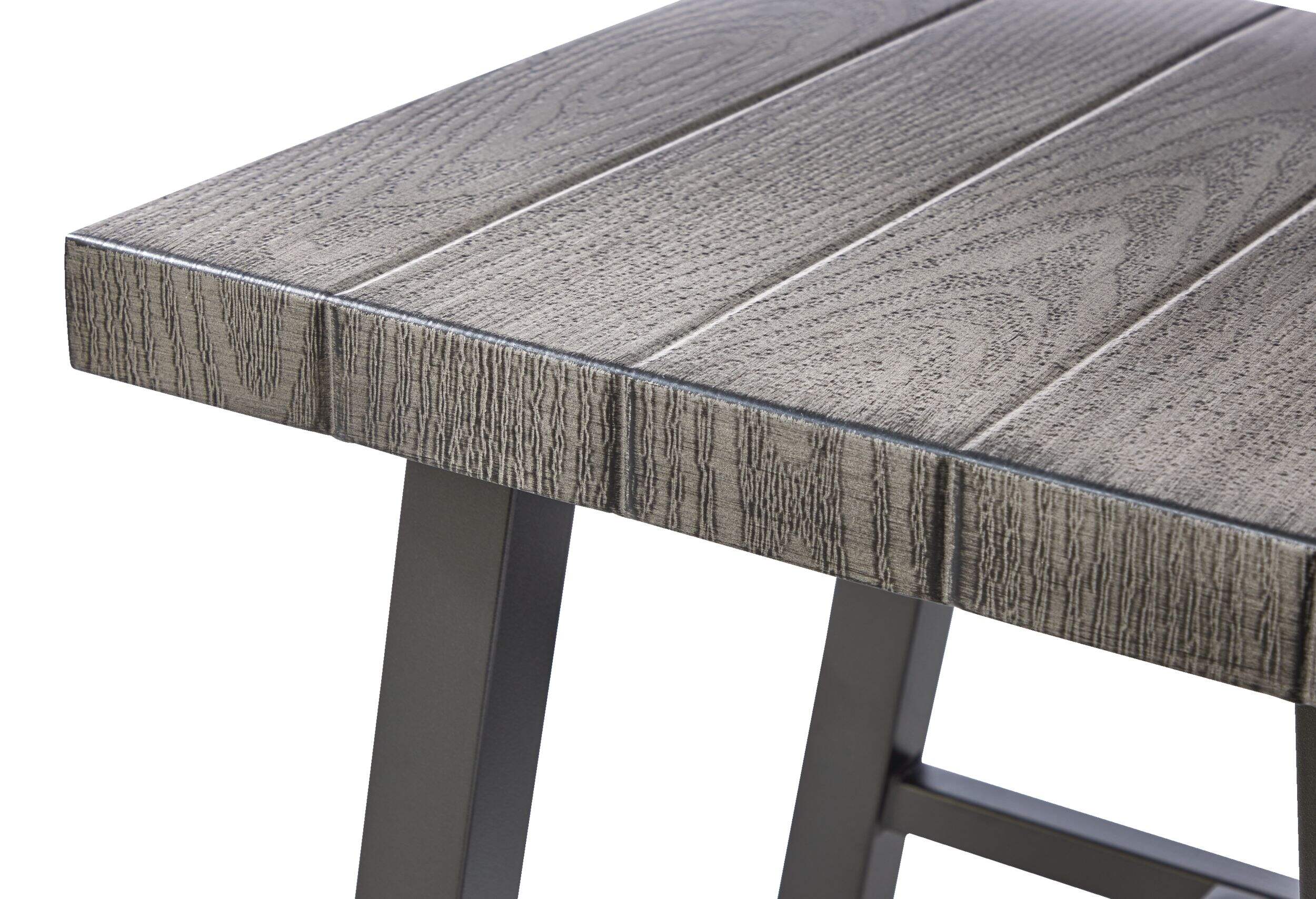 Metal tabletop embossed with faux wood texture and hand-brushed woodgrain finish that coordinates beautifully with any environment