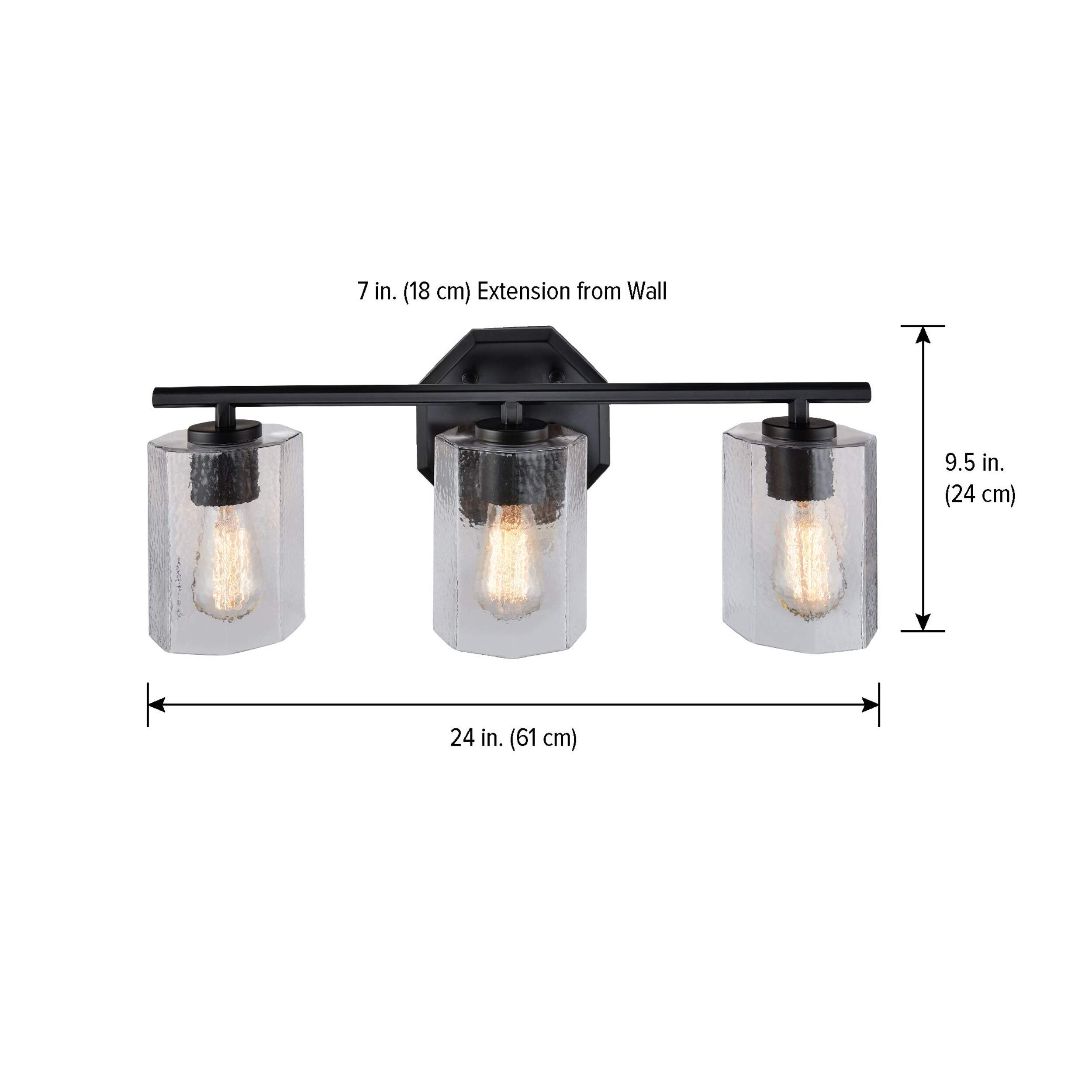 Bring a sophisticated edge to your bathroom with this CANVAS Bridgewater Vanity Light Fixture. Whether mounted alone or in a striking trio, this vanity light levels up any bathroom in need of some contemporary cool. The clear rippled glass shades give off a minimalist vibe while the black finish keeps things feeling modern. Installation's a breeze too thanks to the included mounting hardware.