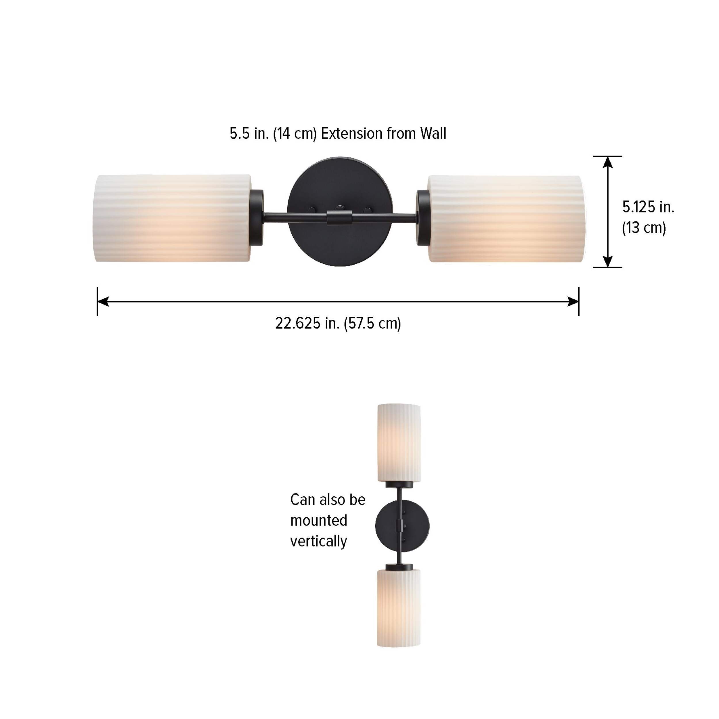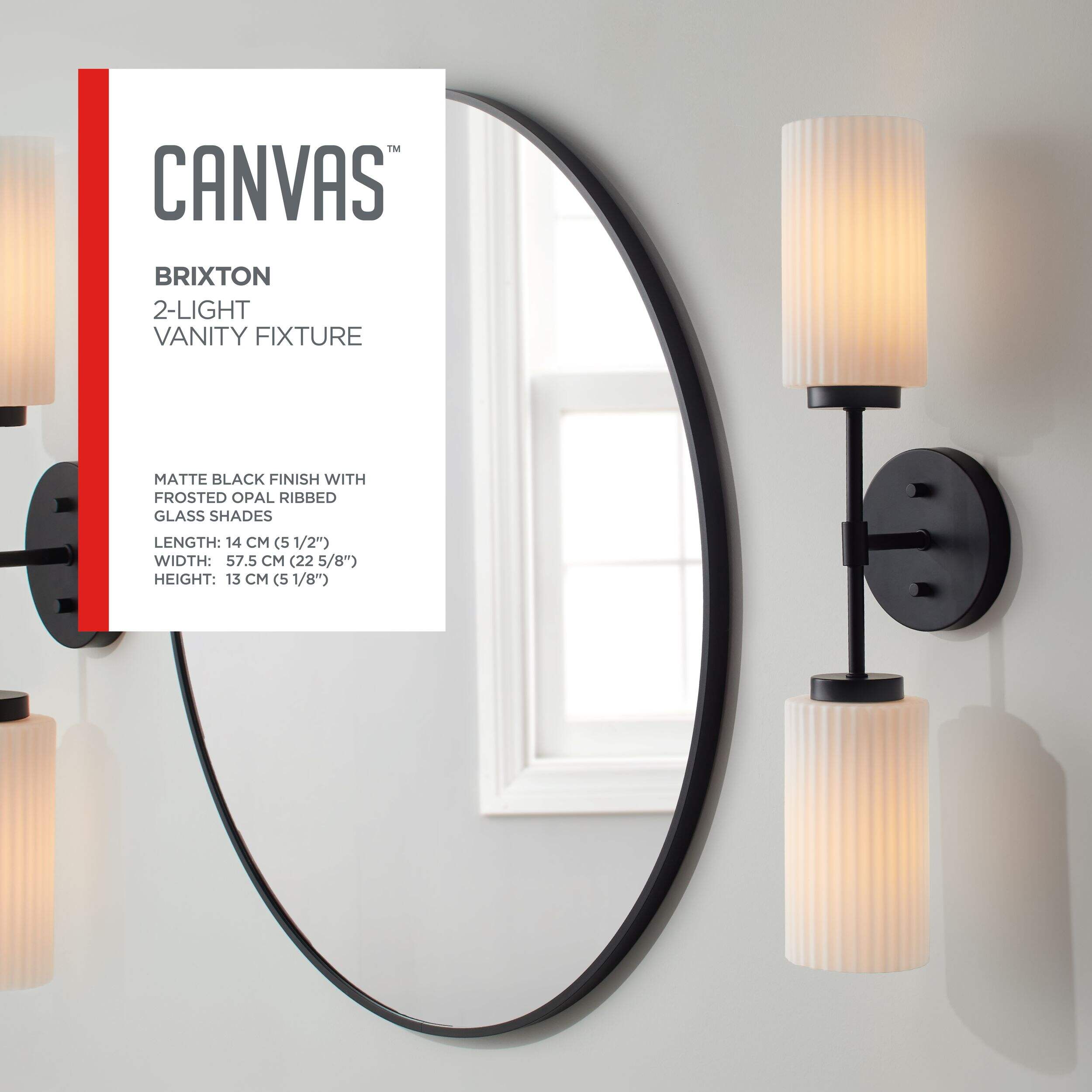 As the finishing touch on a bathroom reno or an easy décor update, the CANVAS Brixton Vanity Light Fixture transforms your space with simple elegance. Installed vertically or horizontally, this vanity fixture emits soft, glowing light for a pleasing aura and functional illumination. The twin frosted opal glass shades provide beauty and texture with a ribbed finish. As a single fixture or bookended on either side of a mirror, this 2-light vanity light is a charmer.