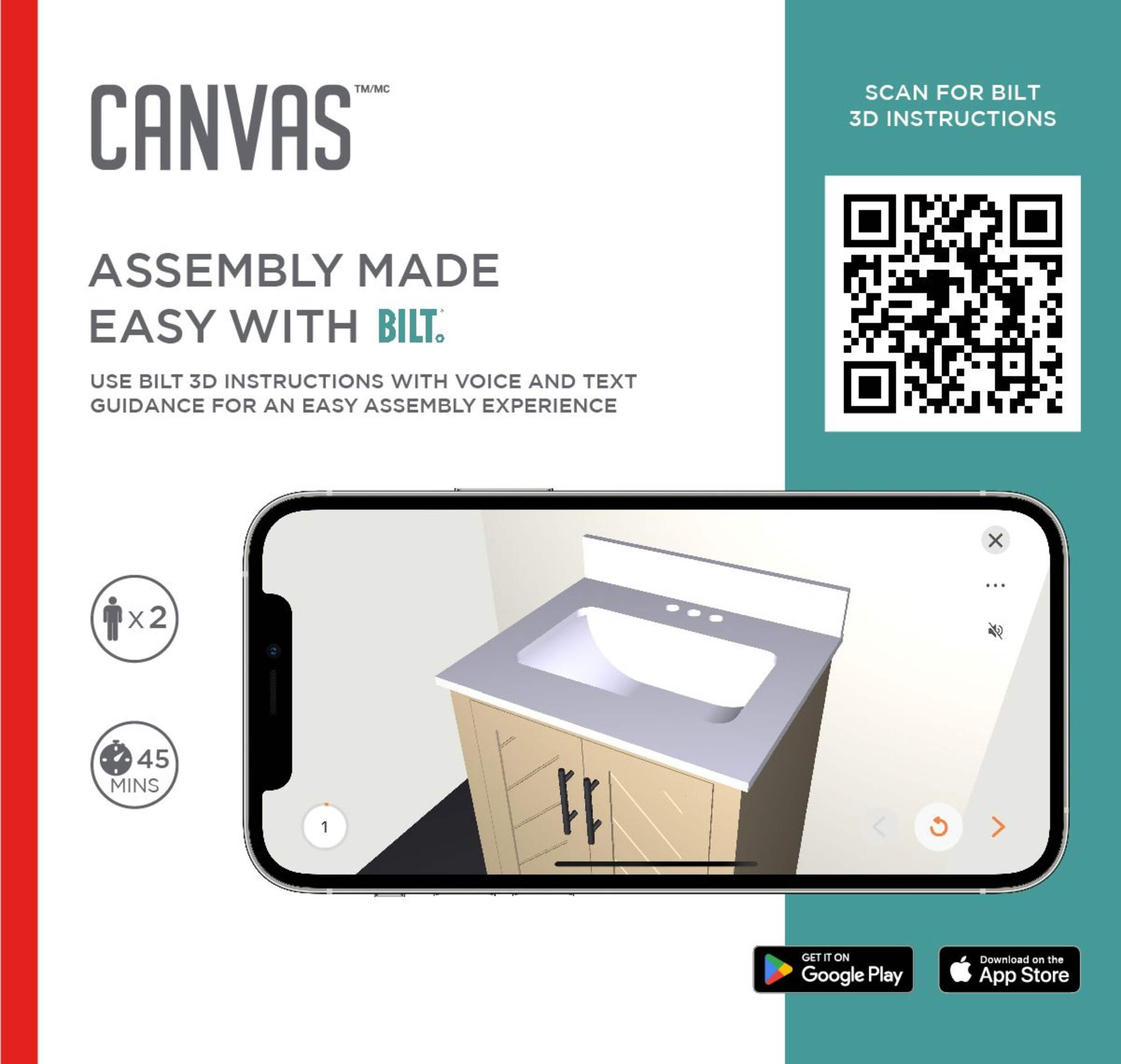 The versatile and stylish CANVAS Brooks Double Door Single Sink Stone Top Bathroom Vanity delivers two looks in one. With its reversible doors, you can choose between a chic chevron or classic flat design. The soft-close doors provide ample storage, while the white engineered stone top is both stylish and easy to clean. This convenient vanity is easy to assemble and perfect for creating a fresh, modern look in small bathroom spaces.