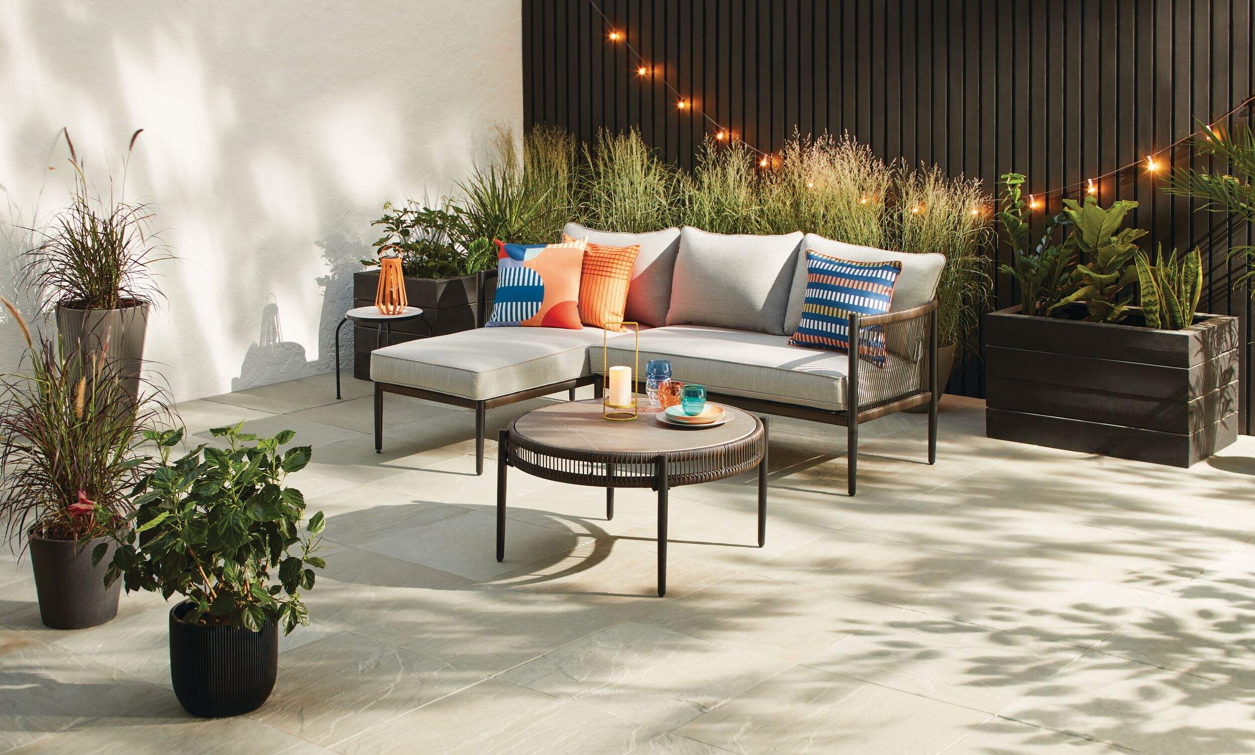 This 3-piece patio set from CANVAS combines modern styling and durable construction into one space-saving package. This outdoor patio set includes lengthened lounger, a loveseat, and a matching round coffee table. Designed for outdoor use, every piece in this set is built to be rust, water, stain, and fade-resistant.