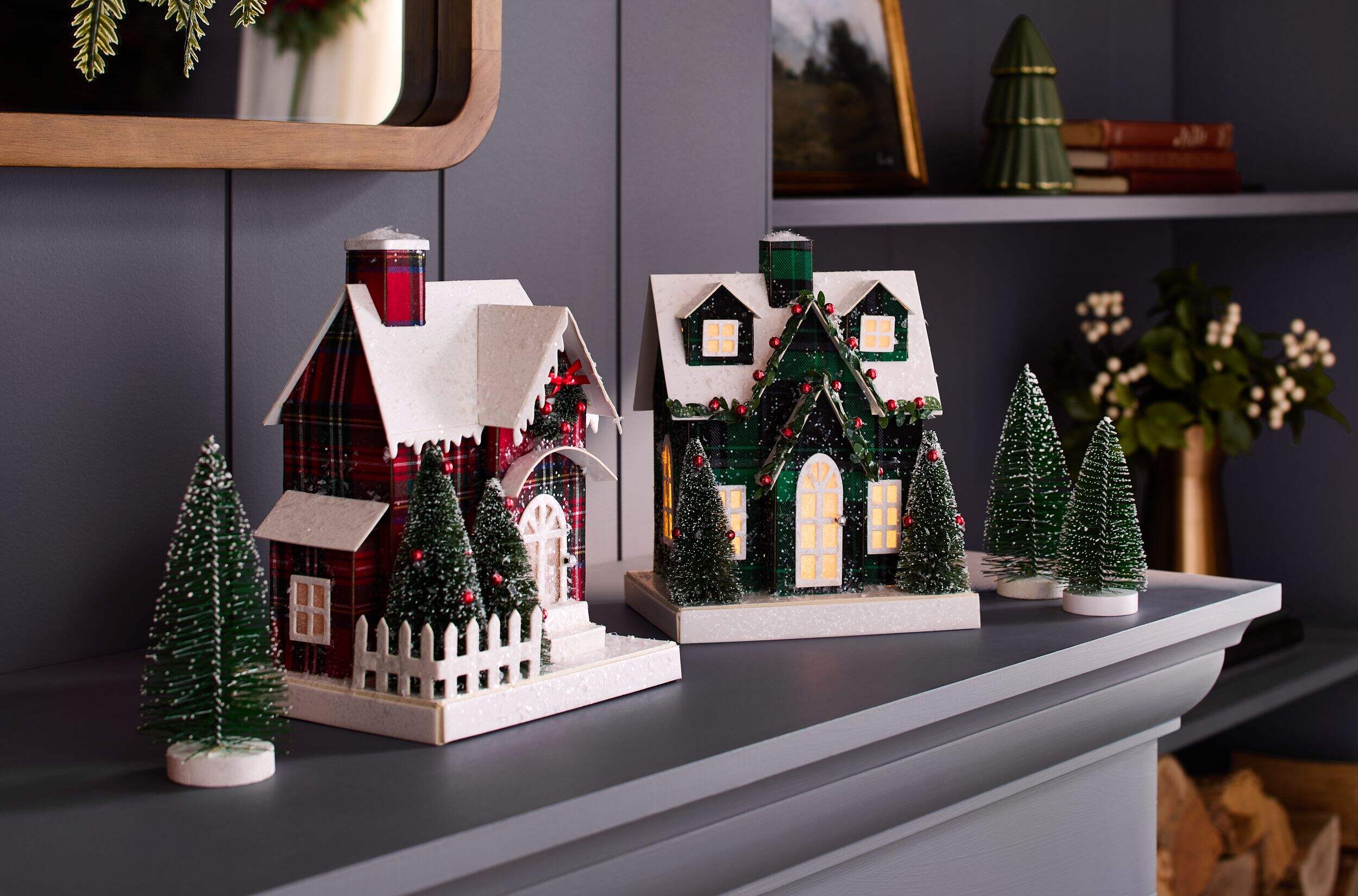 Includes a set of 2 paper houses and 3 bottlebrush trees