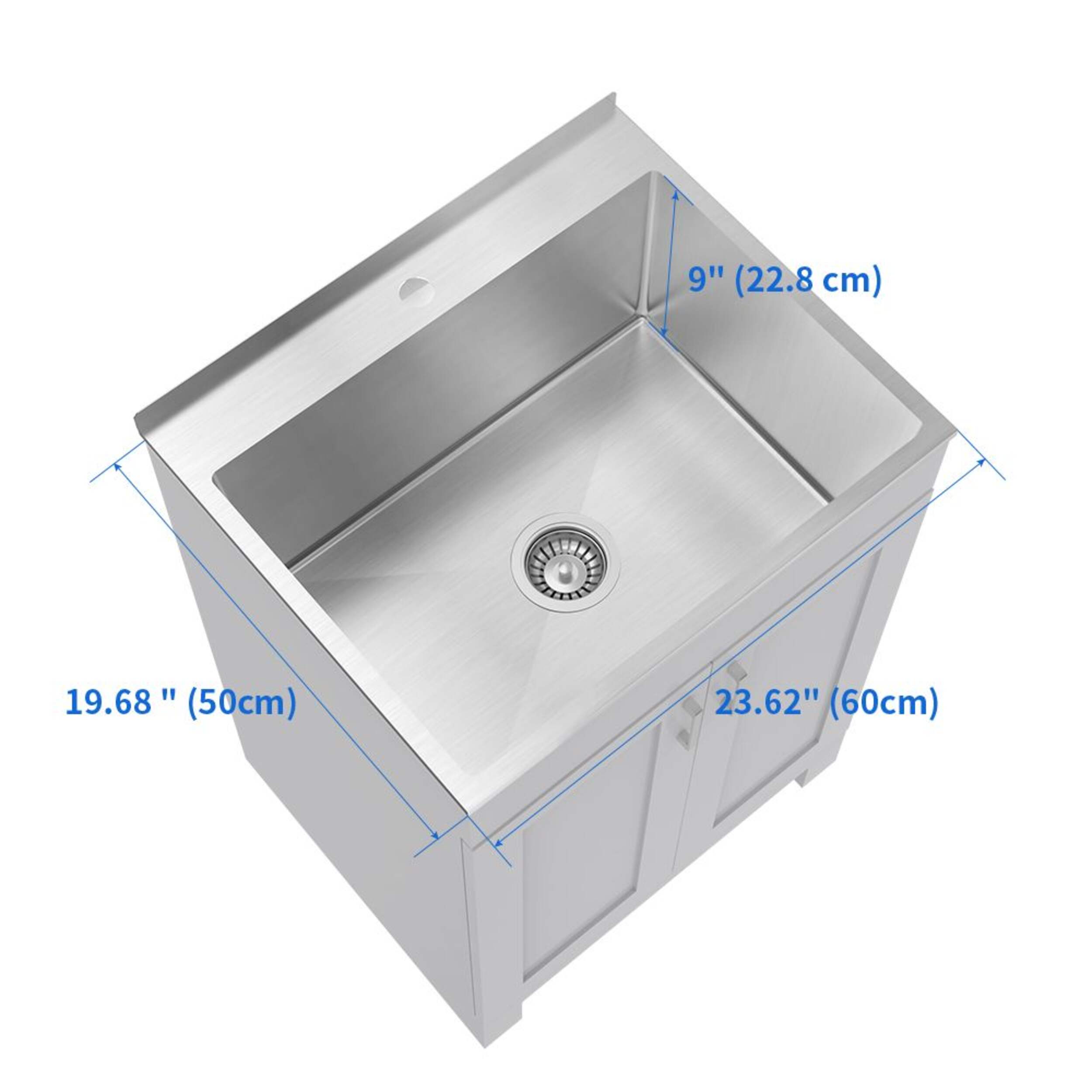 • A: Hello, the actual dimensions of the sink are 23.62"x19.68"x9"( 600x500x228.6MM), the bowl size are 22.05"x15.55"x9"(560x395x228.6MM), hope it help, Thank you !