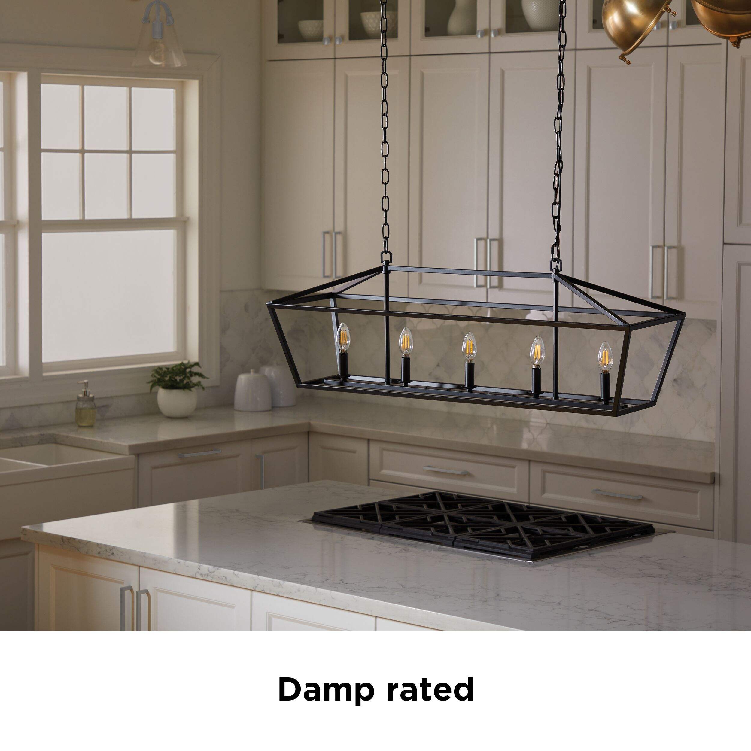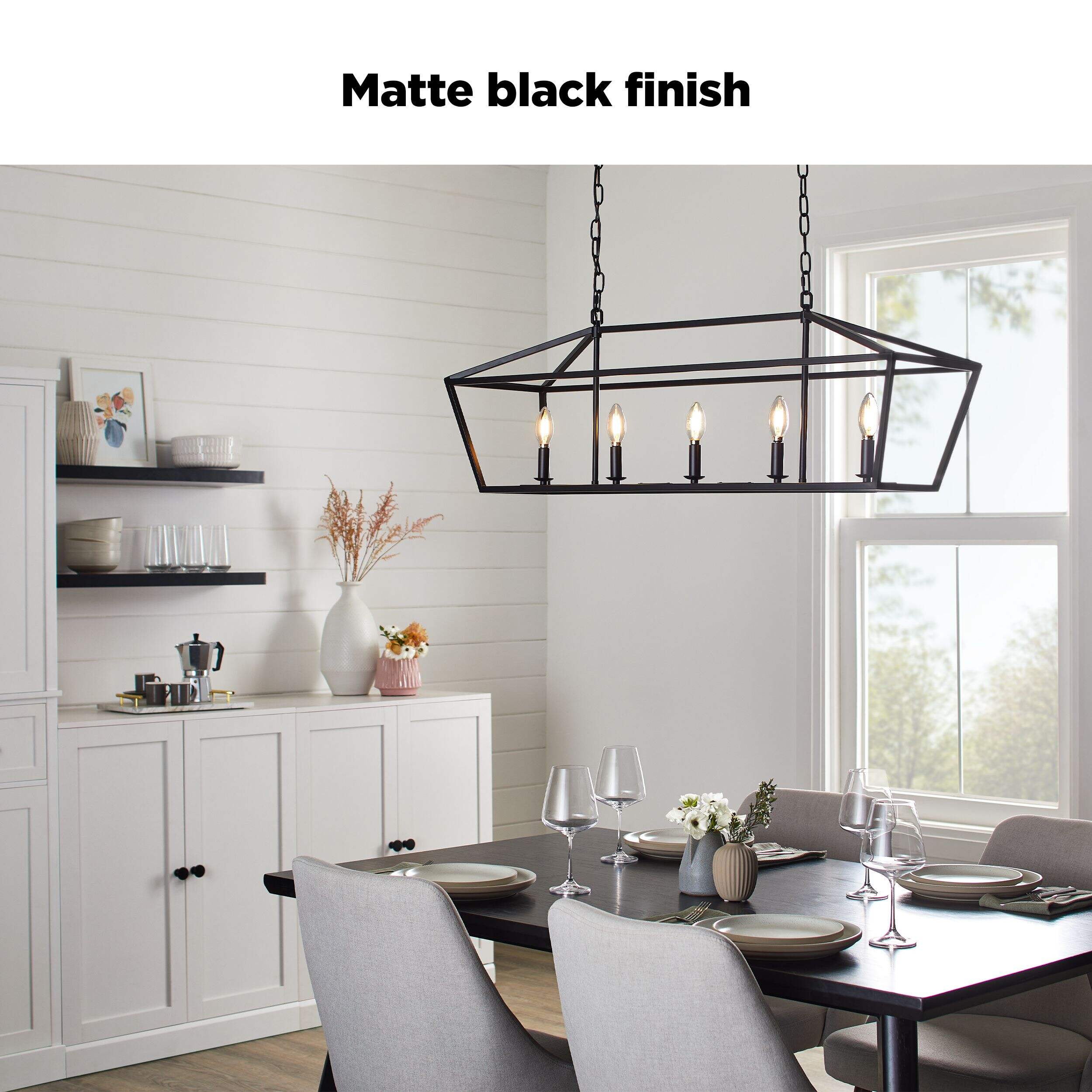 The CANVAS Carlaw 5-Light Chandelier brings a modern farmhouse vibe to your space with its sleek lantern-inspired design. This matte black chandelier is an ideal centrepiece for your kitchen island or dining room table, blending seamlessly with various décor styles. Its adjustable height offers flexibility for different settings, making it perfect for brightening up any room needing warm illumination.