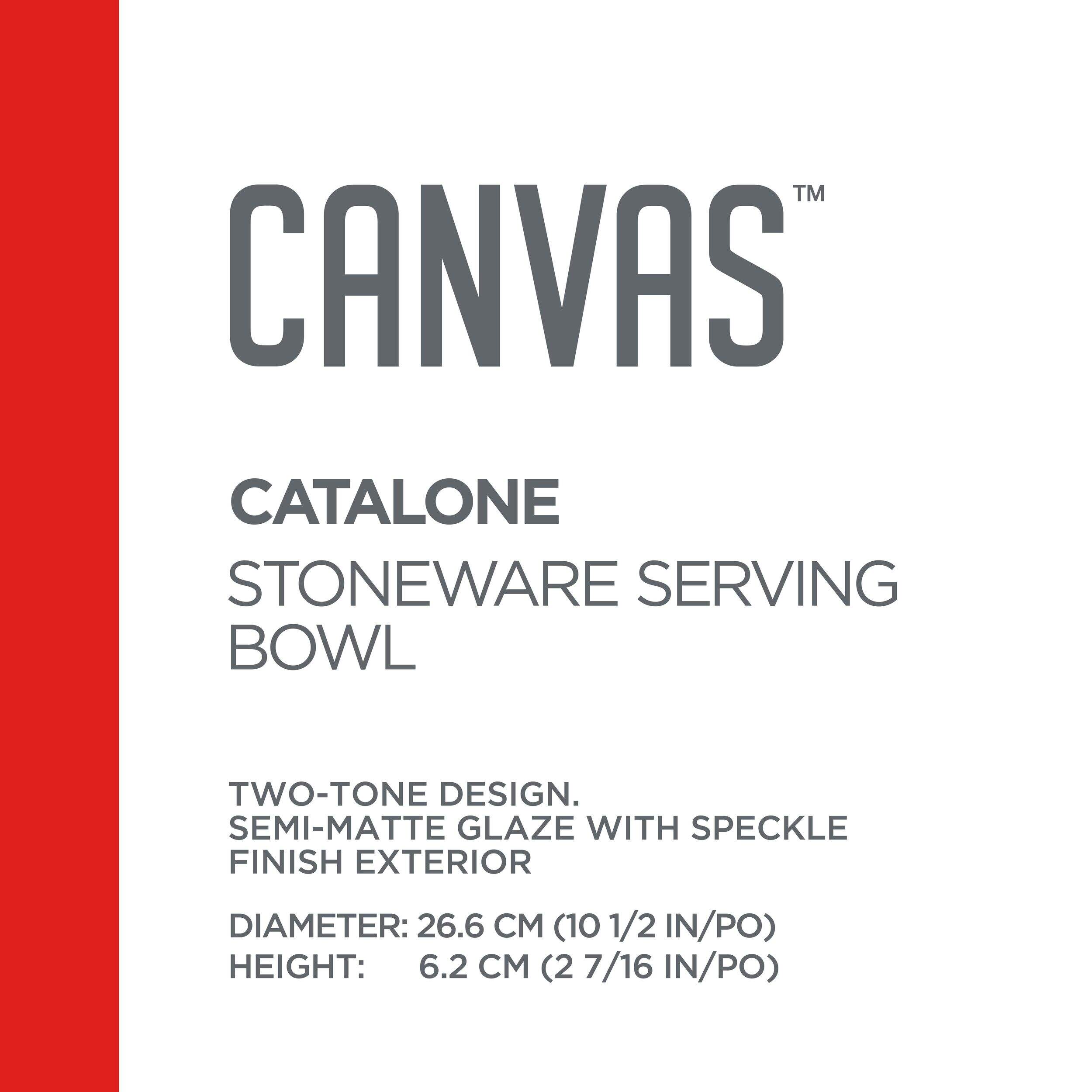 The CANVAS Catalone Stoneware 2-Tone Serving Bowl is simple yet stylish. The bowl's two contrasting tones of black and white make it a versatile piece for the kitchen or dining table, while the semi-matte finish with speckled exterior gives it an understated charm. Convenient for serving salads, sides, or snacks at gatherings, this stoneware bowl is both dishwasher and microwave-safe, making cleanup a breeze. It's an elegant yet practical addition to the modern kitchen.