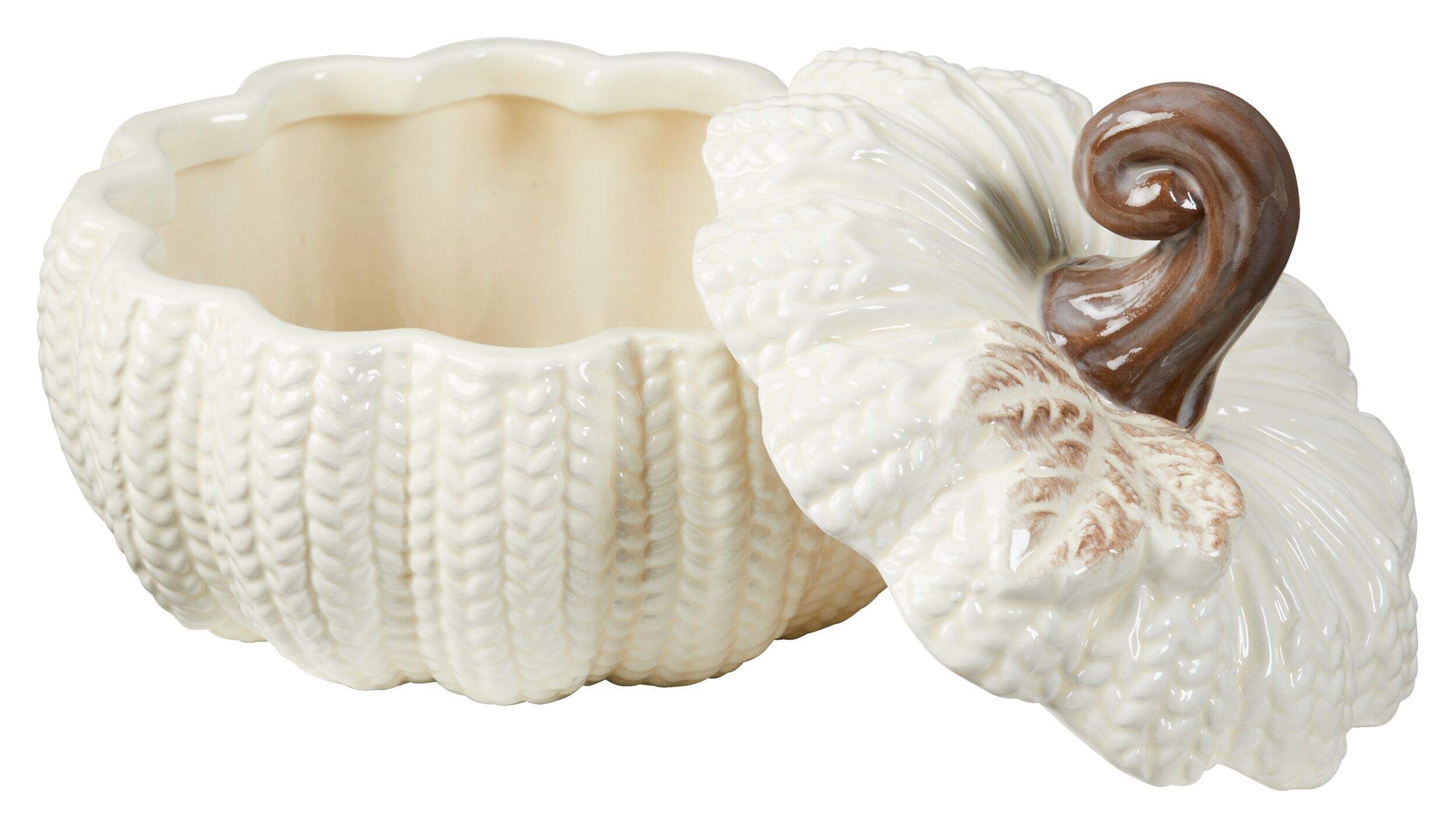 The CANVAS Small Ceramic Pumpkin Container with Wheat Texture is a highly compact, cute addition to your home for fall and more importantly for Halloween