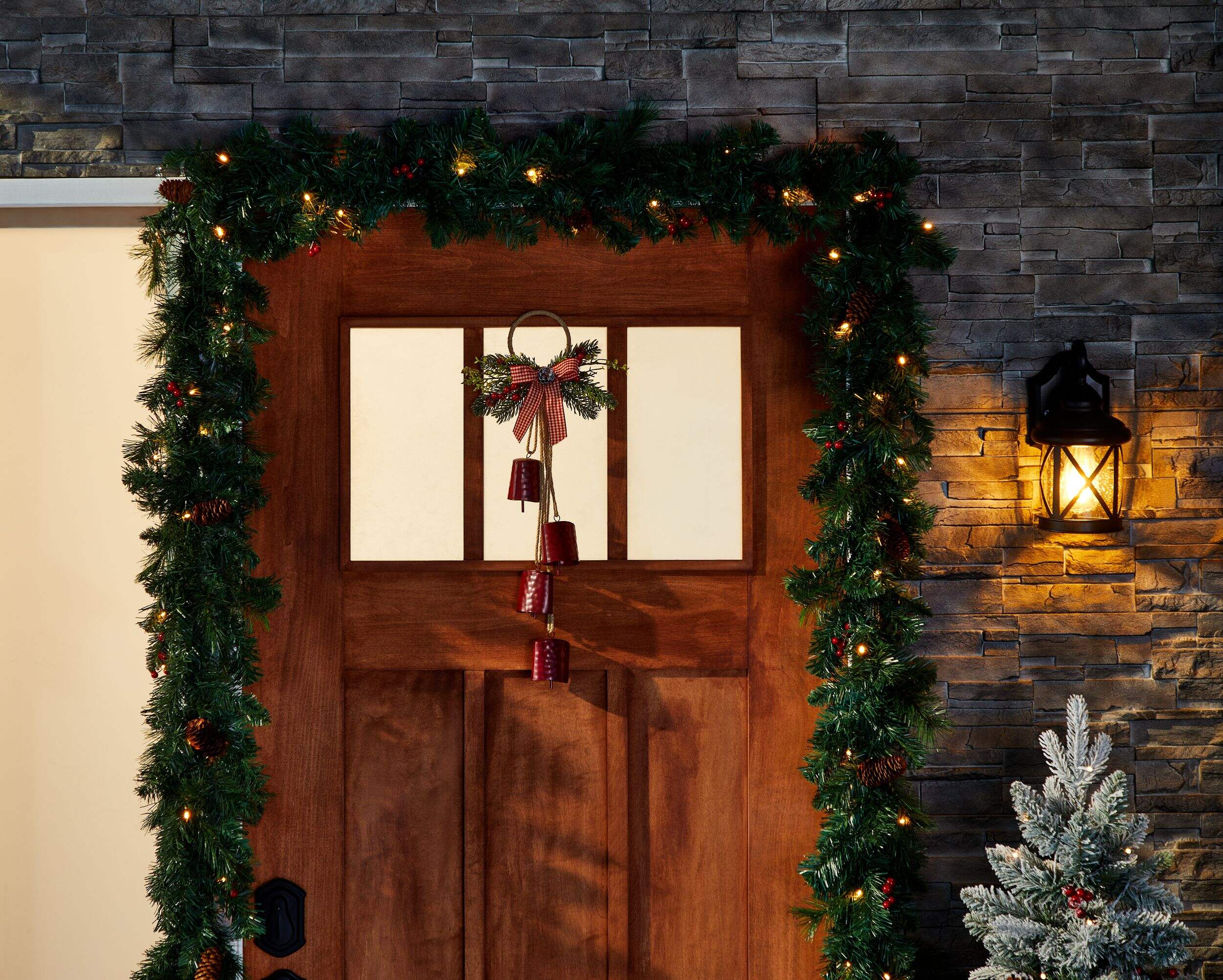 Ring in the festivities by hanging this CANVAS Red Bell Door Hanger inside your main entrance. Greet guests with this Christmas door hanger that features red cow bells in hammered metal motif, tied off with a gingham bow adorned with brilliant seasonal florals. Securely suspend this sturdy metal door hanger from its built-in ring for many holiday seasons of welcoming visitors in style. Consider hanging over the fireplace or dangle in front of a window.