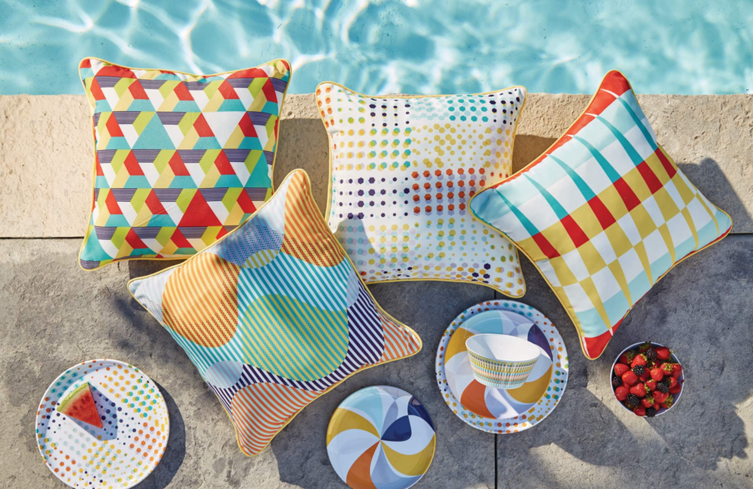 CANVAS Confetti Toss Cushion by Avril Loreti with Tri-pel technology is constructed from a durable outdoor fabric