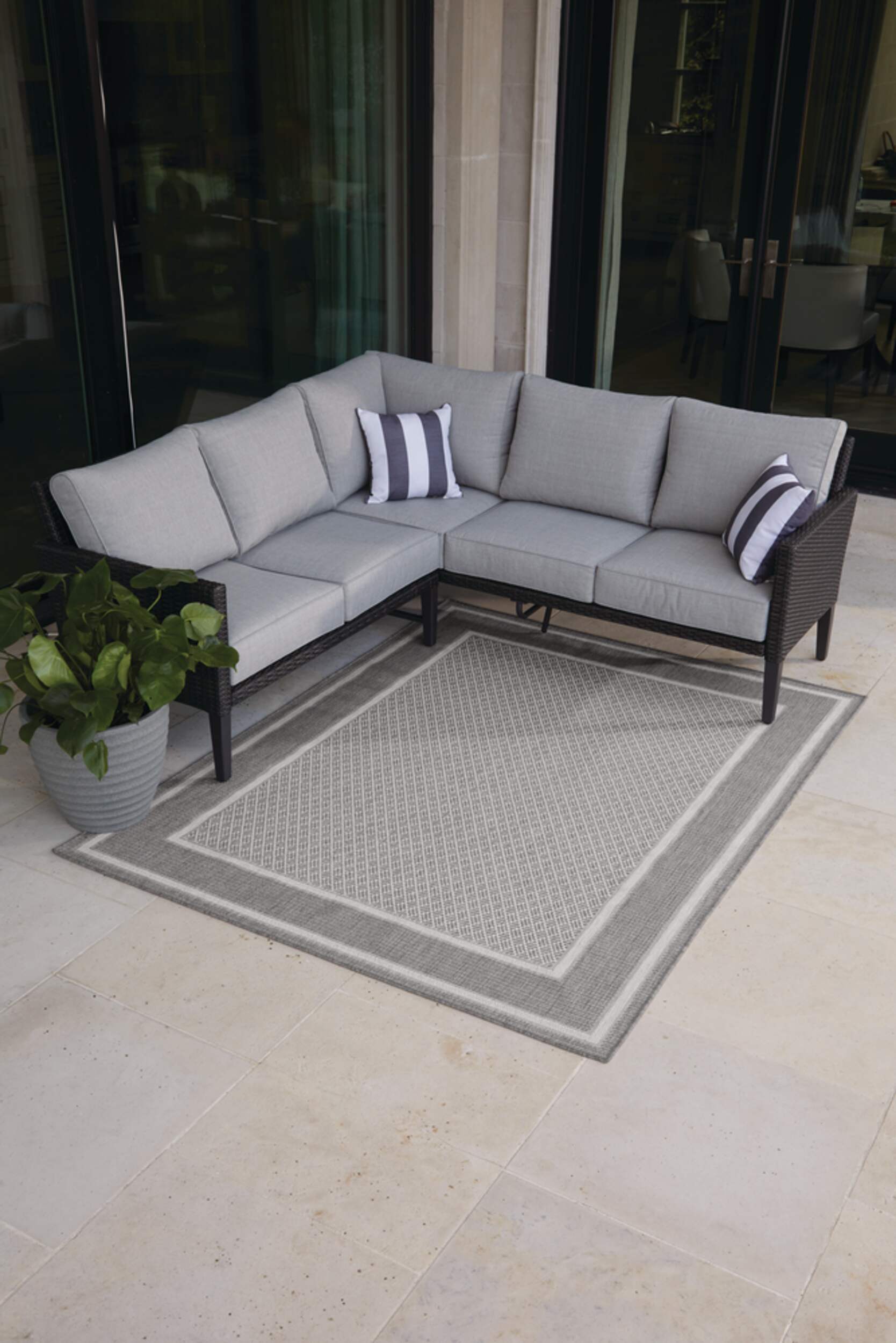 The CANVAS Aberdeen Outdoor Rug is the perfect addition to your porch and designed to hold up to the elements for long-lasting durability in outdoor environments. Featuring a high-quality, densely woven flat weave fabric, this outdoor carpet measures 5-feet wide by 7-feet long and is ideal for keeping your porch or entryway free of dirt, mud, and moisture before entering your home. For added convenience, the stain-resistant yarn is easy to clean with a hose or with a damp cloth.