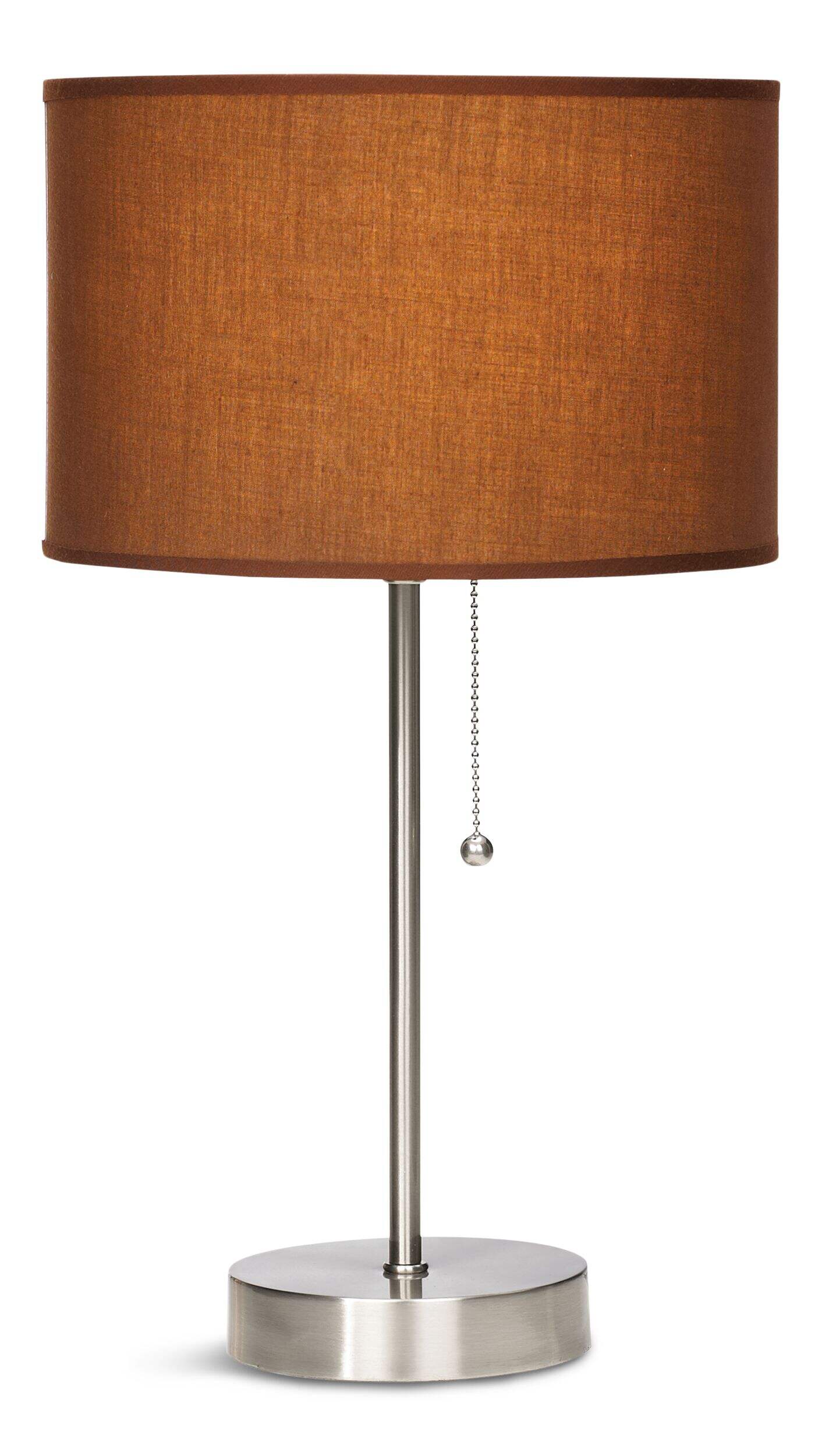 Sleek and modern, this CANVAS Graydon Table Lamp adds cool style to your home. The base and lamp are made of brushed nickel to coordinate with your existing décor, and topped with a bold fabric drum shade which comes in a variety of stylish colours. This modern table lamp provides clear light and a warm ambiance to bedrooms, living rooms, or wherever an extra desk light is needed.