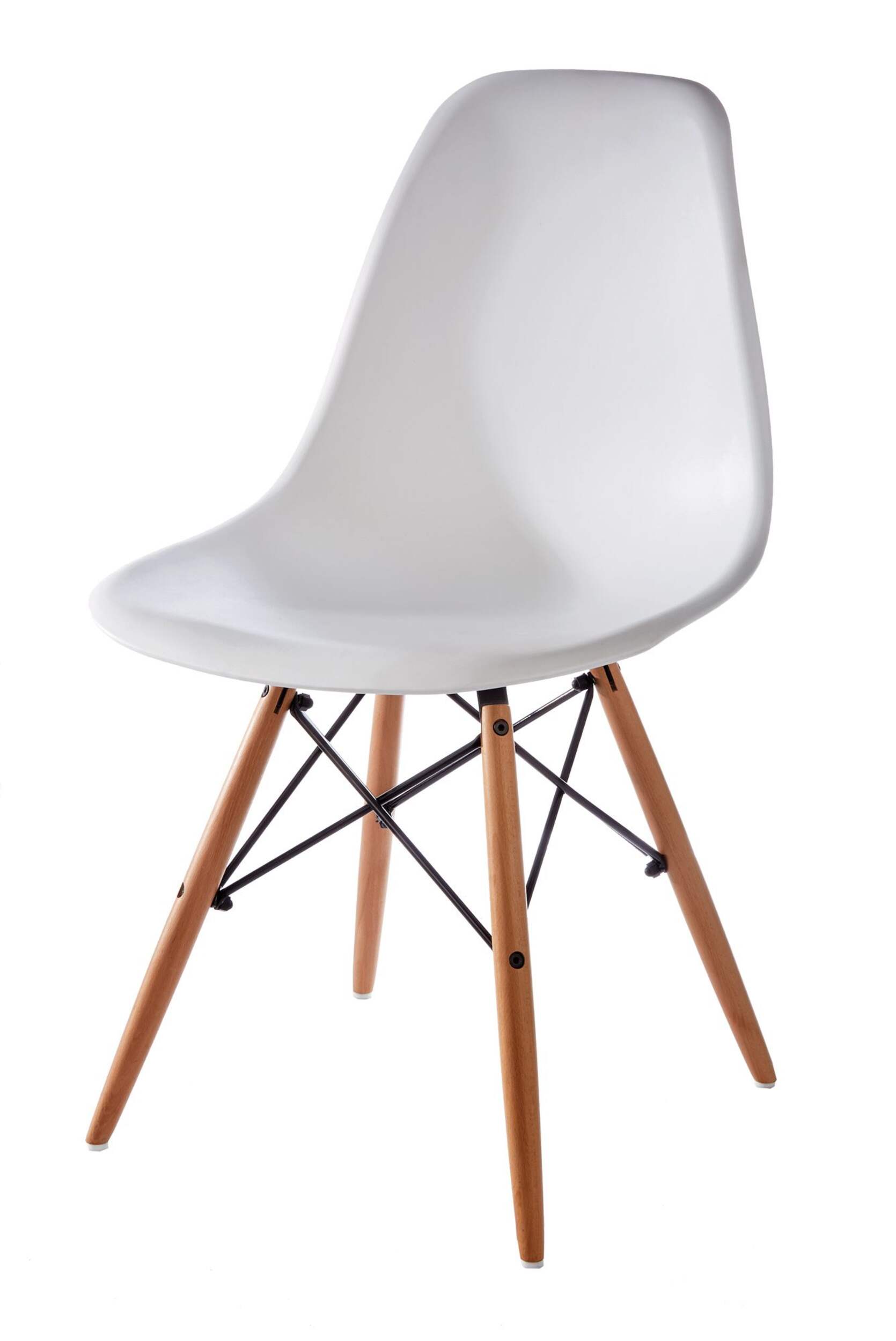 Enhance the modernity of your home with a CANVAS Henrik Chair. The retro design features a white molded plastic seat and solid wood legs with metal cross tubes. This easy to assemble chair measures approx. 18 x 22 x 32"