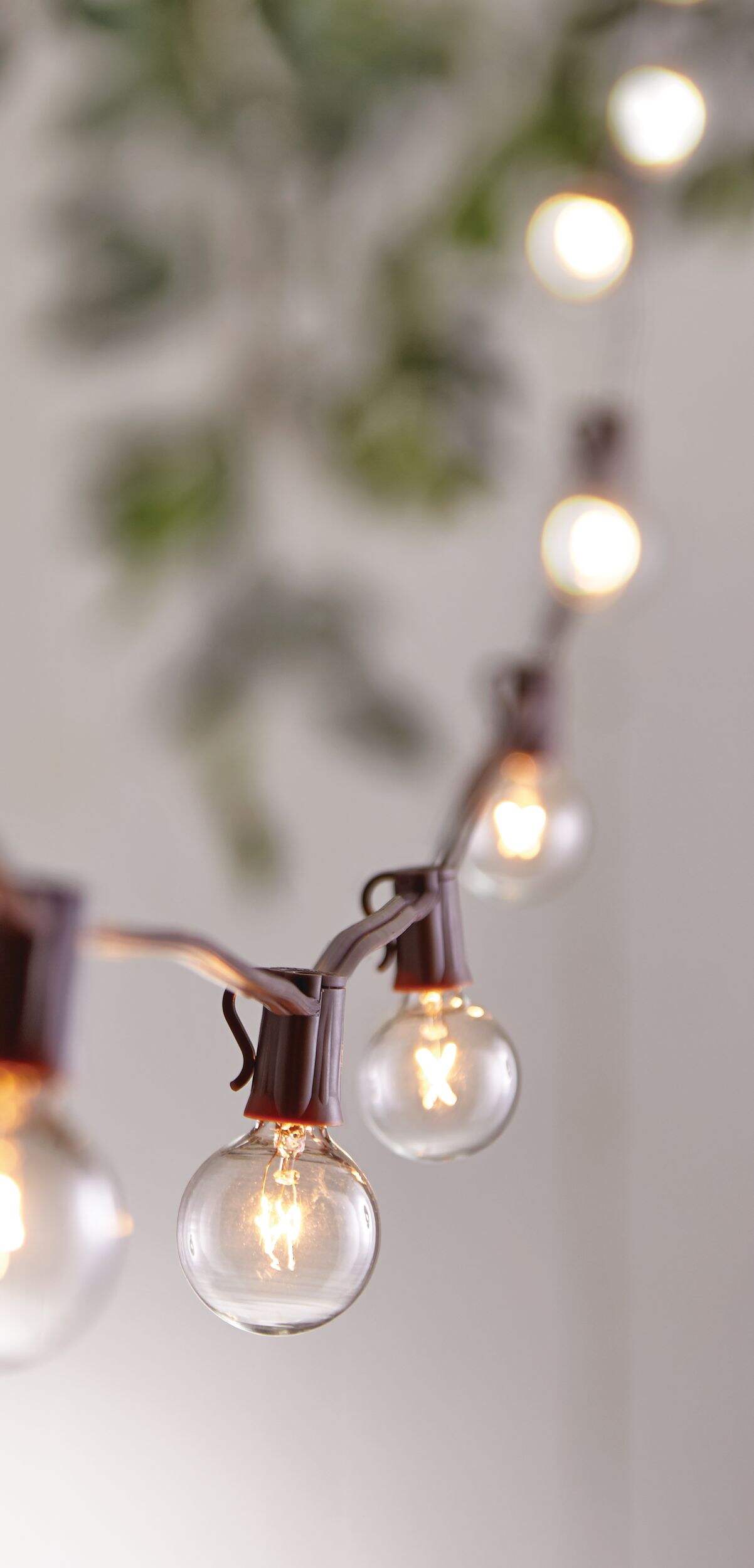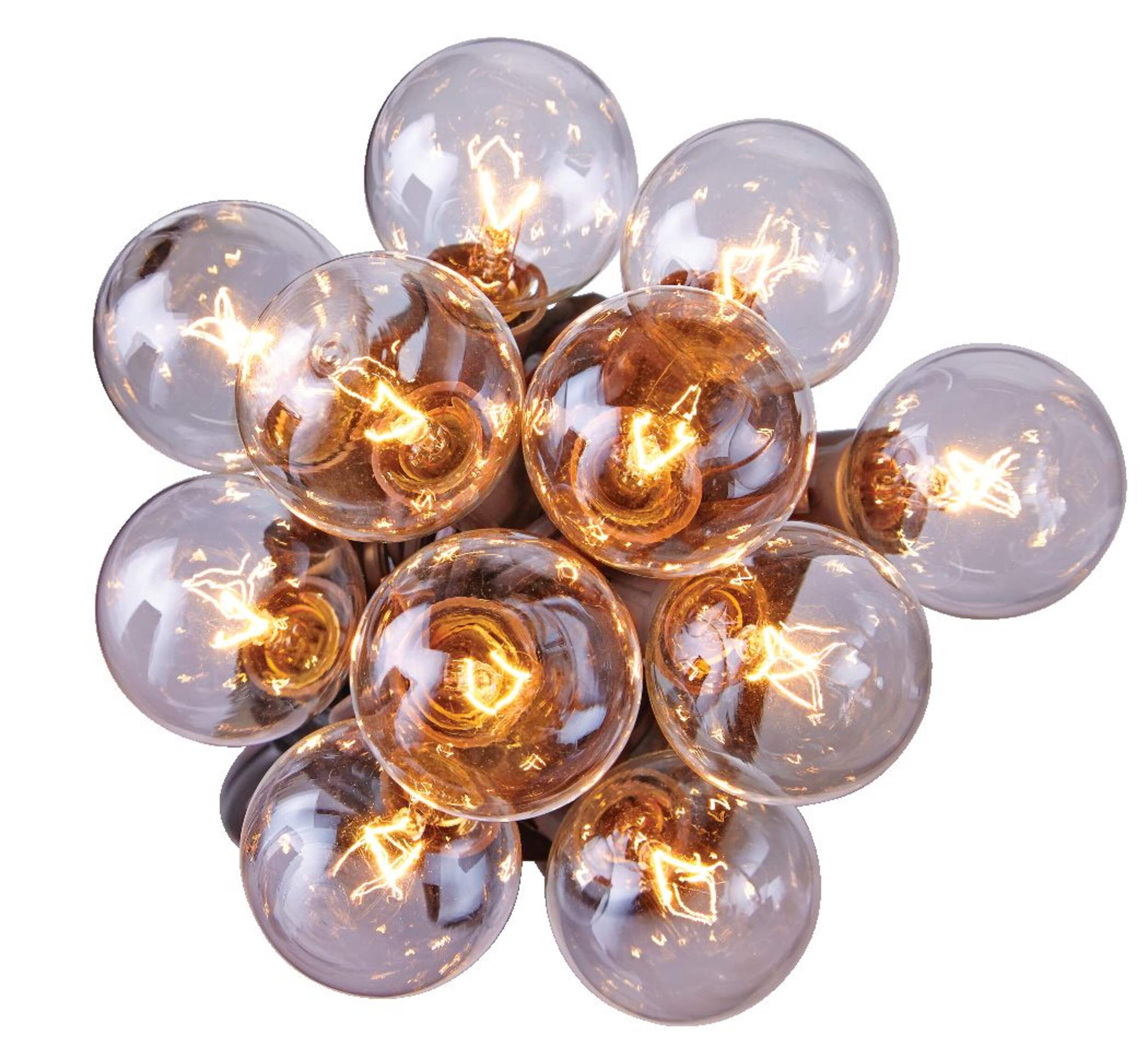 25 clear incandescent bulbs deliver a soft, inviting glow