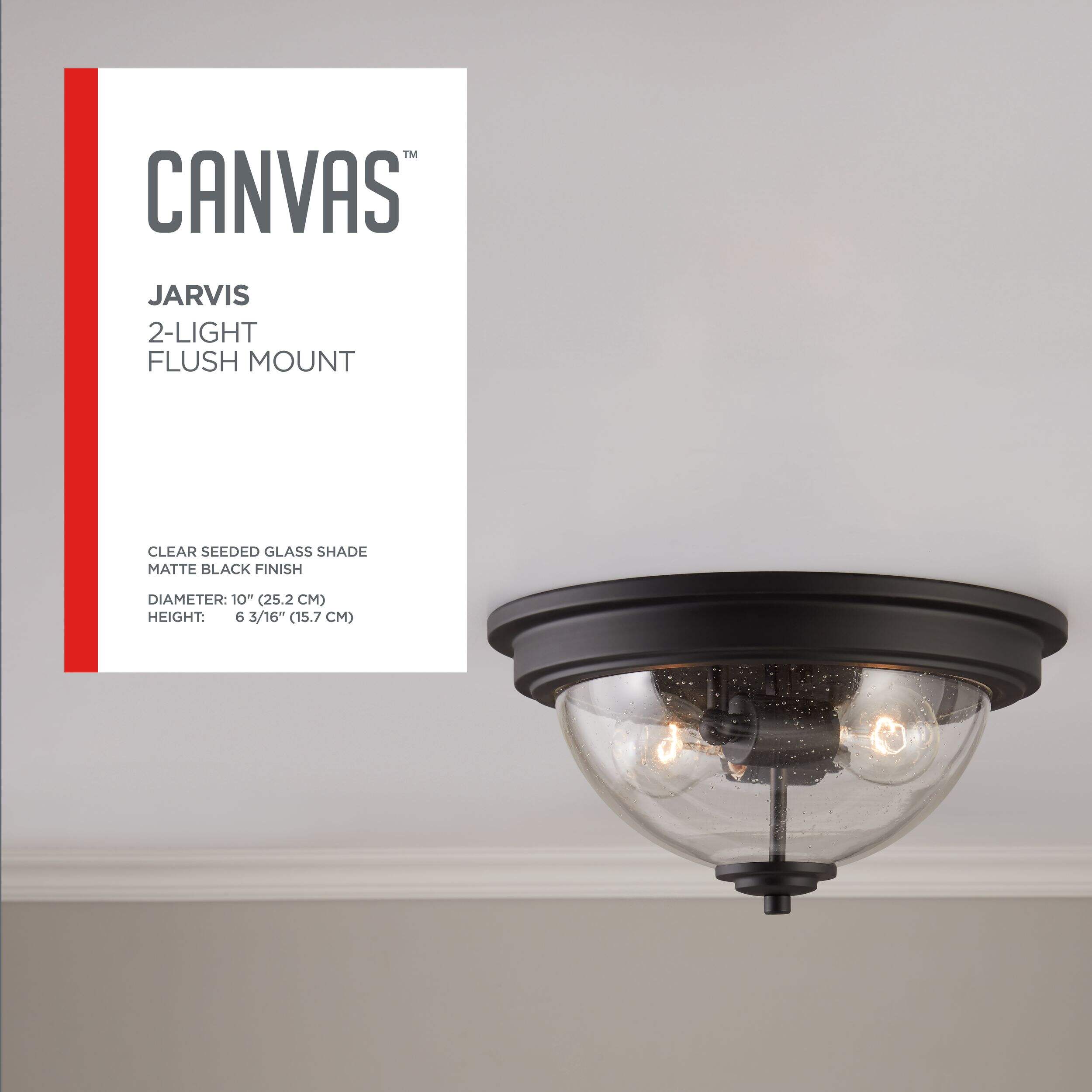 Add the lighting you need while updating your home with this CANVAS Jarvis Flush Mount Ceiling Light. Designed to unobtrusively sit flush to walls, this light fixture has a trendy matte black finish that easily coordinates with virtually any home décor. The seeded glass shade offers an elegant touch, while also allowing full illumination where you need it. You'll find this modern flush mount light is easy to install, with everything you need included with the light.