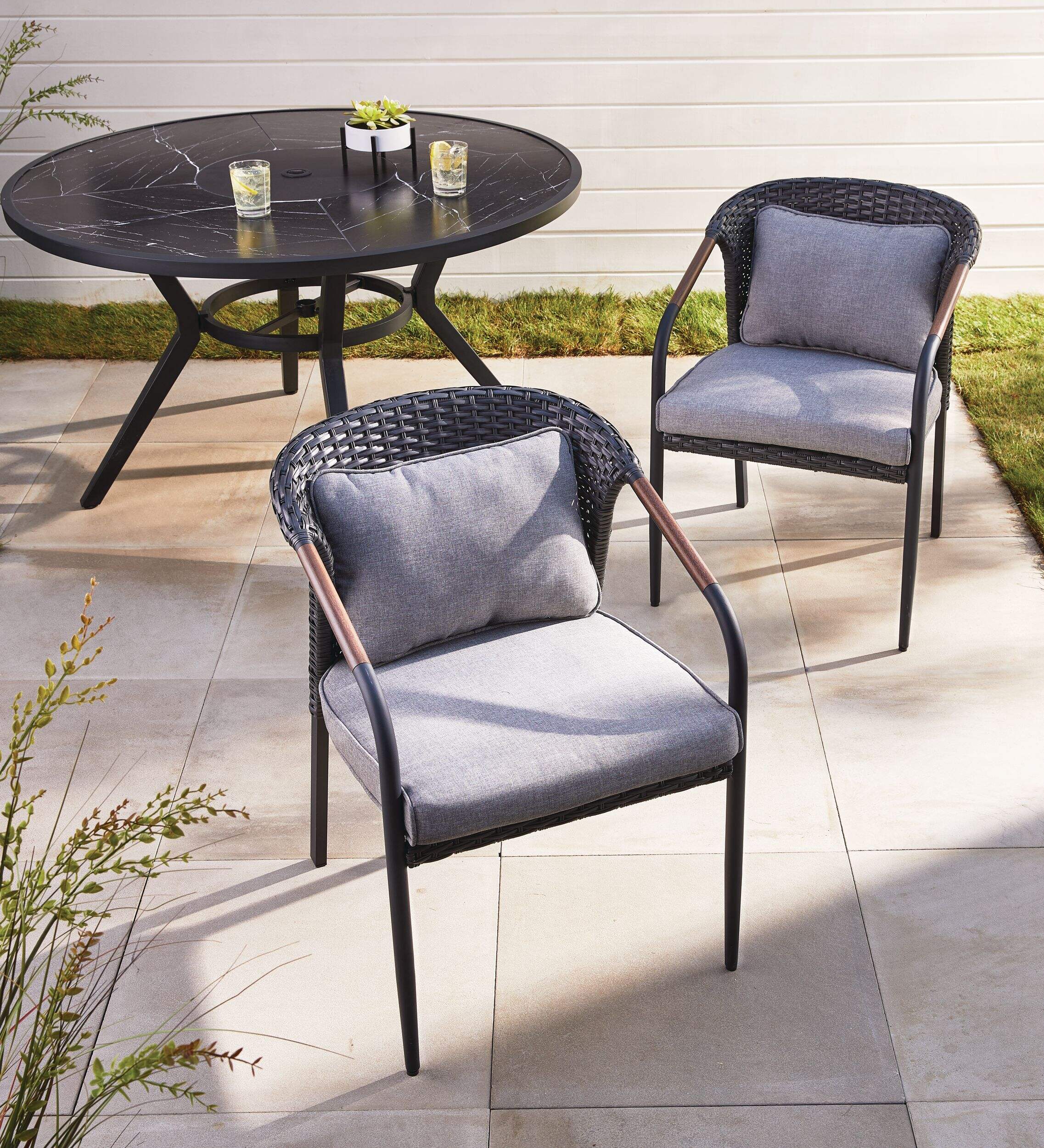 Built with all-weather, hand-woven wicker, the CANVAS Jasper Patio Dining Chair gives a refined look to any outdoor space. These patio dining chairs are designed with several features that make them perfect for all conditions, such as rustproof aluminum framing and water resistant cushions for rainy days. The cushions included with these patio chairs are protected by Tripel™ technology, which protects against water, stains, and fading. To add to their durability, the fabric also features Fade-Resist technology to help keep colours vibrant and avoid fading. For your convenience, these CANVAS Jasper All-Weather Wicker Chairs come in a set of 2, and are stackable for easy storage.