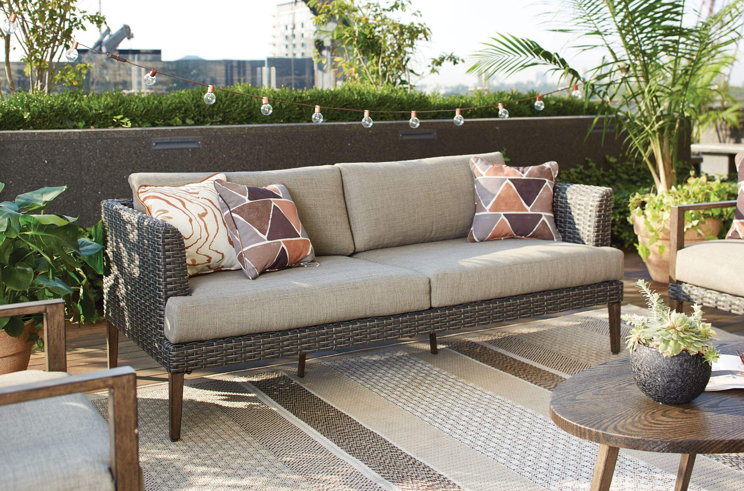 Hand woven grey, multi-toned, mixed weave all weather wicker