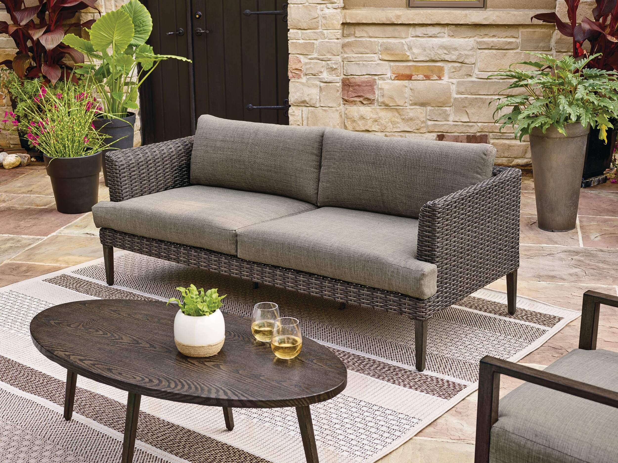 The CANVAS Jensen Conversation Collection Outdoor/Patio Sectional Couch has deep seating to keep you comfortable
