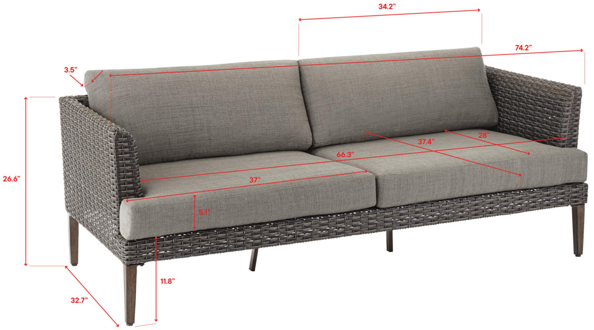 Assembled Dimensions: 74" L x 32.5" W x 26.5" H (188.5 x 83 x 67.5 cm)