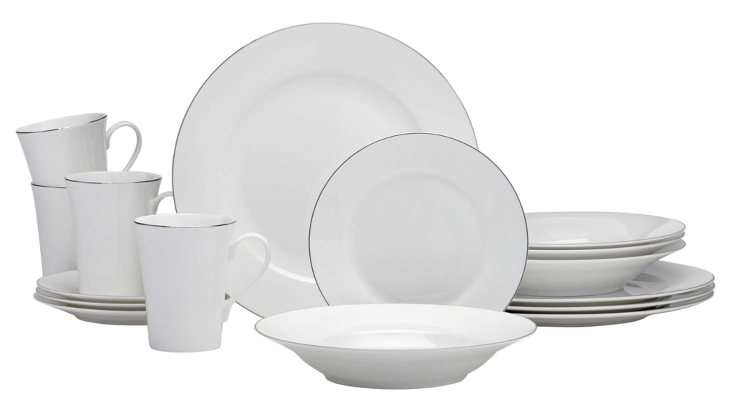 Set includes: 4 mugs, 4 bowls, 4 side plates and 4 dinner plates