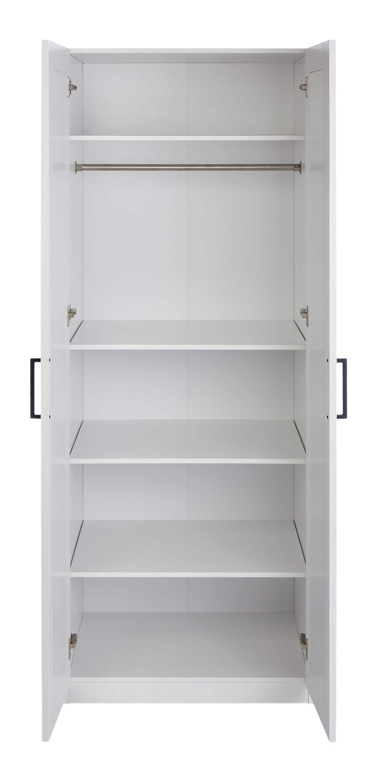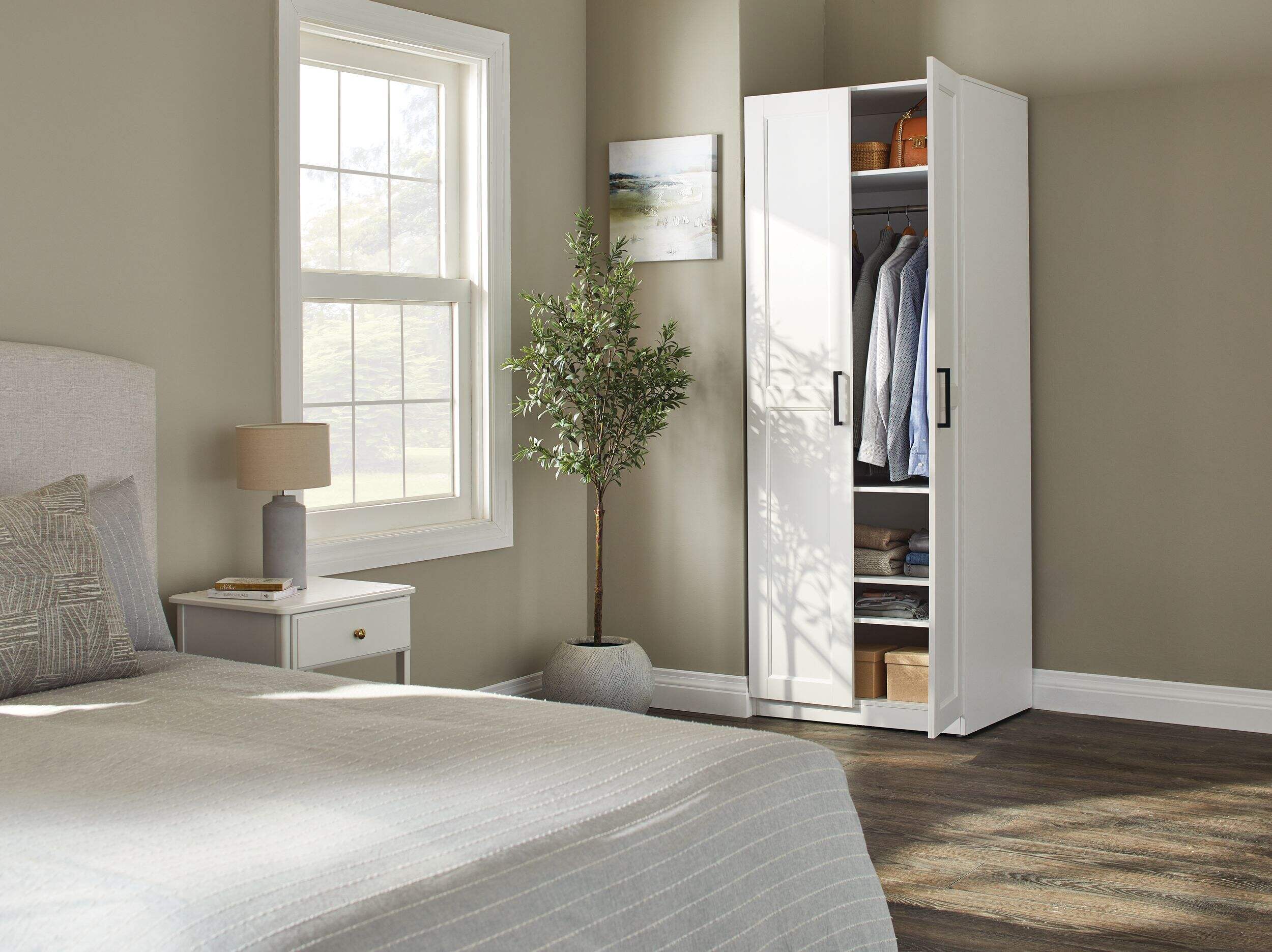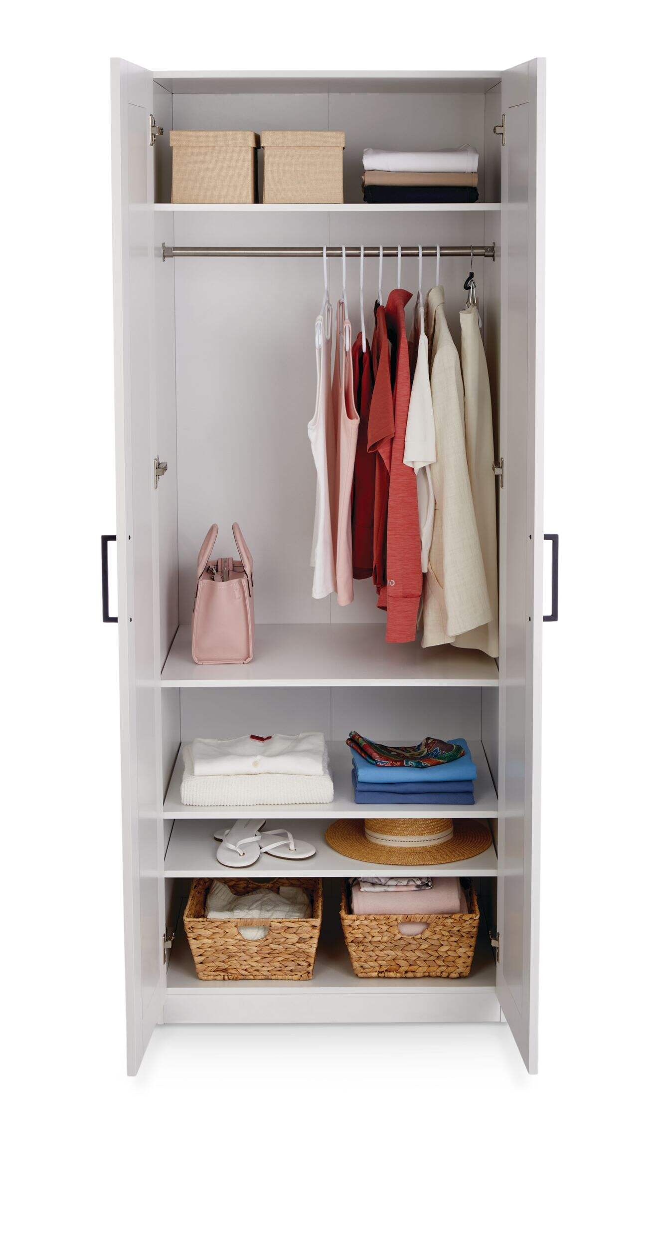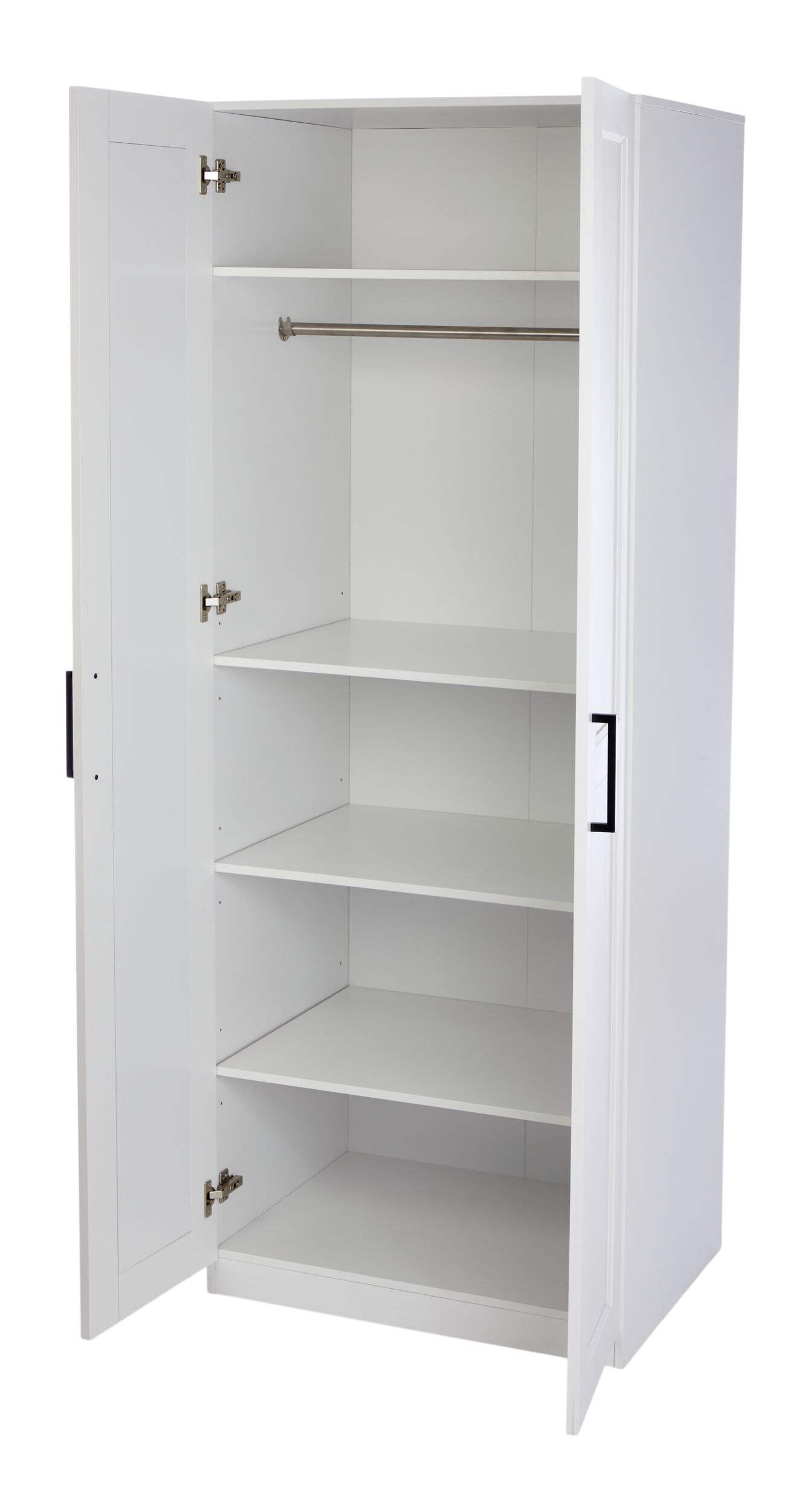 The CANVAS Kelsey Wardrobe system was designed to help you get more out of your space! All units are 80" in height and will sit flush side by side. Each unit can also be used independently or in combination with another unit. The sleek white finish with matte black handles makes it perfect for any space, bedroom, entryway and more. The medium wardrobe has ample storage with 3 adjustable shelves, 1 fixed shelf and a hanging rod to allow for short or long hang. Customize your storage systems to match your unique needs, achieving ultimate organization in style!
