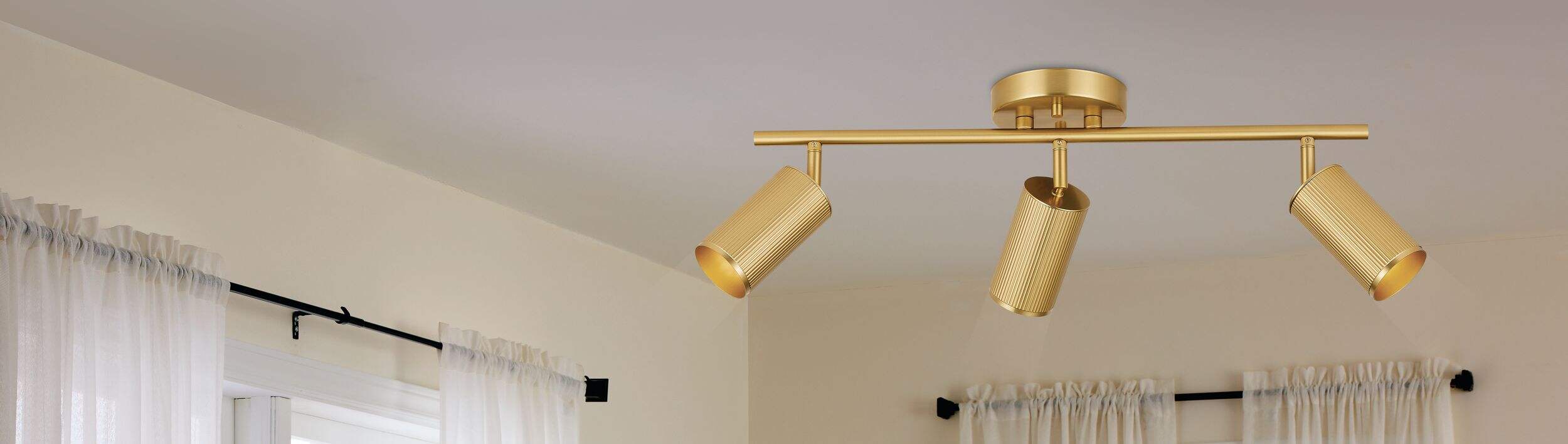 The CANVAS Kennedy 3-Light Ribbed Track Light Fixture in gold adds a touch of elegance to any space. This fixture features three lined light heads that require 50W bulbs (not included). Ideal for use over a kitchen island or as a vanity light, the ribbed design creates a striking spotlight or ambient lighting effect.