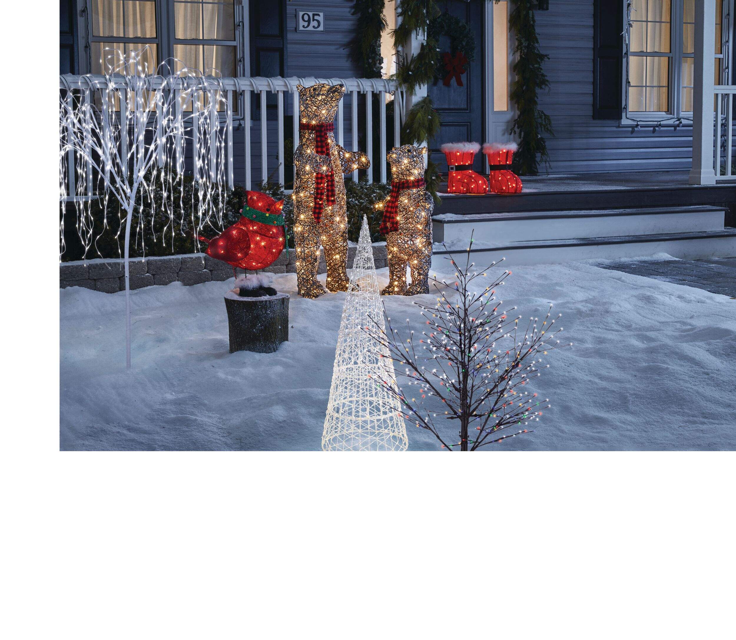 The whimsical CANVAS Mama and Baby Bear Christmas lights cast a warm, welcoming glow to transform your holiday landscape. These charming bear decorations come pre-lit with energy-efficient LEDs and delightful red plaid scarves for a heart-warming festive display. The energy-saving design means you can enjoy these glistening bears every night during the season with minimal energy use. Welcome your guests and family with the good cheer and instant joy of these lovable bear figures.