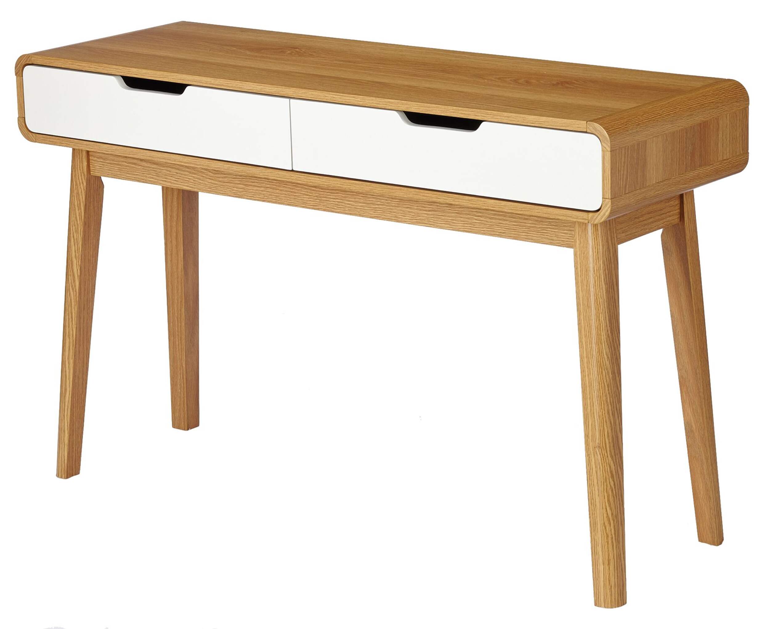Breathe new life into your home with a CANVAS Oslo Console Desk. The contemporary design features durable construction with solid wood legs, two large white storage drawers, and measures approx. 48 x 16 x 10 inches. Easy to assemble, this piece fits perfectly into any room décor.