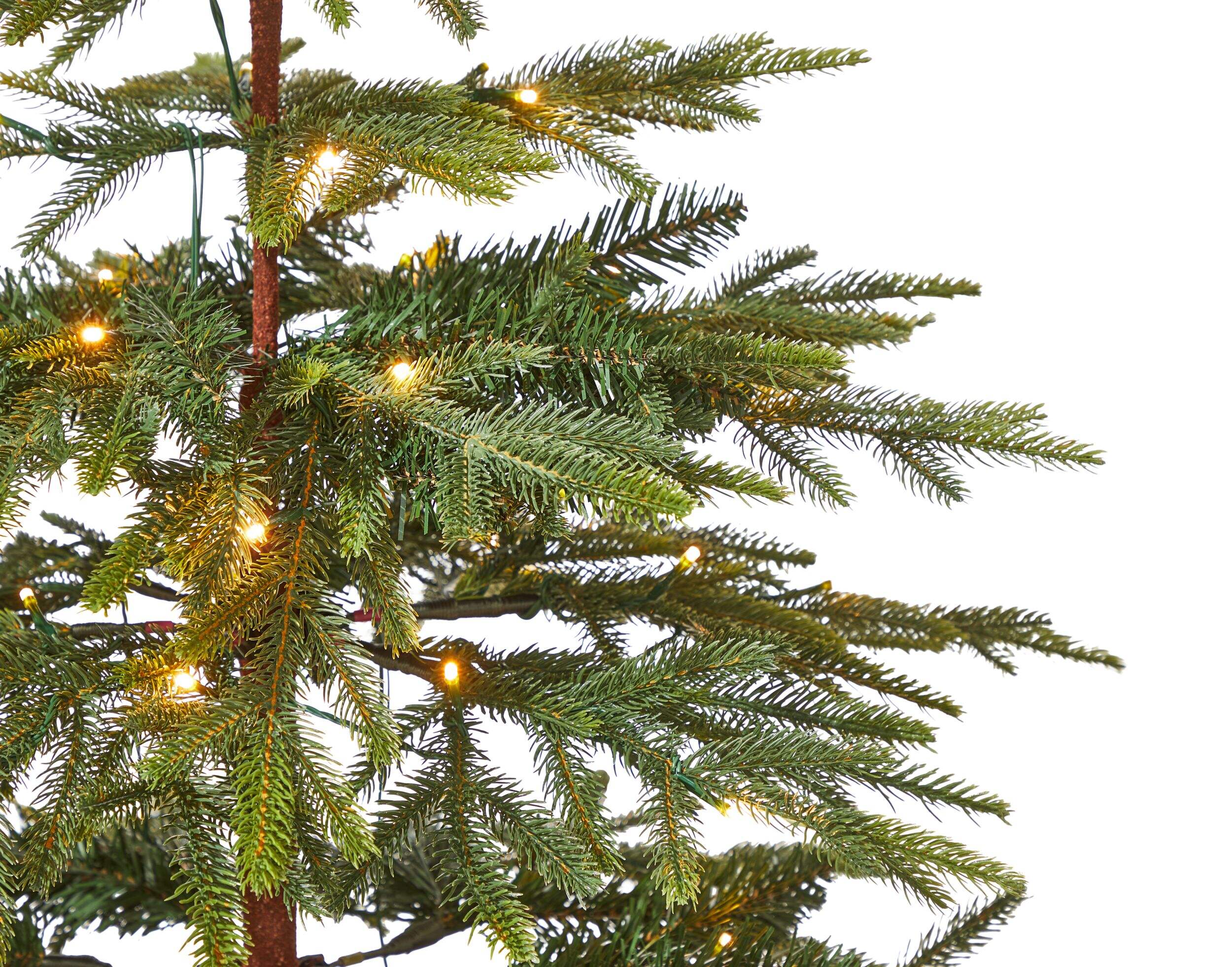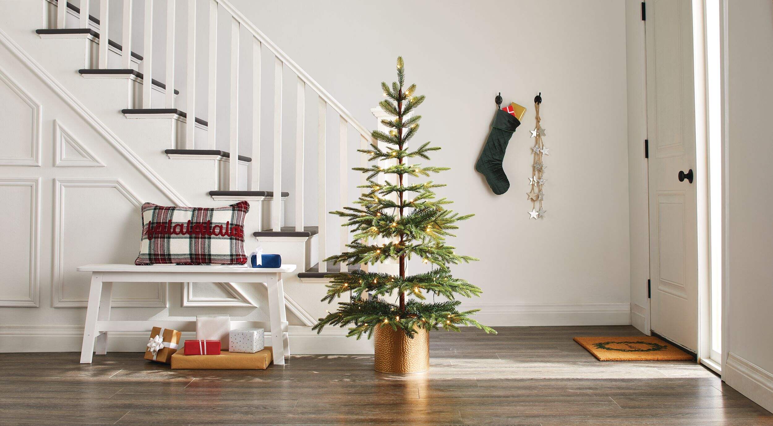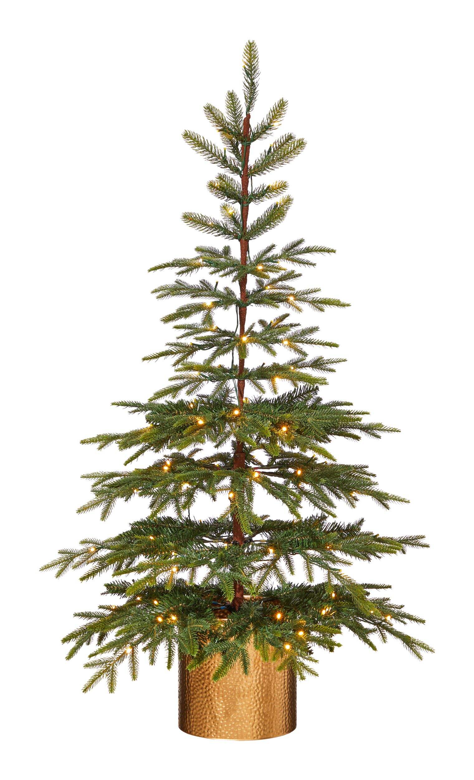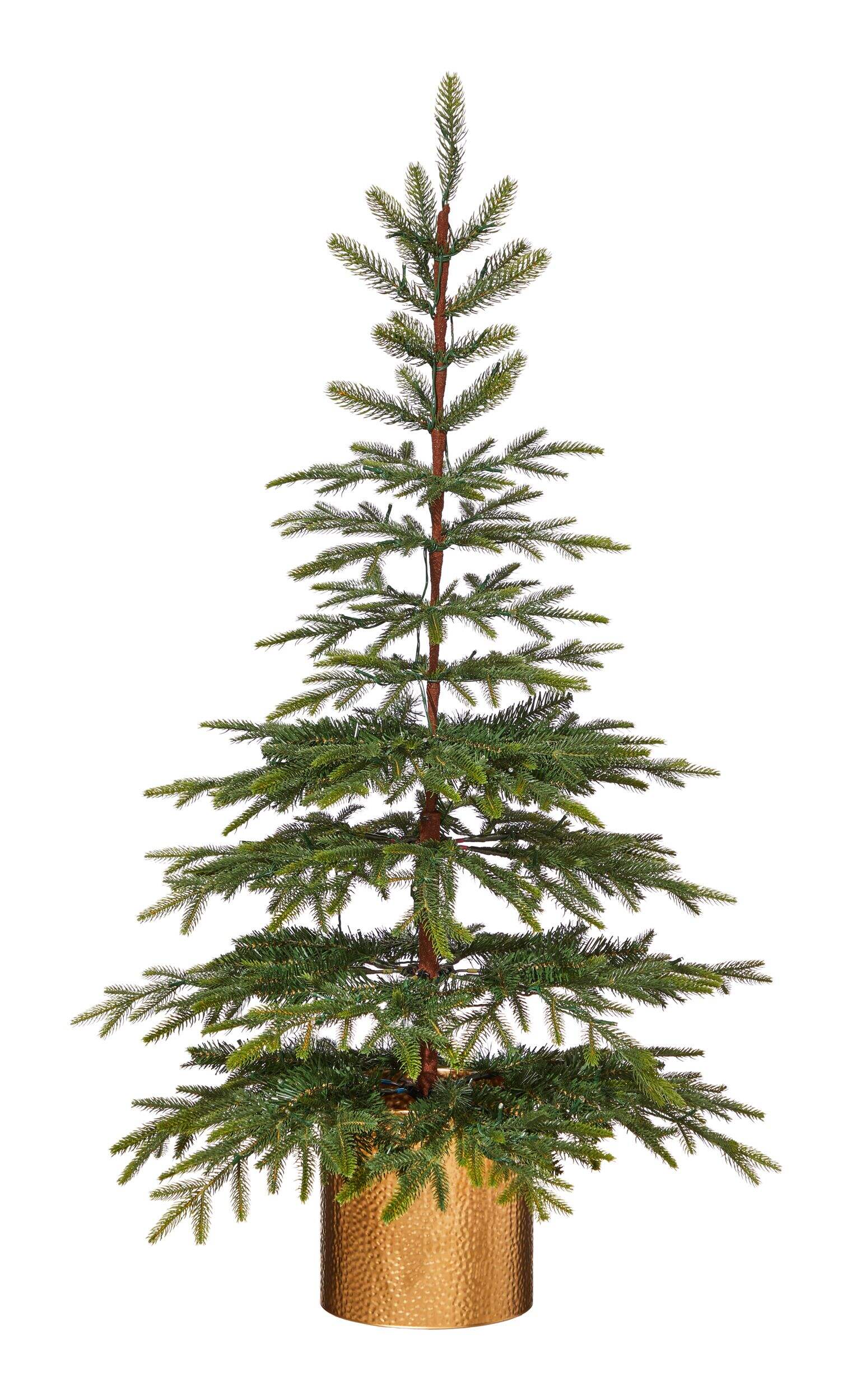 The CANVAS Layered Fir in Gold Hammered Pot #II is pre-lit with dazzling LEDs. This potted plant provides a stunning gold sheen that's sure to draw the eye of family and other guests. If you plan to entertain this winter, look no further than this simple potted tree to bring the spirit of the season indoors.