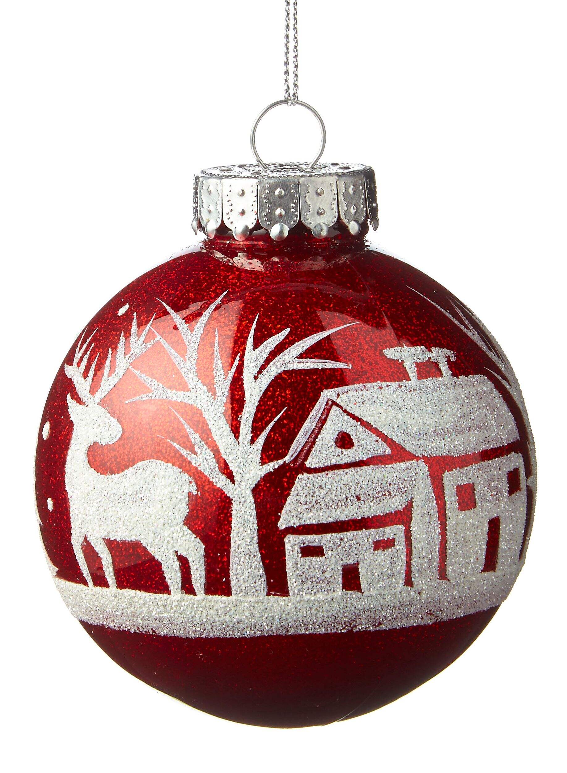 CANVAS Red Collection Glitter Scene Ball Ornament will add a beautiful sparkle to your holiday décor