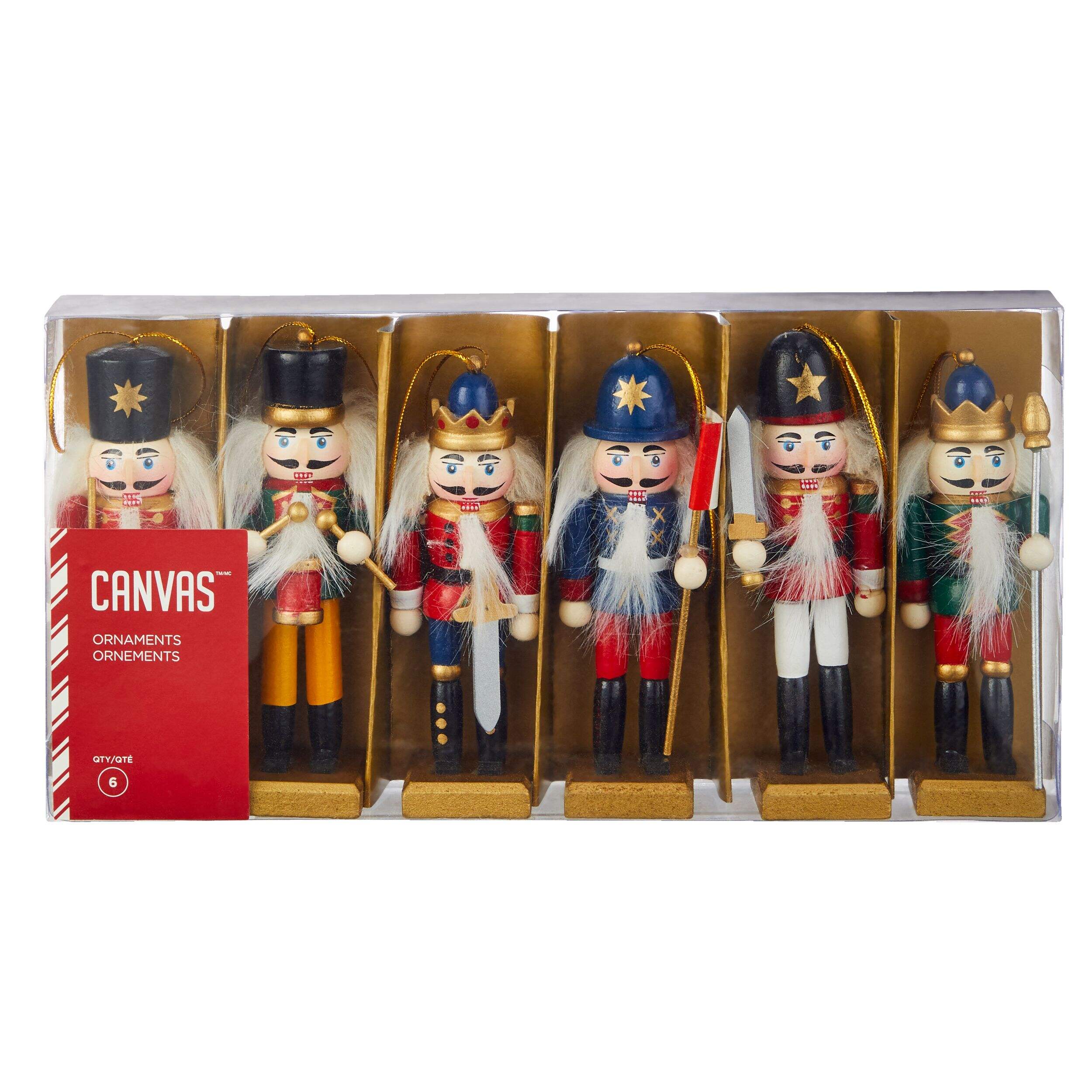 Celebrate the classic ballet while decorating for the holidays with the CANVAS Red Collection Traditional Nutcracker Ornament Set. It comes with 6 fun Nutcracker characters in varying colours and designs themed after the popular holiday ballet The Nutcracker. Each decorative Nutcracker is made from durable wood, so you'll enjoy them on your tree for years to come. They're the perfect holiday decoration for any fan of the ballet.