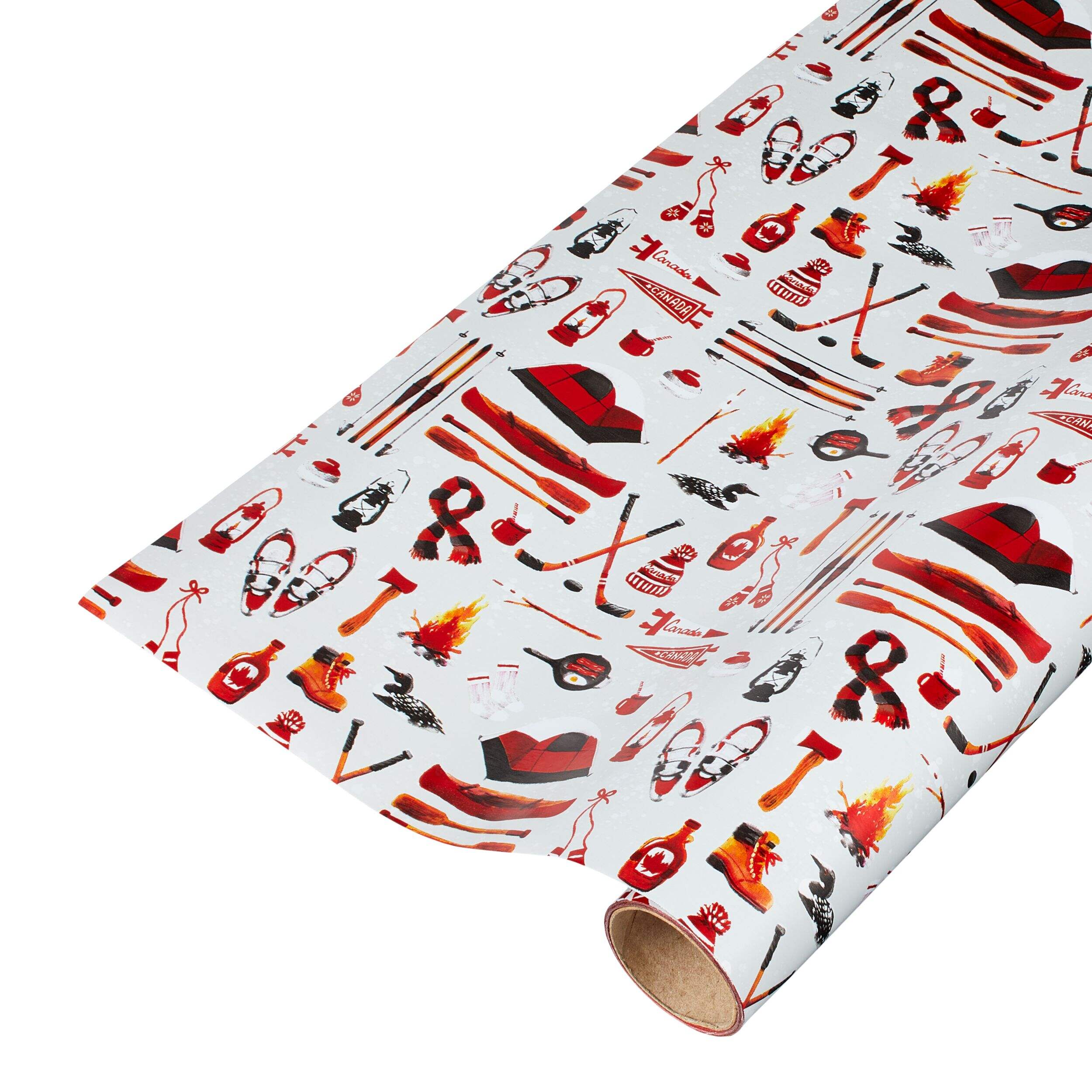 The CANVAS Canadian Christmas Reversible Wrap Single Roll is a convenient option for festive gift wrapping or home decoration. Made from heavy-duty paper, it features two designs in a single roll - red plaid on one side and traditional Canadian winter symbols on the other. This reversible wrap from the Canadian Christmas Collection is ideal for holiday gifts or Christmas-themed DIY projects.