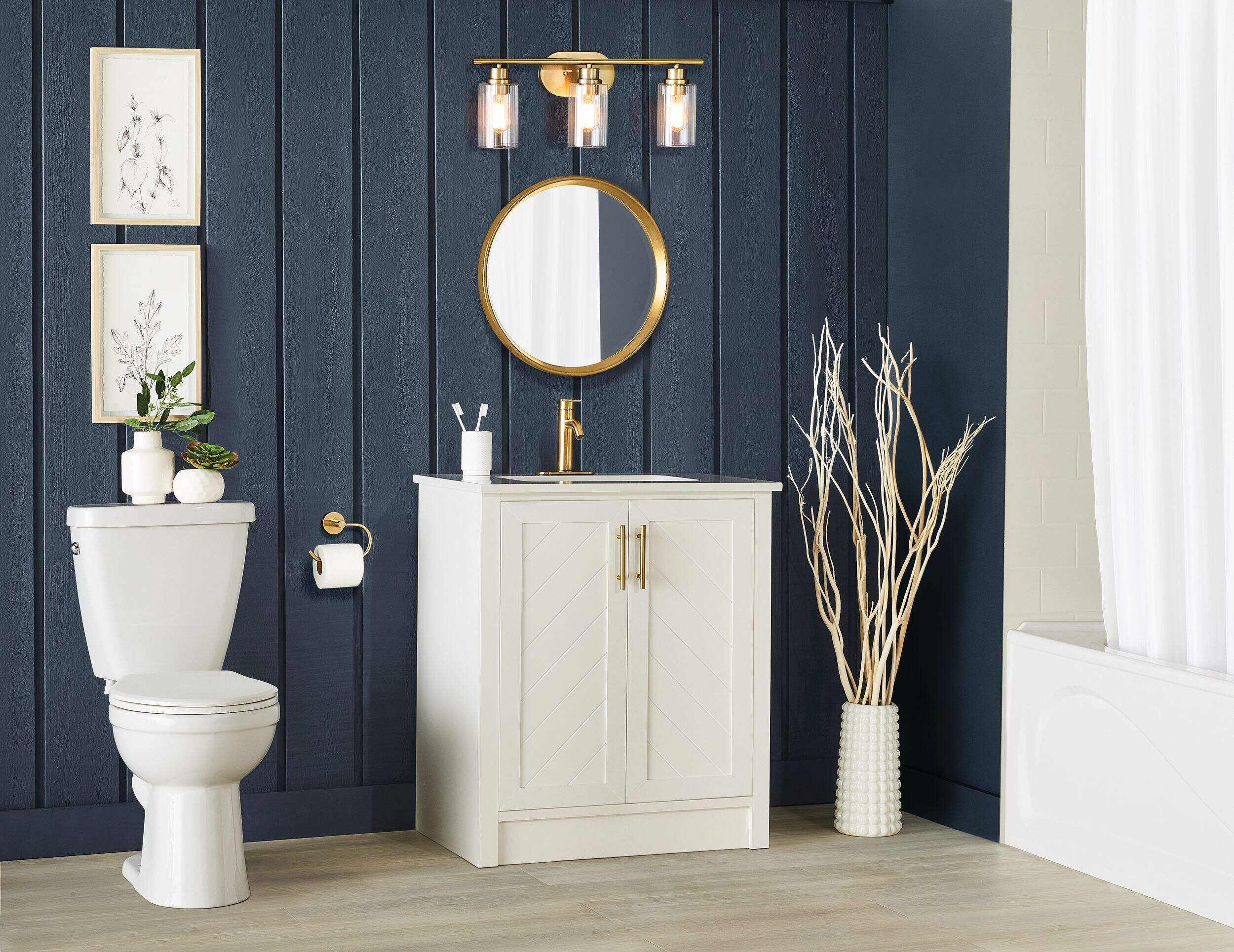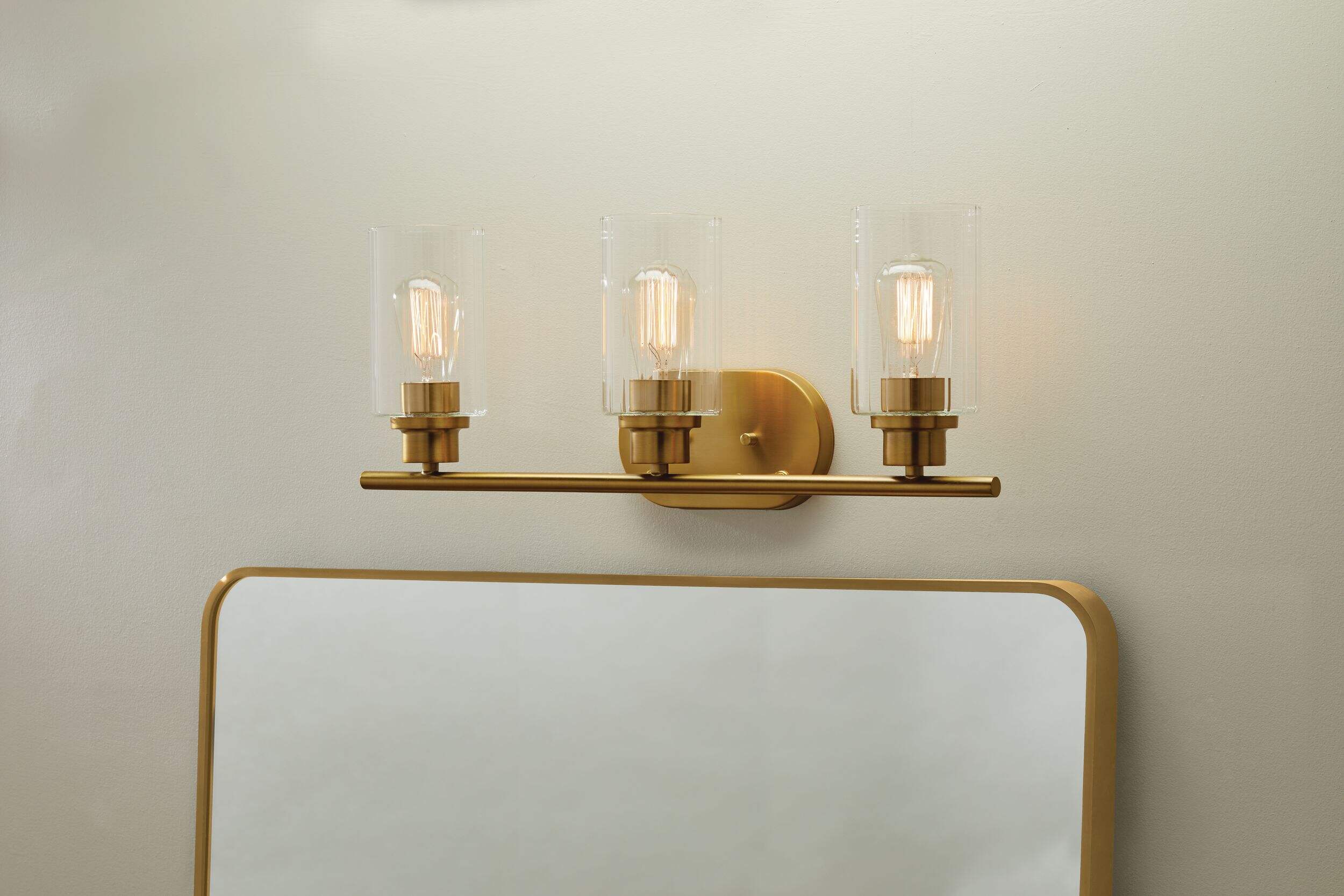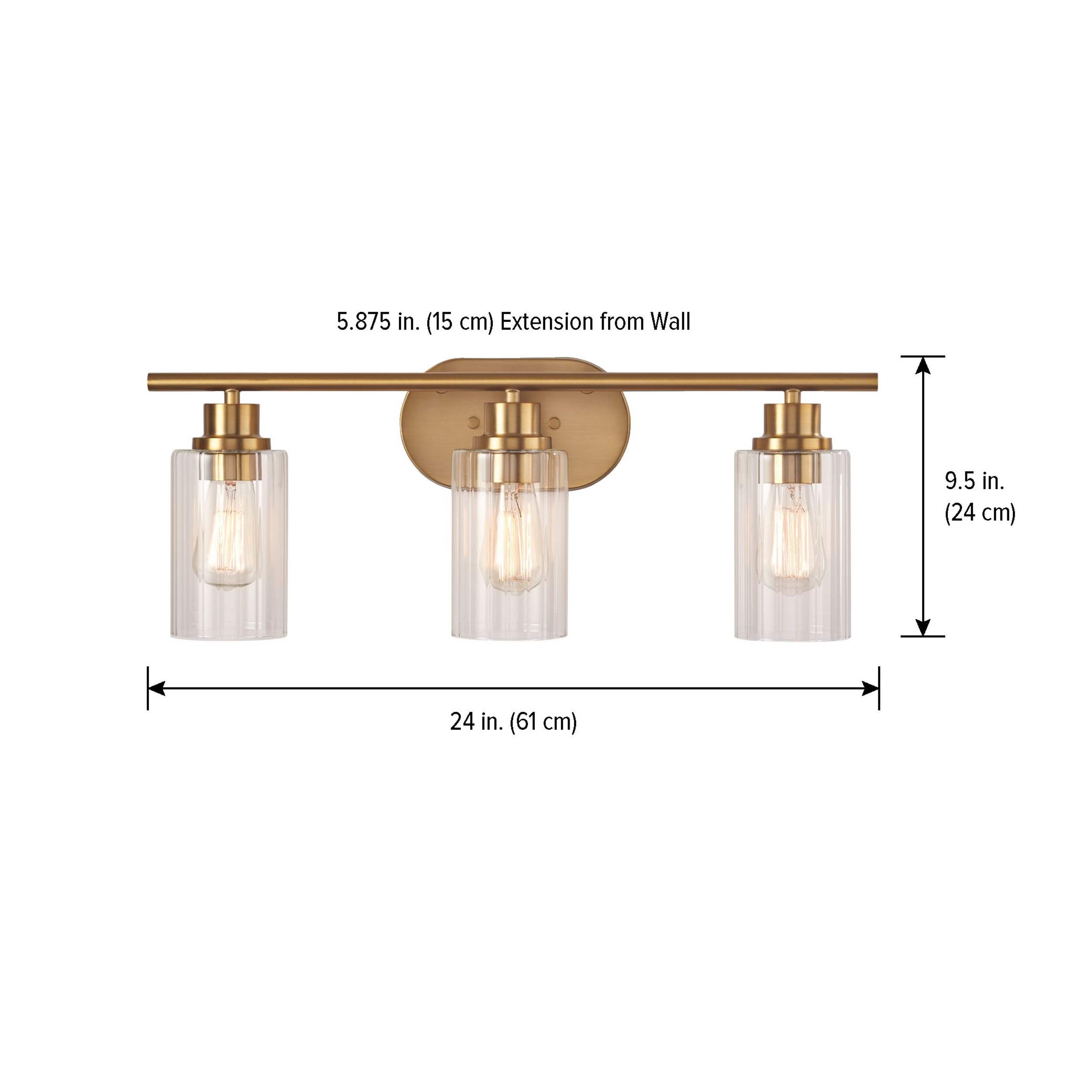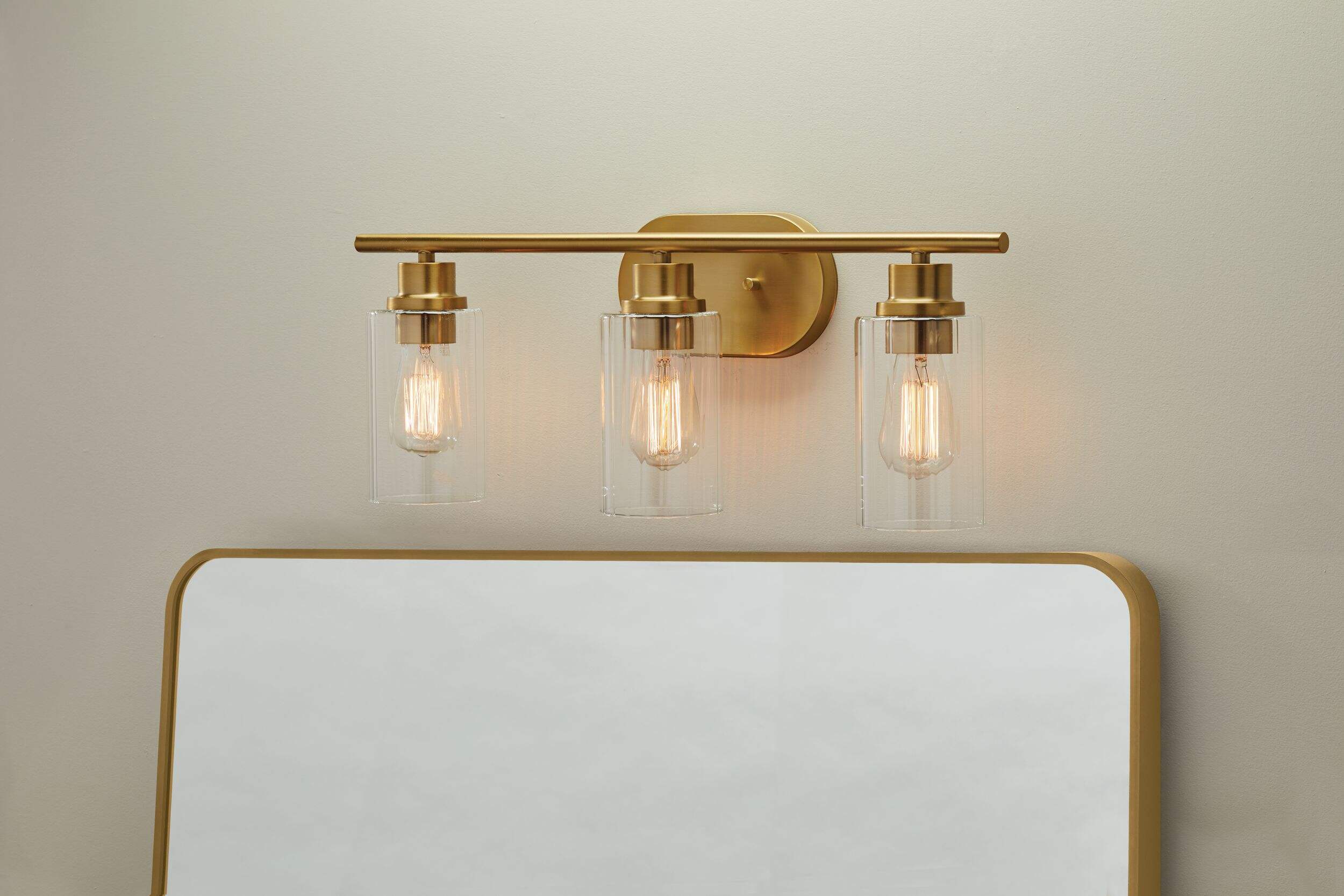 Step up your bathroom ambience with the casual sophistication of the Rosstown Vanity Fixture from Canvas. This brushed gold vanity light instantly hits the glam button for upscale elegance and modern luxury. Installed above your marble or stone countertop it sends a cascade of bright light across double sinks, or projects it toward the ceiling for a luminous overhead effect. Either way, your space is brighter and more appealing.