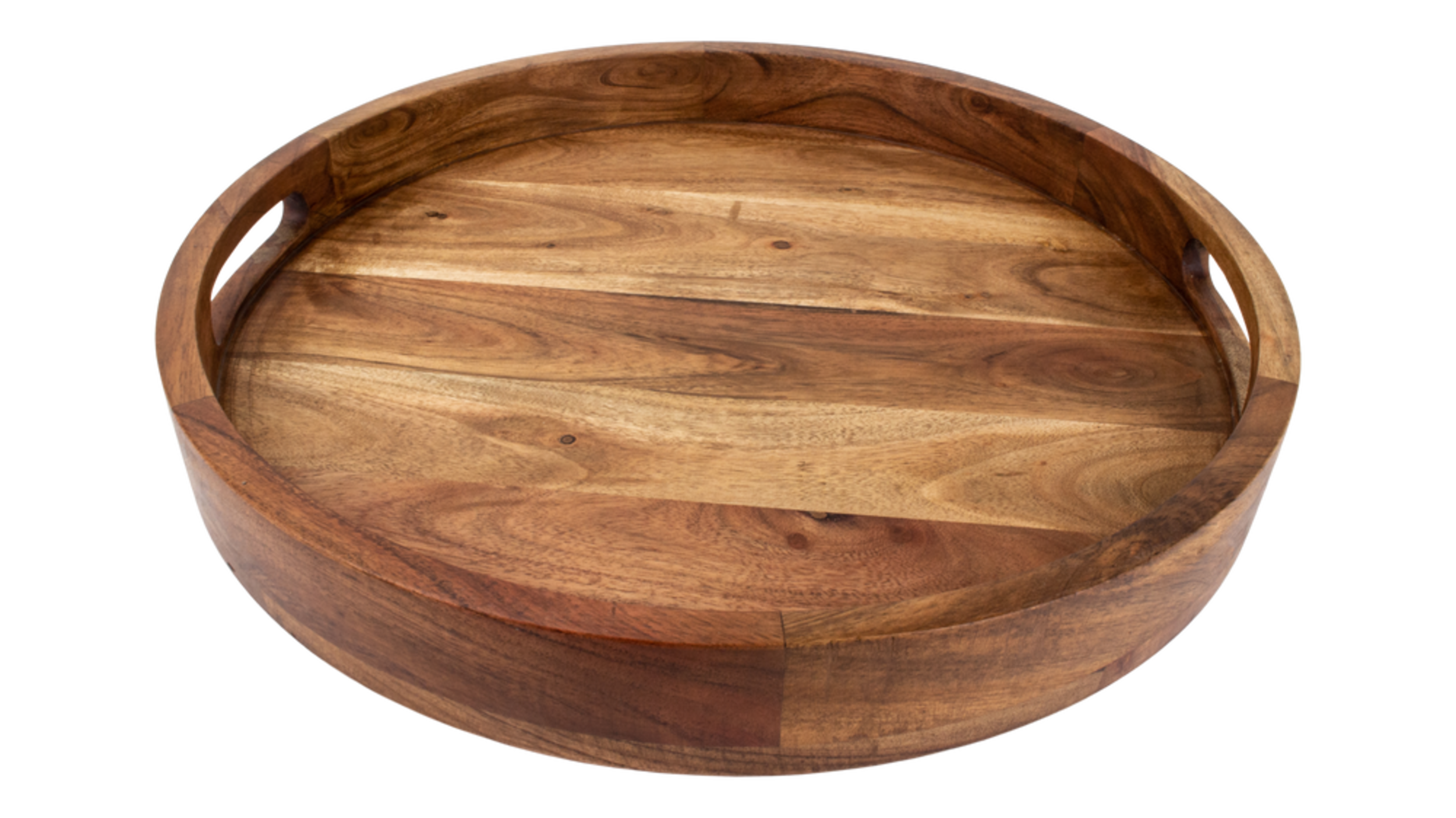 CANVAS Round Wood Serving Tray is a convenient and durable wooden serving tray, made with high quality Acacia wood. This serving tray is built with cut-out handles, making it easy to carry your platters, snacks, and appetizers to the kitchen. 1-year warranty included.