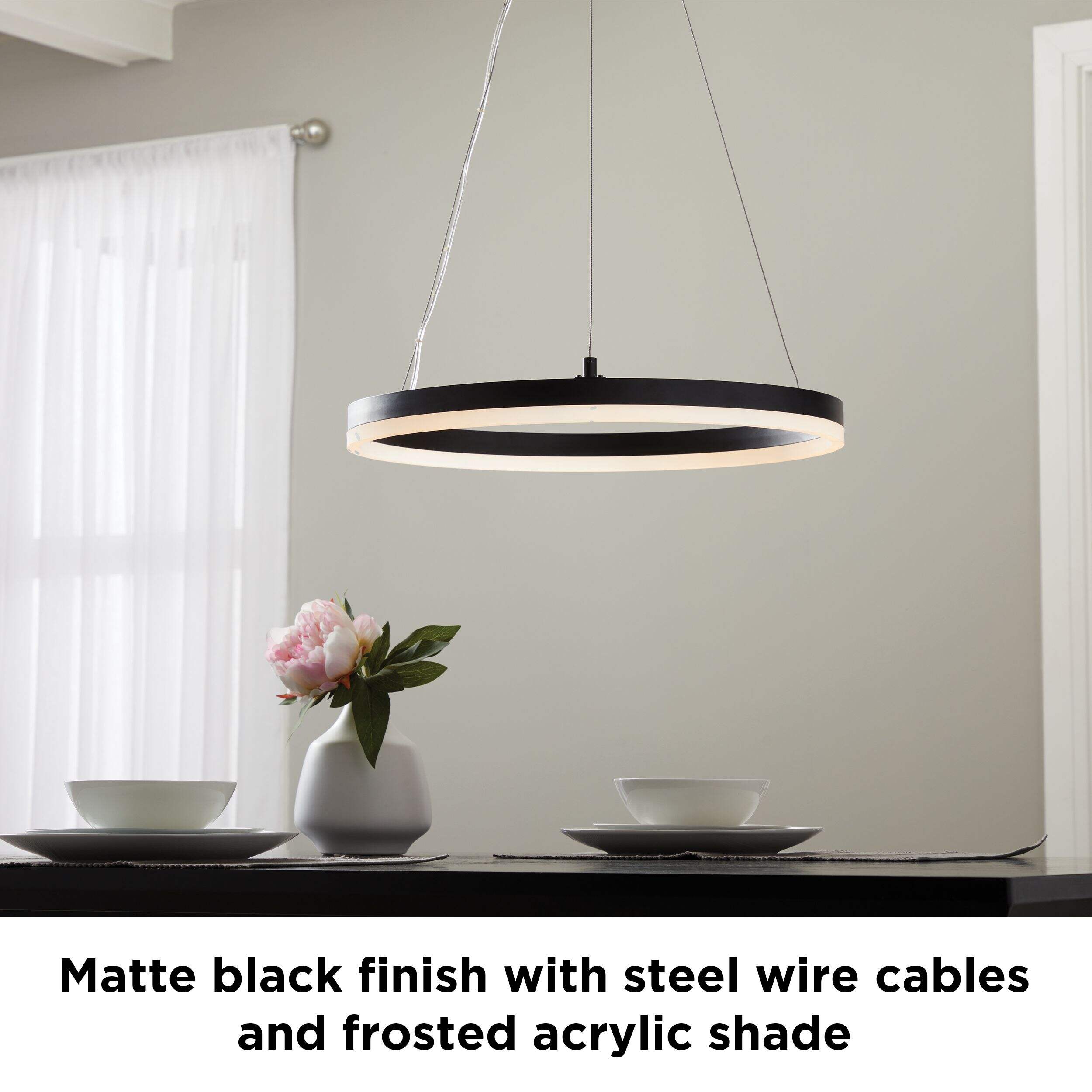 The CANVAS Shaw Round LED Pendant Light with Wire Cables combines modern elegance with advanced lighting technology. This LED pendant light provides bright illumination, making it ideal for kitchens, dining areas, or living spaces. Its sleek, round design offers a minimalist aesthetic, suitable for contemporary and modern décor schemes. The integrated LED ensures long-lasting, energy-efficient lighting, while the wire cable suspension adds to its stylish appeal.