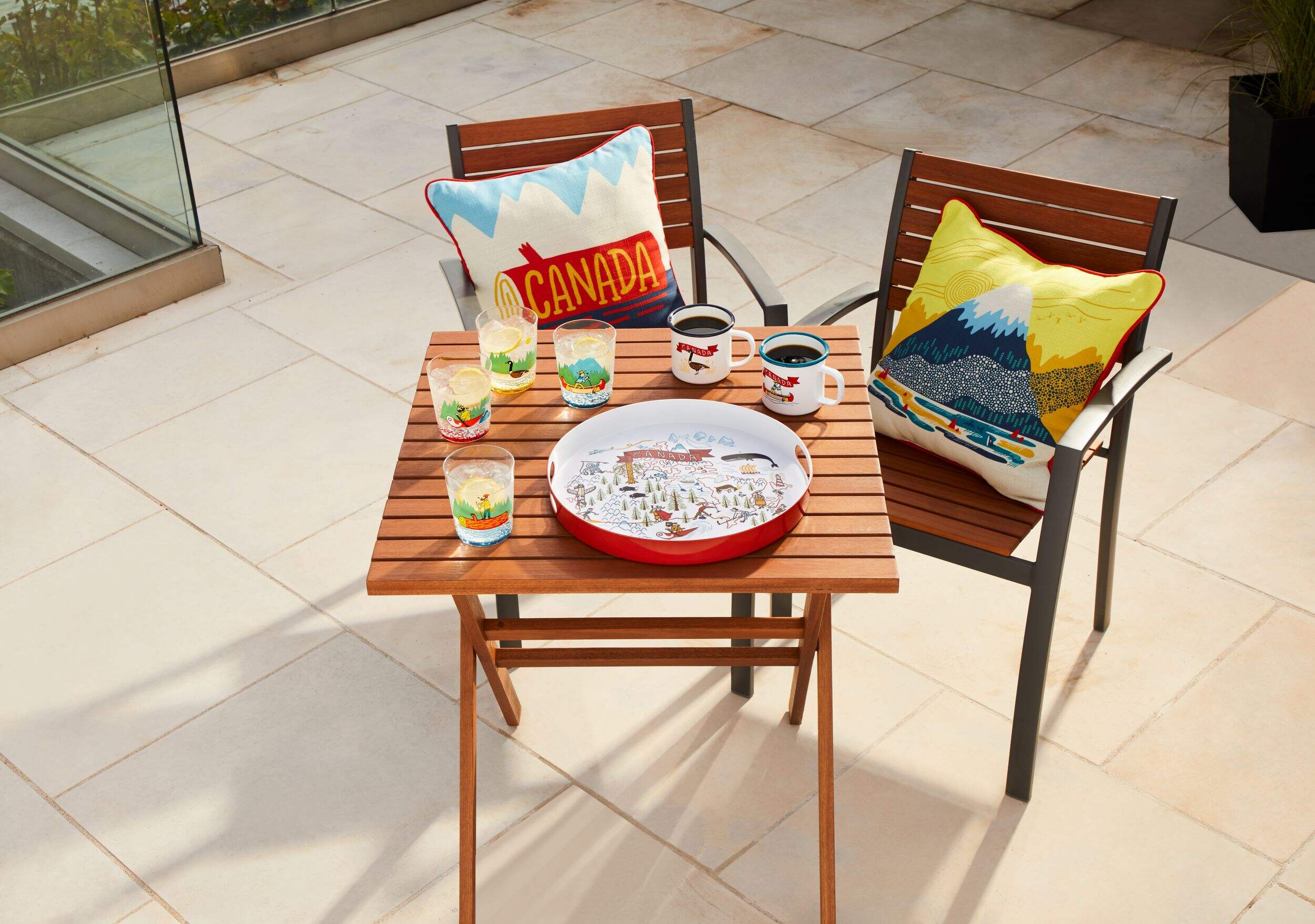 Add some handy table space to a balcony or outdoor space with a CANVAS Sherbrooke Wooden Square Bistro Table. The classic design of this bistro table is ideal for balconies and features adjustable feet for levelling. The square bistro table is made of FSC Certified Eucalyptus for long-lasting beauty, durability and sustainability. This outdoor bistro table assembles easily with included hardware, measures 26.26" x 26.26" x 29.13" and coordinates with other CANVAS Sherbrooke Bistro pieces (sold separately).