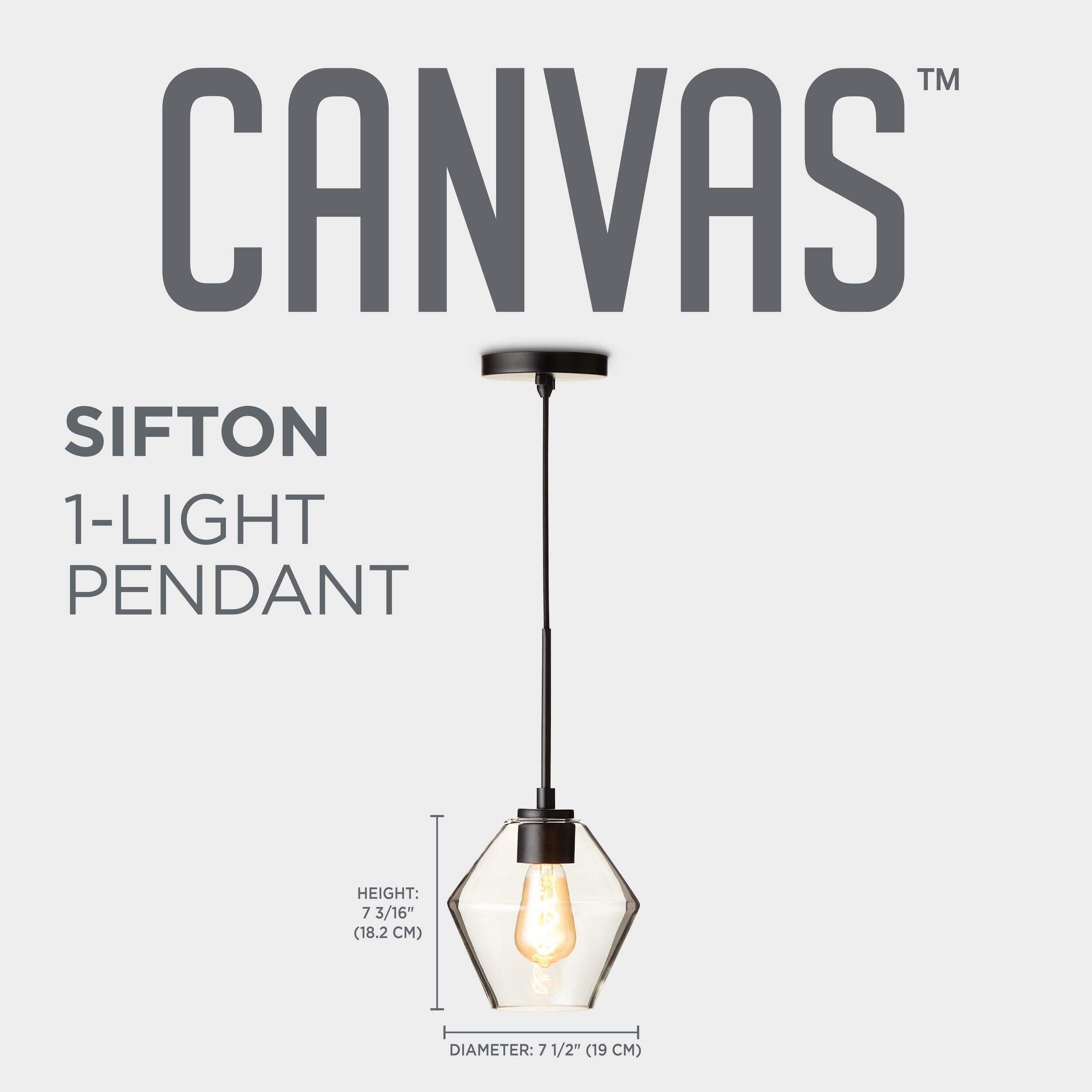The CANVAS Sifton 1-Light Pendant Light brings modern elegance to any space with its sleek matte black finish and clear glass shade. Ideal for entryways, dining areas, bedrooms, and more, this versatile pendant light adds a sophisticated touch to your home. Easy to install, it comes with all necessary hardware and simple instructions, making it a stylish and convenient lighting solution for any room.