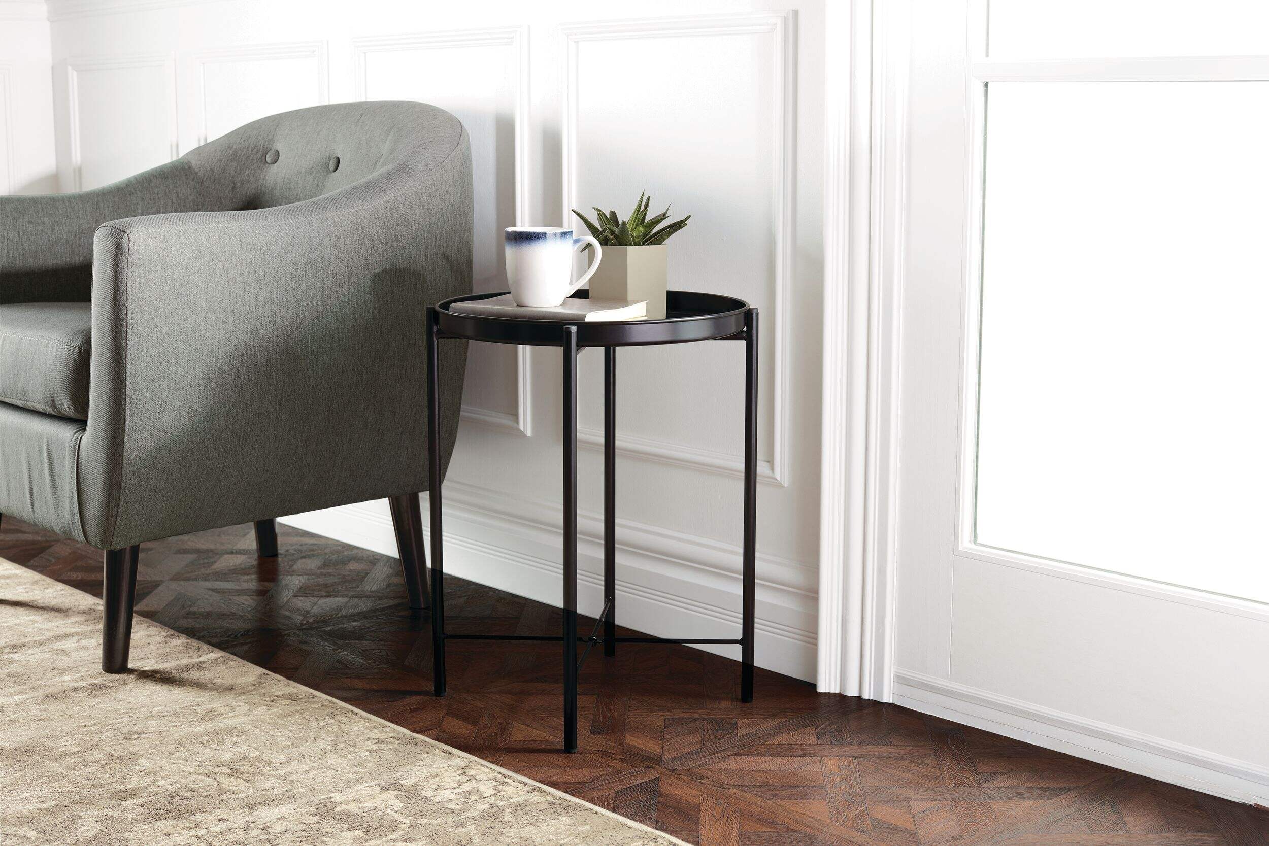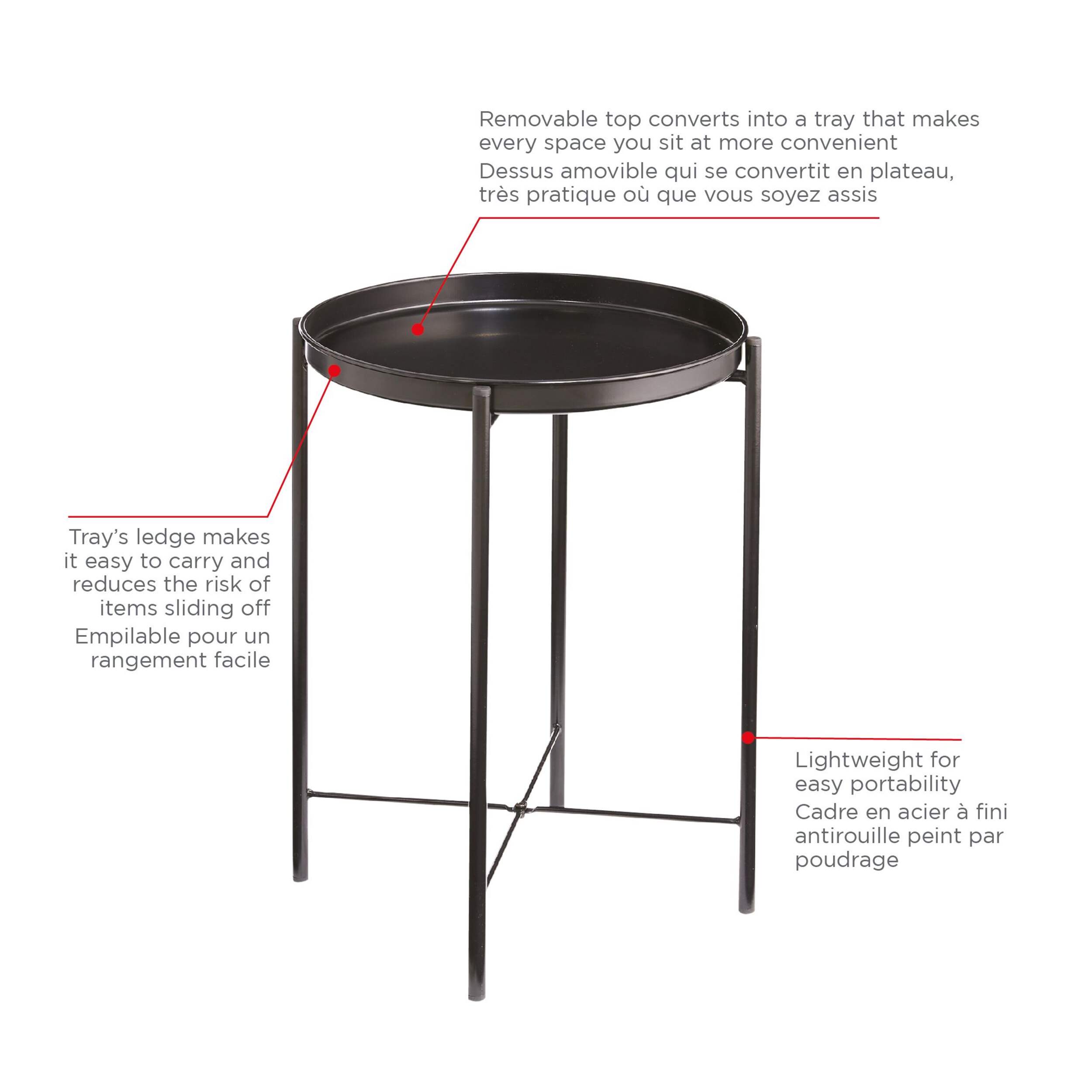 Featuring a sleek, contemporary design and powder-coated metal frame and tabletop, the CANVAS Slate Tray Side Table is a versatile and durable addition to your home furnishings. This stylish living room side table has a removable, lightweight top tray that conveniently detaches from the frame for serving snacks and drinks with ease. The ledge around the tray makes it easier to carry and helps to reduce the risk of items falling off in transit.
