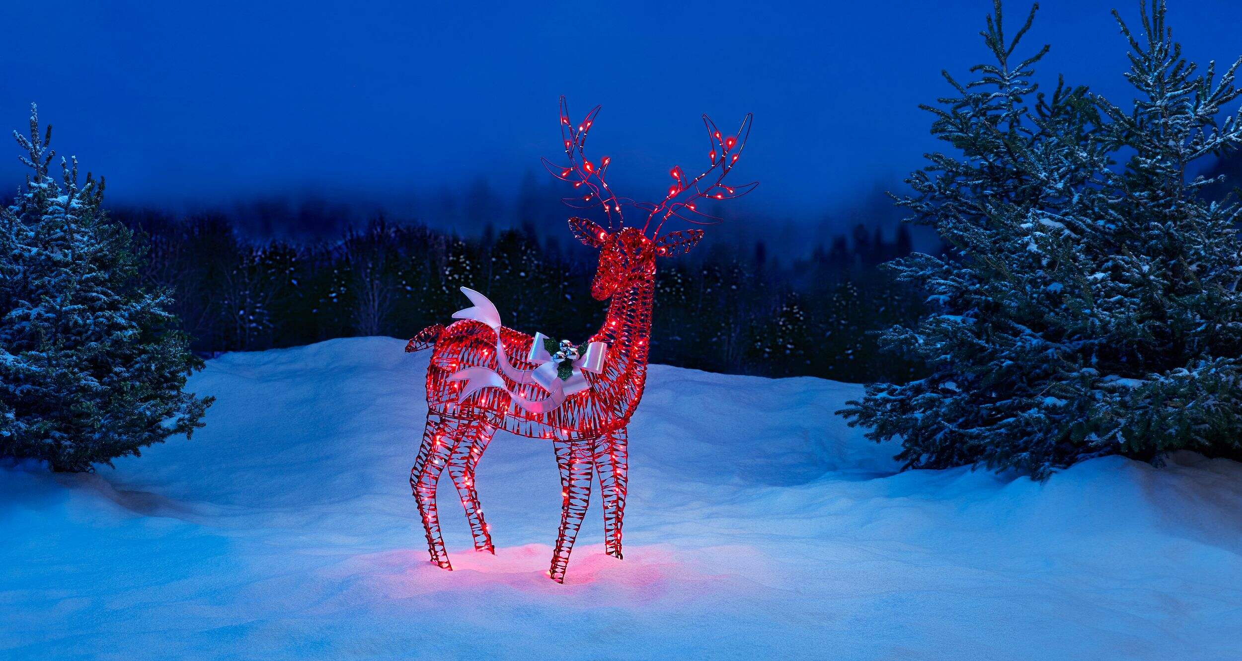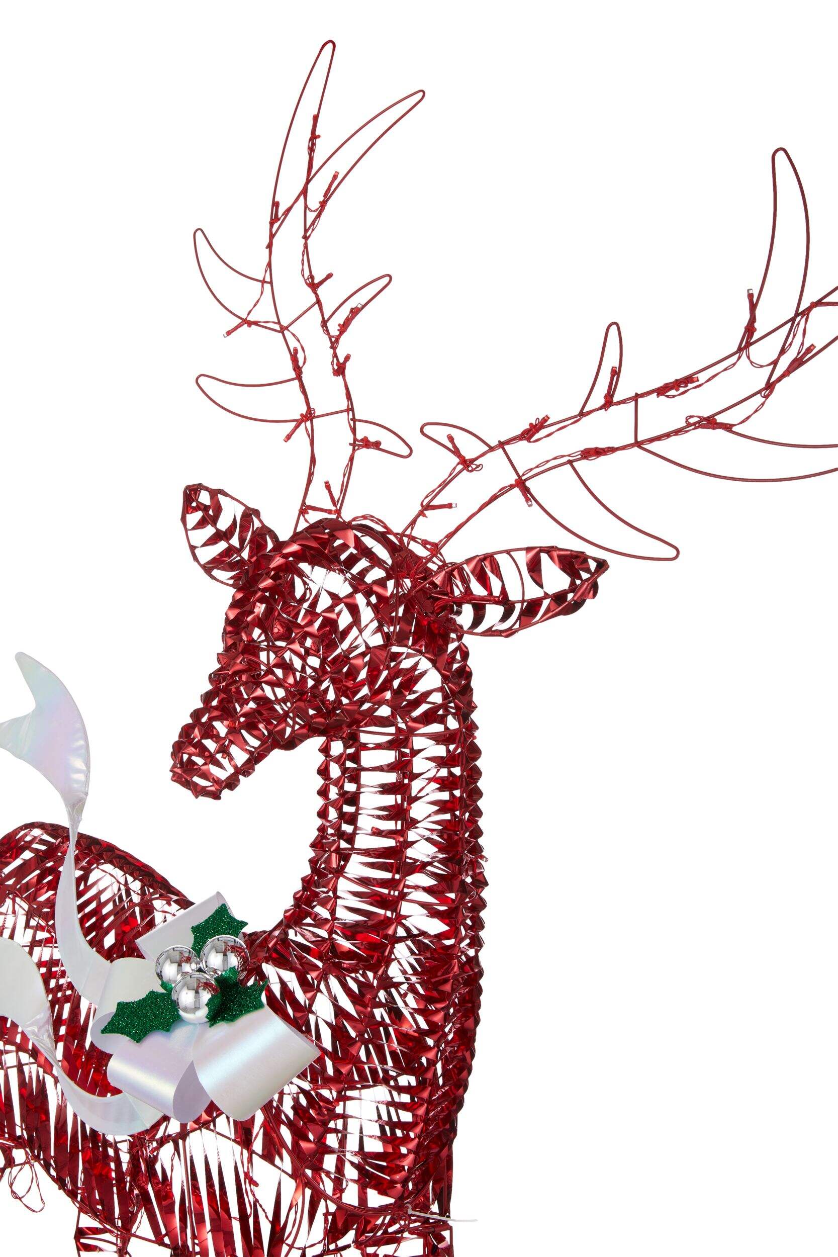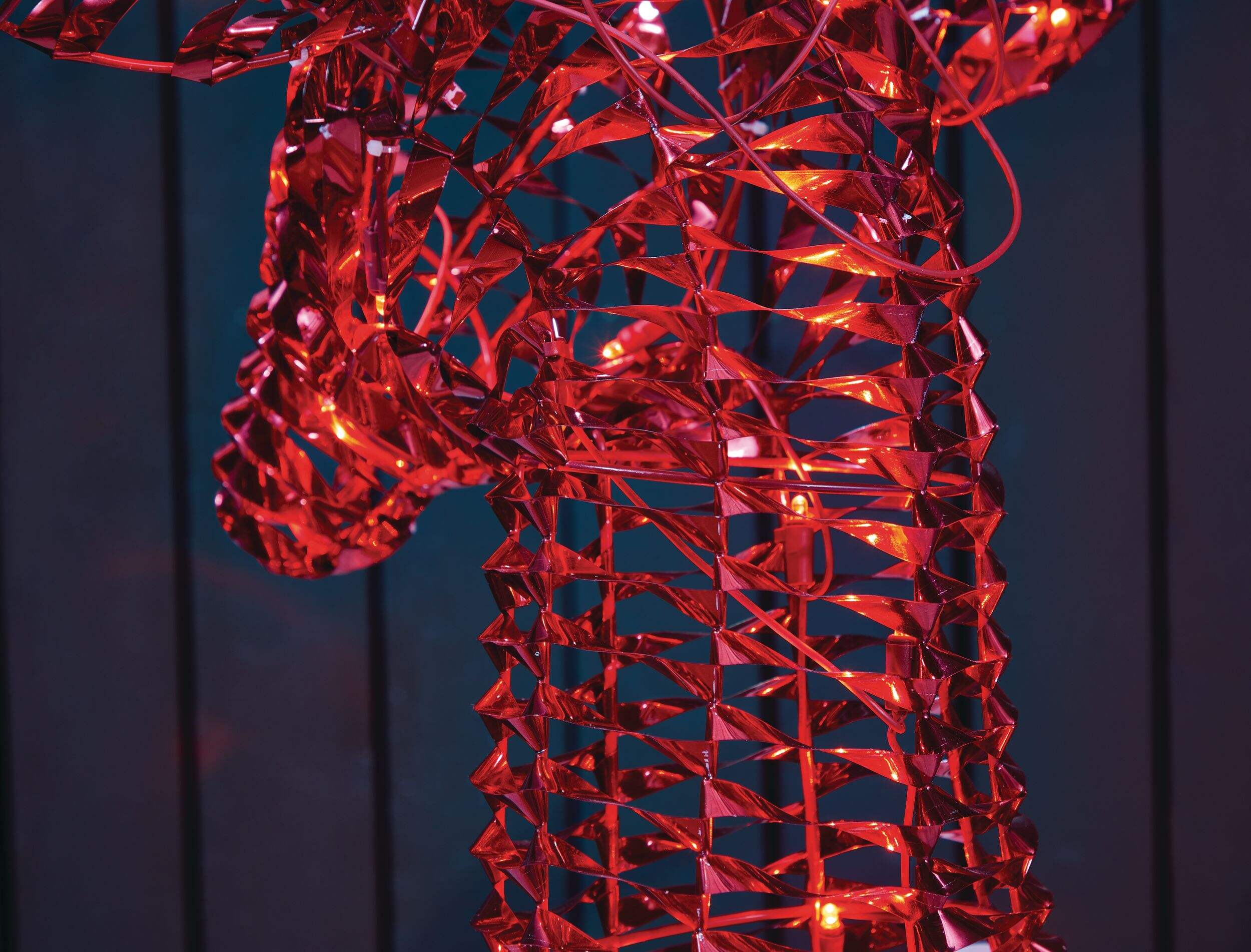 Choose the CANVAS Sparkle Reindeer Yard Decoration to illuminate the holidays and get your neighbours talking. This lightweight reindeer is simple to set up, with tethers to keep your decoration standing tall. Durable iridescent ribbons shimmer as the reindeer's antlers, tail, and body are illuminated with a set of cool white LED lights. This reindeer decoration can be positioned on lawns, gardens, or walkways to enhance seasonal cheer with its magical glow.