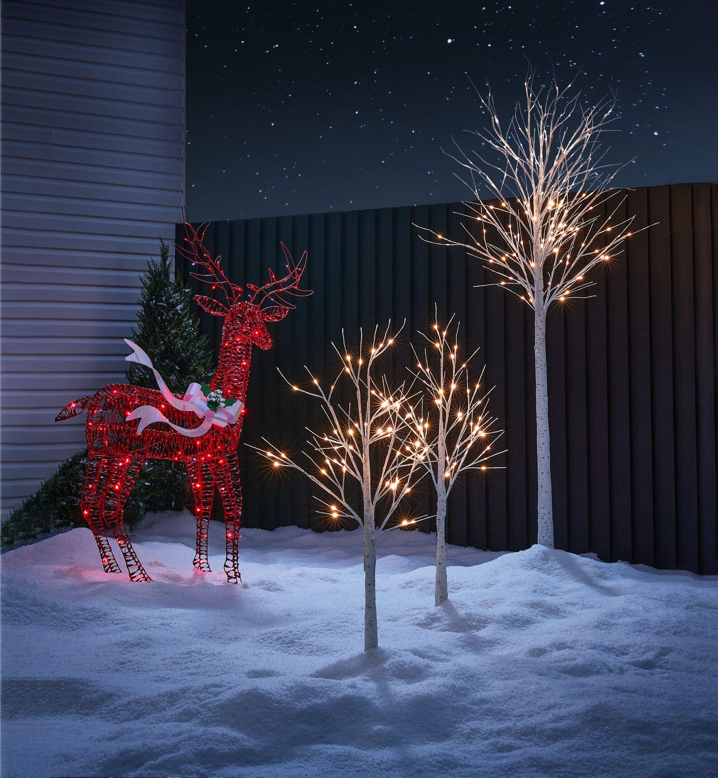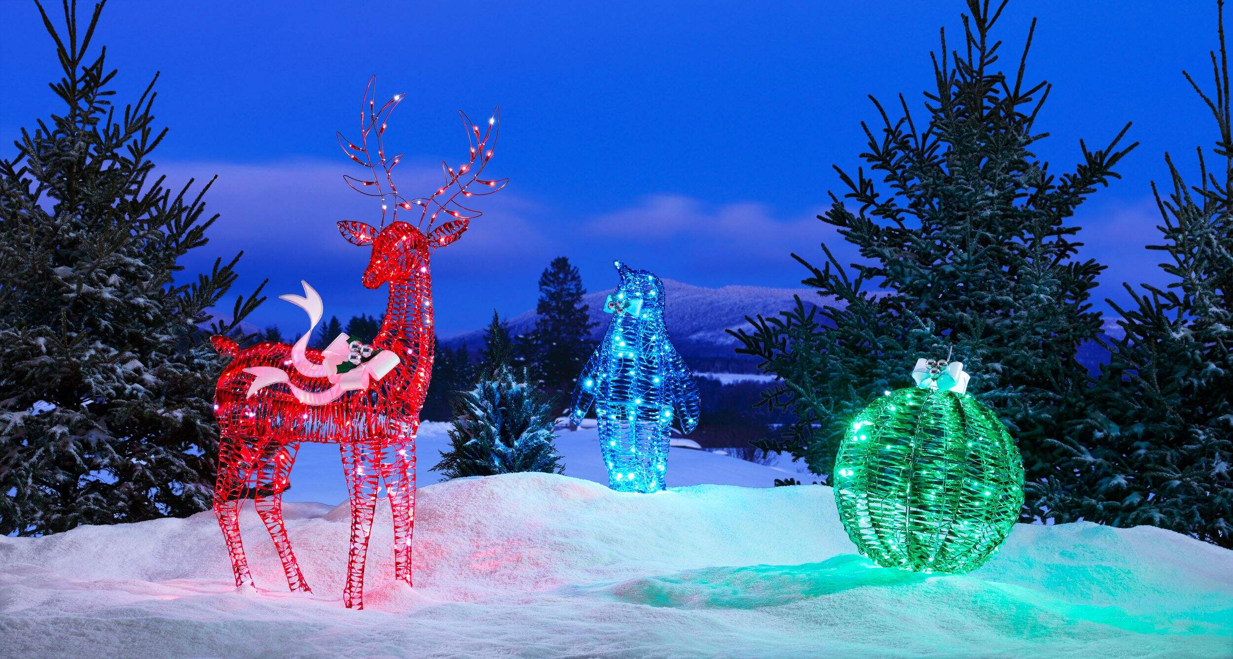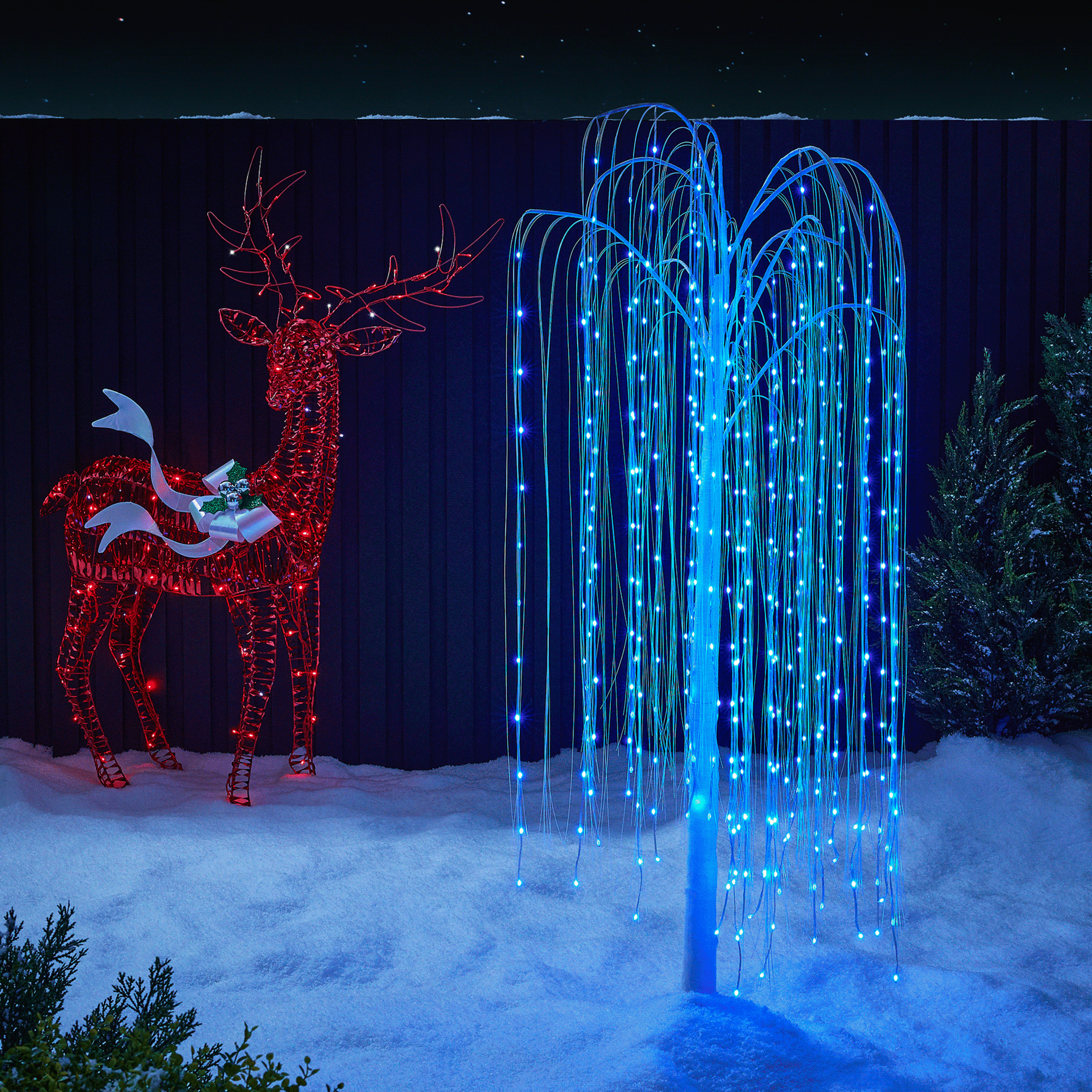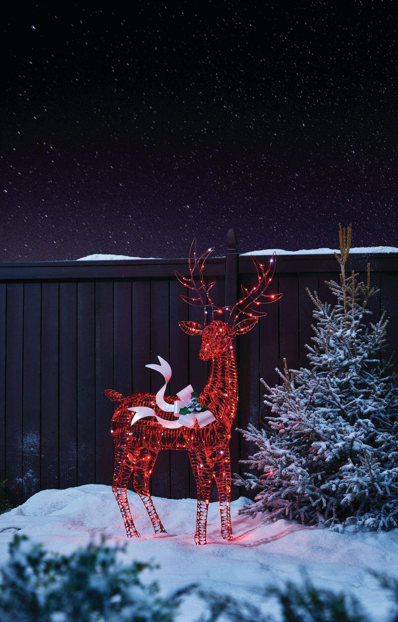 Choose the CANVAS Sparkle Reindeer Yard Decoration to illuminate the holidays and get your neighbours talking. This lightweight reindeer is simple to set up, with tethers to keep your decoration standing tall. Durable iridescent ribbons shimmer as the reindeer's antlers, tail, and body are illuminated with a set of cool white LED lights. This reindeer decoration can be positioned on lawns, gardens, or walkways to enhance seasonal cheer with its magical glow.