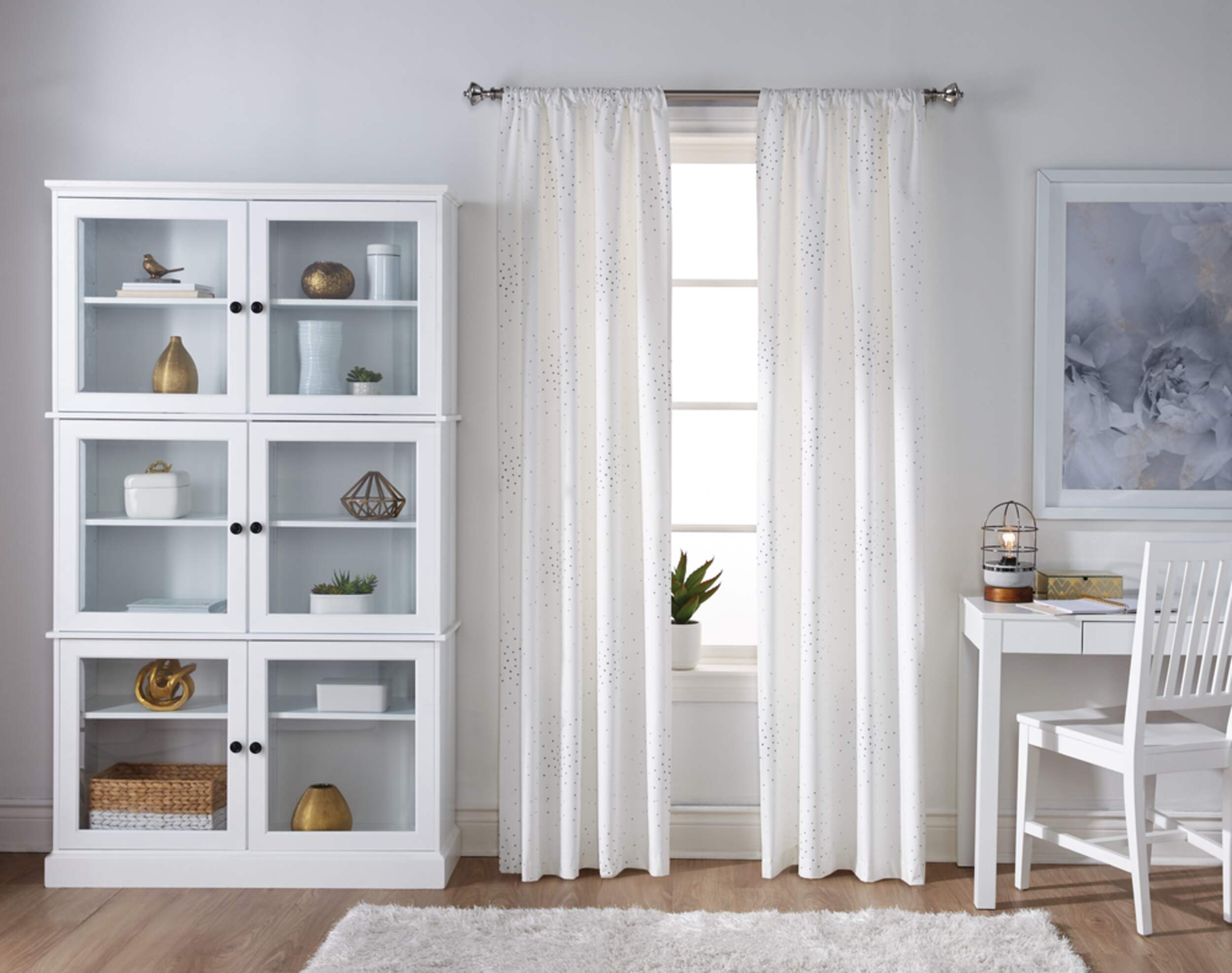 Elevate the style of any room in your house with the For Living Star Print Drapery. Made of high quality 100% polyester and featuring a charming star design, these sun-filtering drapes measure a generous 84" (213.4 cm) in length and 40" (102 cm) in width to comfortably accommodate almost any of your home’s windows. These printed drapery curtains have a built-in rod pocket and acrylic foam backing, and come in a convenient packet of two.