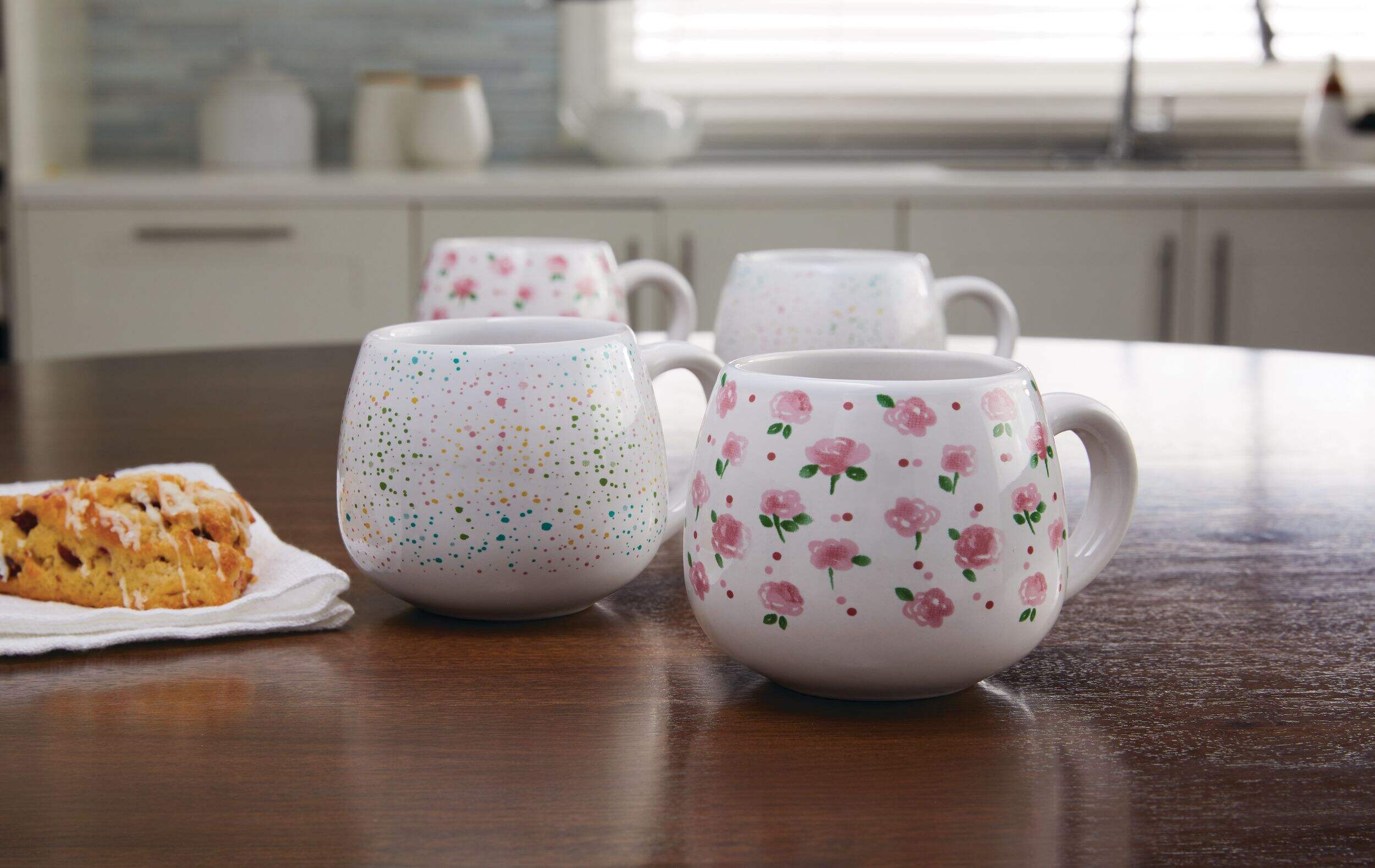 Sip on some coffee or tea or serve your guests in style with this CANVAS Stellarton Mug Set. The 4 piece mug set features a balloon-shaped design and a handle for easy carrying. Available in two pretty patterns, these stoneware mugs will add elegance to your kitchen or dining table. Being dishwasher safe, these mugs are an ideal choice for everyday use and also make for a great gifting option for loved ones.