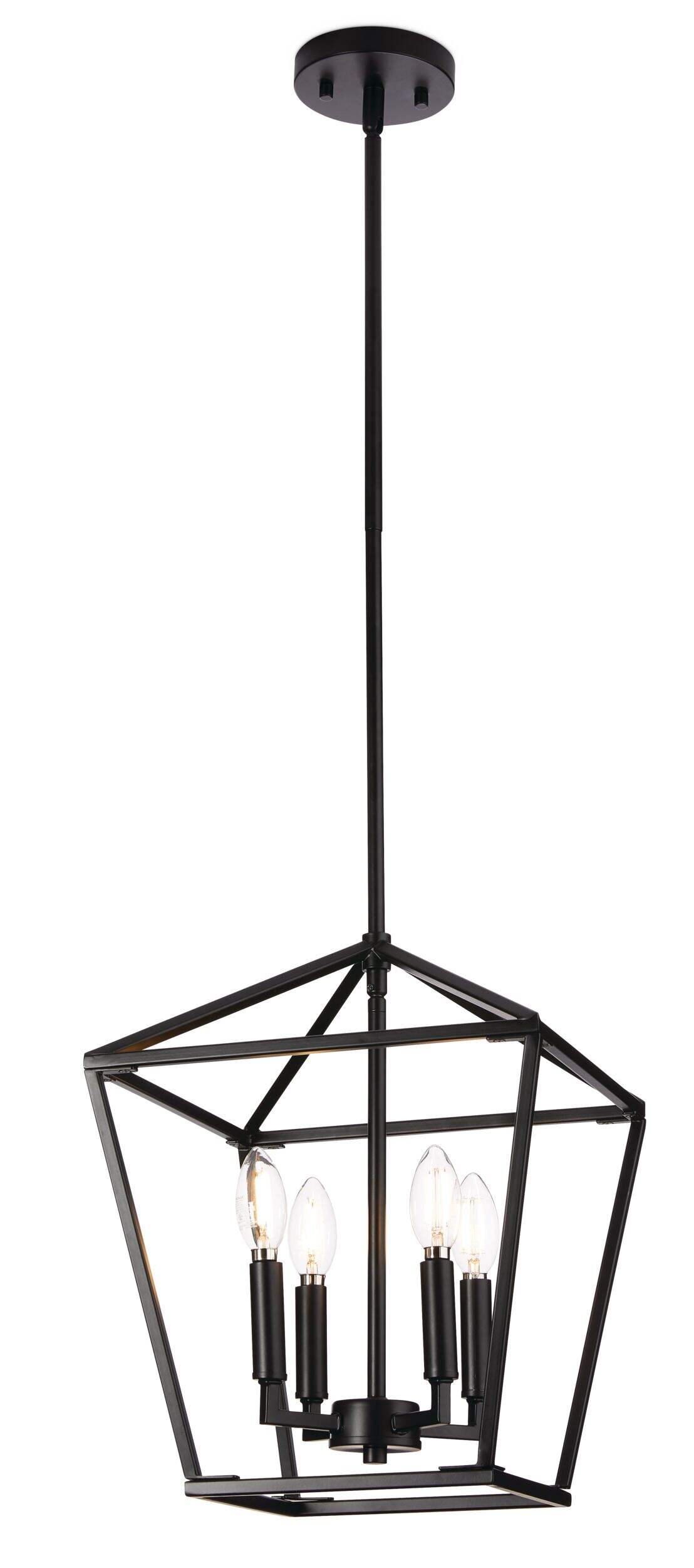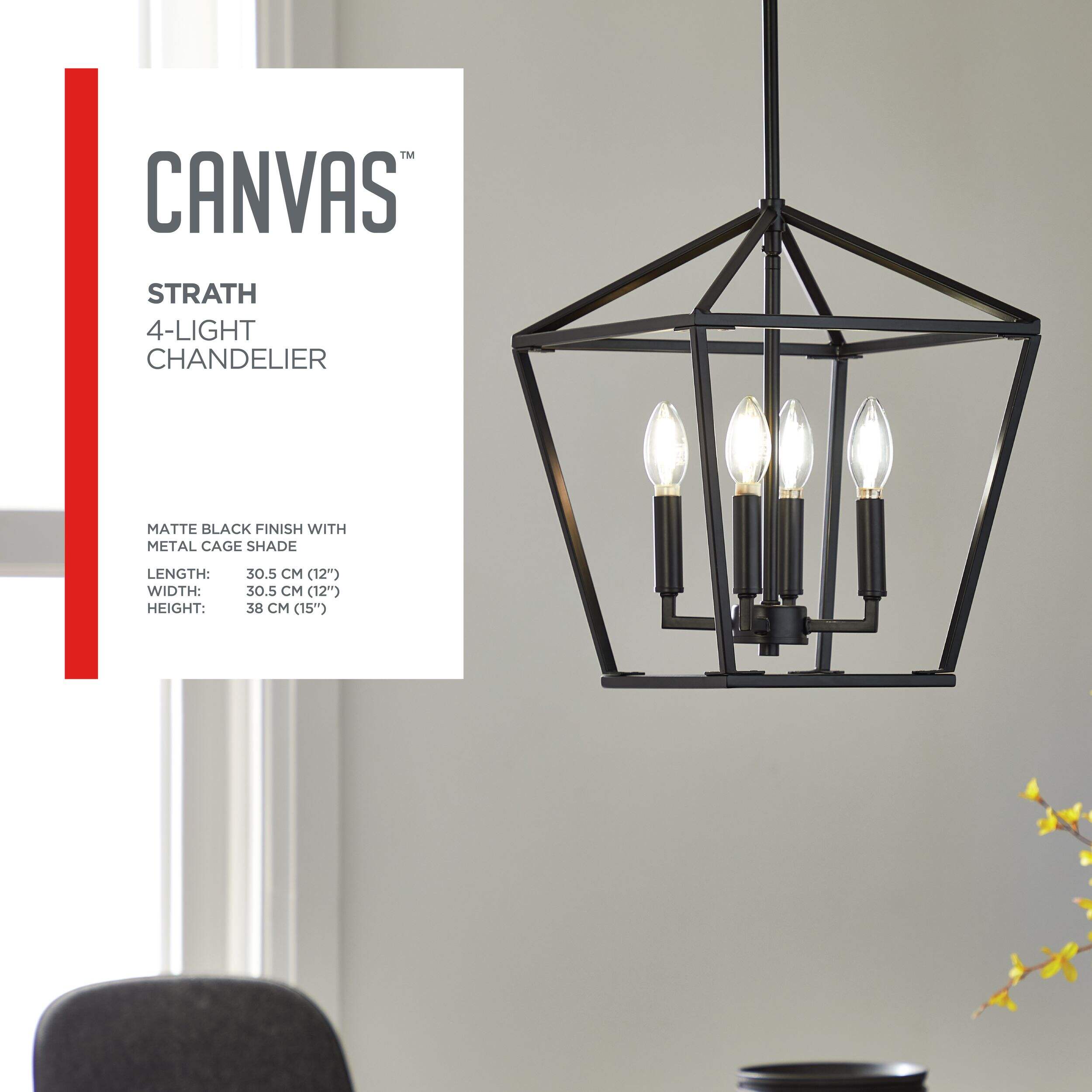 Illuminate your space with the CANVAS Strath 4-Light Metal Cage Shade Chandelier. Featuring a sleek matte black finish and an adjustable height, this chandelier adds a touch of modern elegance to any room. The metal cage shades provide a stylish industrial look while ensuring ample light distribution. Made for dining rooms, living areas, or entryways, this versatile fixture enhances your décor with its contemporary design and functional lighting.