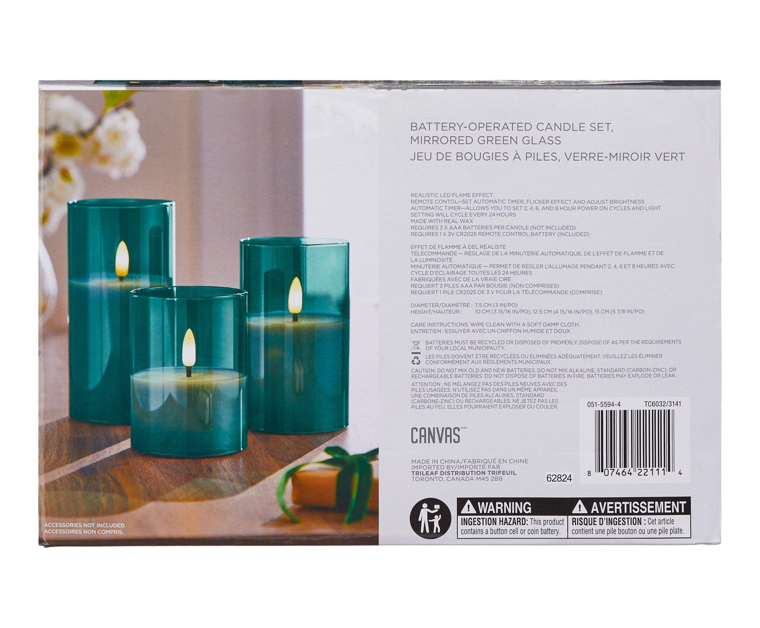 The CANVAS Tabletop Christmas Decoration Battery-Operated Flameless LED Candle is a 3-pack of realistic wax candles with LED flames. This flameless candle set adds realistic ambiance without fire hazards, and makes your holiday décor look brighter and warmer.