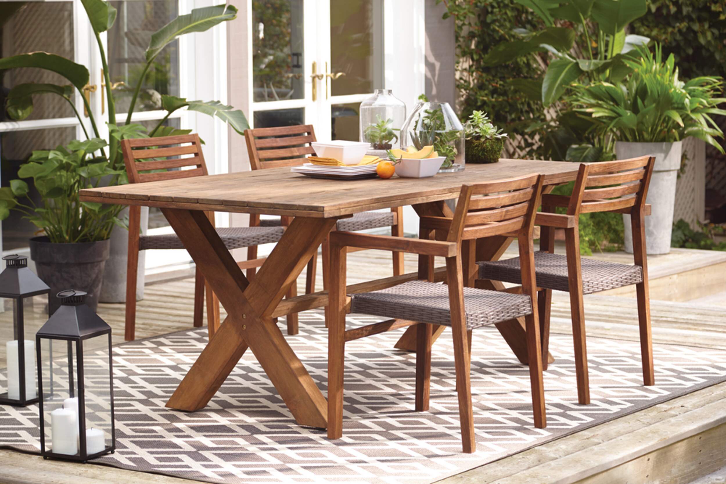 Nothing says elegance and classic style like this CANVAS Teak Patio Dining Chair. Made from FSC-certified reclaimed teak with a durable, woven wicker seat, this chair will only get better with age as it naturally fades to a silver-grey patina over time. Maintain colour with teak oil. This chair pairs perfectly with the CANVAS Round Teak Patio Table. Stackable for easy storage.