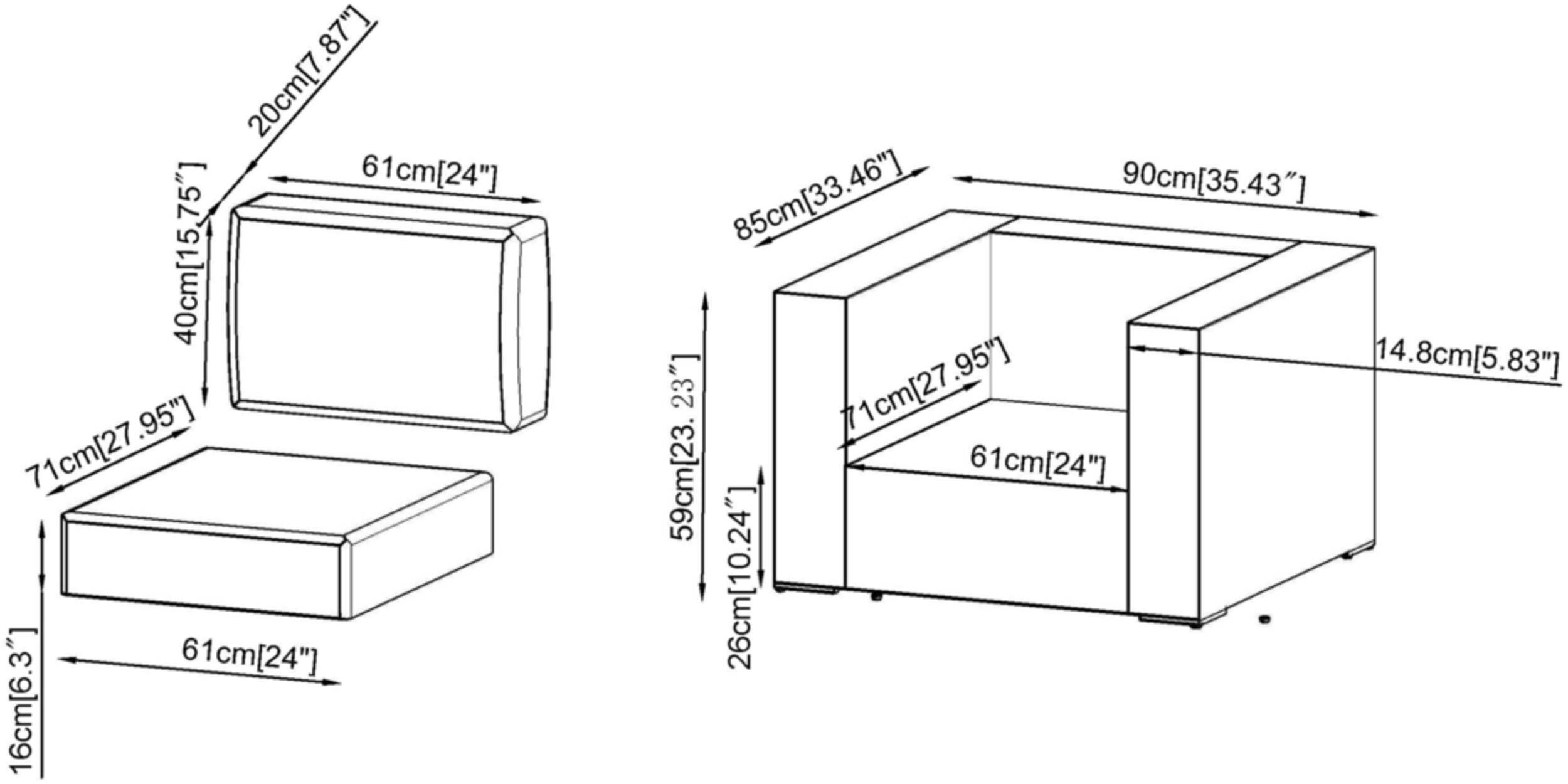 Assembled Dimensions: 33.47" L x 35.43" W x 21.85" H (85 x 90 x 55.5 cm)