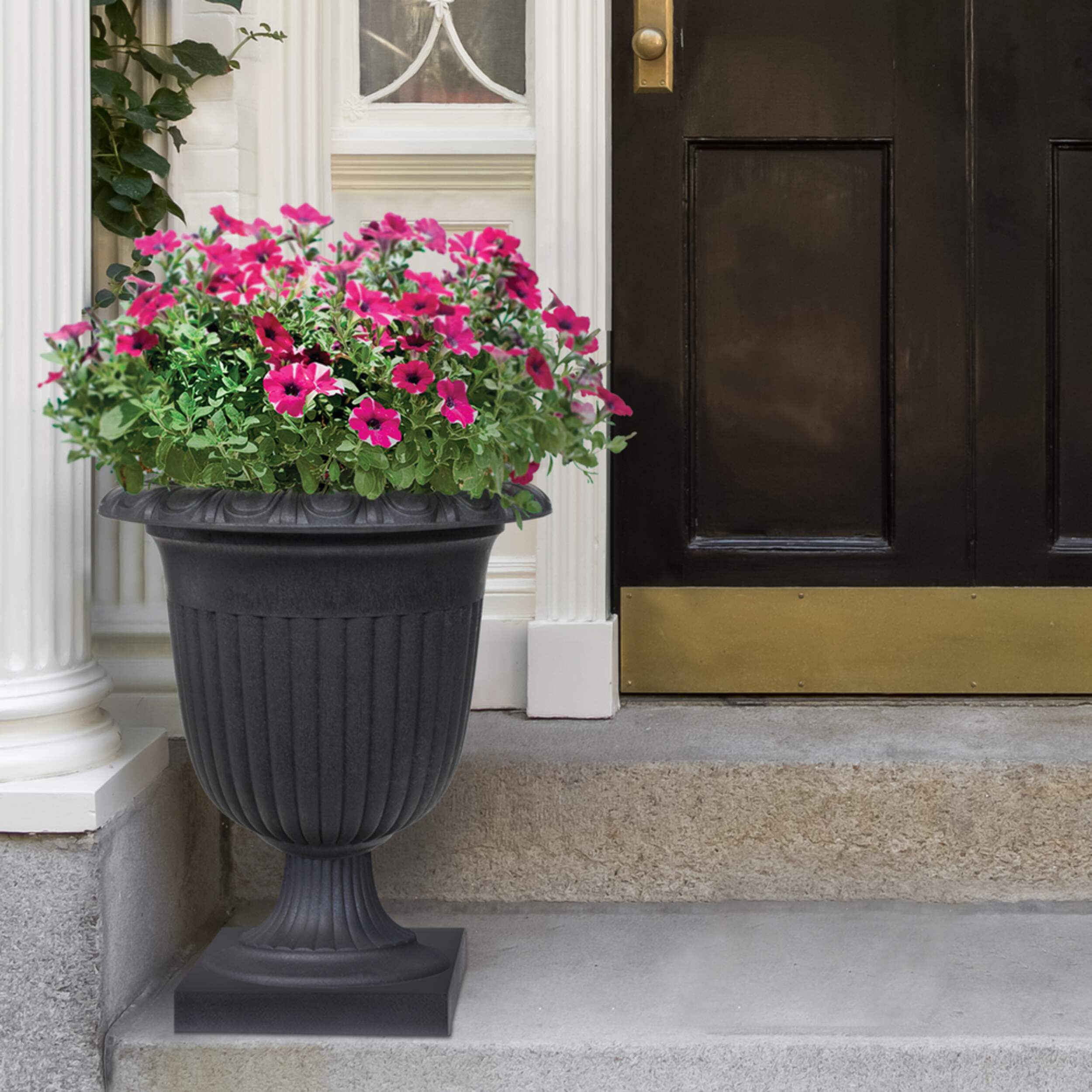 Designed for indoor or outdoor use down to -40 degrees Celsius, the CANVAS Tuxedo Urn is a smart and stylish way to display your favourite plants and flowers. This decorative planter features a self-watering system with a drainage hole that protects against overwatering. The midnight black finish offers a sleek, sophisticated aesthetic sure to complement your home or yard decor. This round planter is made in Canada from 98% recycled materials.