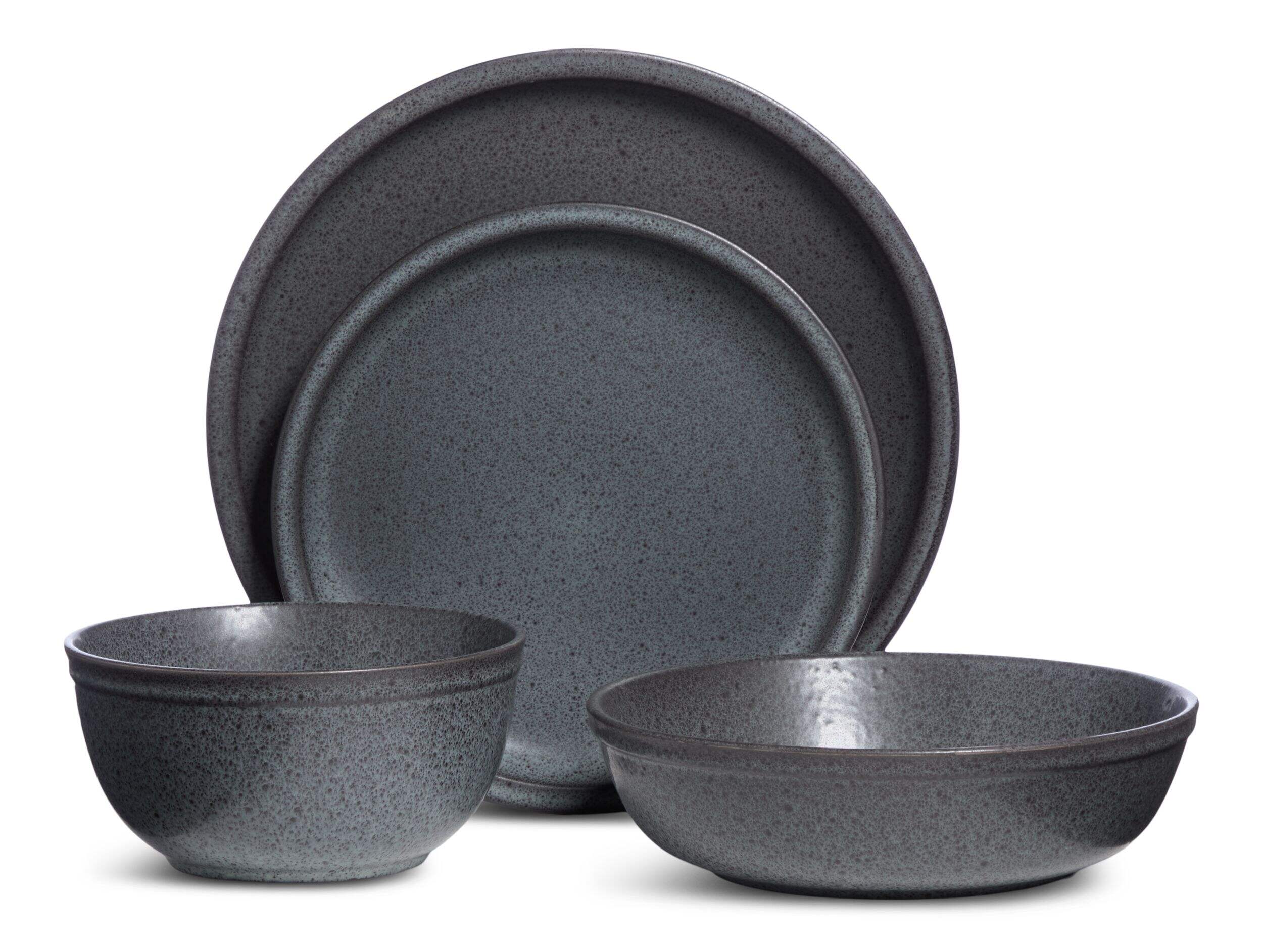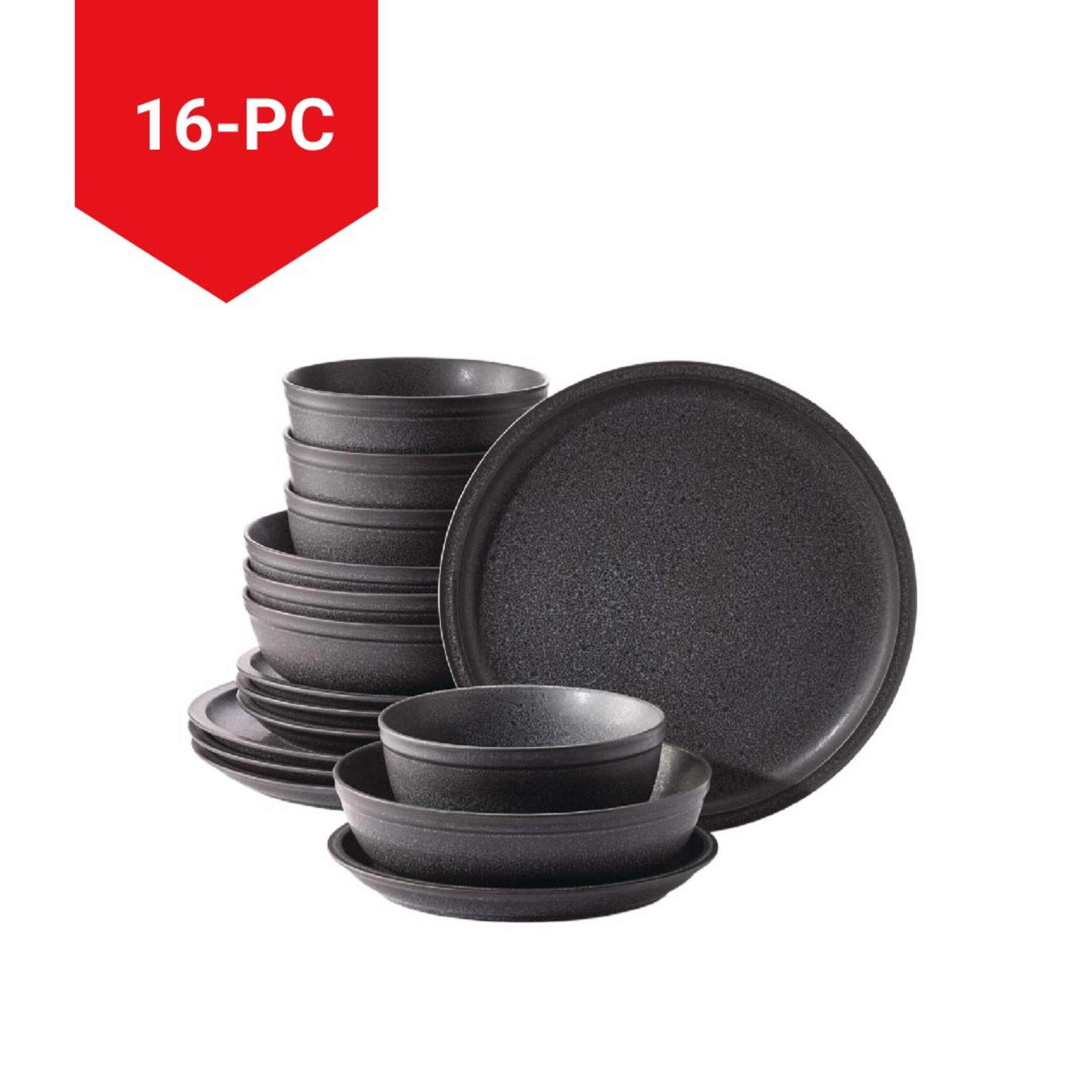 Includes (4) 10-1/4-in (26 cm) dinner plates, (4) 8-in (20.5 cm) side plates, (4) 5-13/16-in (14.8 cm) all-purpose bowls, and (4) 7-3/4-in (19.7 cm) low bowls, for a total of 16 pieces in set
